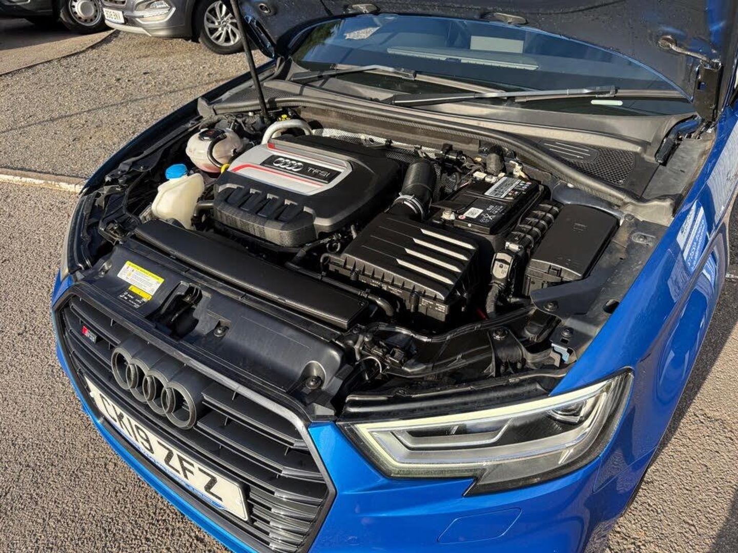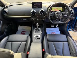 18in Alloy Wheels - 5-Arm Trapezoid Design Audi Sport in Gloss Anthracite Black - Diamond Cut Finish, 2 x USB Charging Ports and 1 x AUX-IN, 6-Airbag System with Knee Airbag for Driver, Aluminium Interior Elements, Anti Theft Locking Wheel Bolts, Anti-Theft Alarm, Audi Beam, Audi Connect, Audi Connect Infotainment Services - 3 Month Trial, Audi Drive Select, Audi Smartphone Interface, Auto-Dimming Rear-View Mirror with Light and Rain Sensor, Bang and Olufsen Sound System, Black Styling Package, Bluetooth Interface, Brake Calipers Painted in Black with S3 Logo at the Front, CD Drive, Cloth Headlining, Colour Drivers Information System - DIS, Cruise Control, DAB Digital Radio, Door Mirrors - Black Housing, Door Mirrors - Electrically Adjustable and Heated with Integrated LED Side Indicators, Dual-Zone Electronic Climate Control, ESC - Electronic Stabilisation Control inc ABS - ASR and EDL, Electric Windows - Front and Rear, Electromechanical Parking Brake, Exhaust Tailpipe - Dual-Branch Oval Twin with Chrome Finish, First Aid Kit and Warning Triangle, Front Centre Armrest, Front and Rear Floor Mats, Headlights Washers, Heated Front Seats, Heated Windscreen Washer Jets, Hill Hold Assist, ISOFIX Child Seat Mounting and Top Tether, Illuminated Door Sill Trims with S Logo, Inlays - Matt Brushed Aluminium, Instrument Dials with S3 Logo, LED Headlights with LED Rear Lights and Dynamic Rear Indicators, LED Interior Light Package, Lashing Points in Luggage Compartment, MMI Navigation - SD Card Based, MMI Radio Plus with 7in Electrically Retractable Colour MMI Screen, Manual Seat Adjustment, Non-Smoking Package, Pedals in Stainless Steel, Privacy Glass, Progressive Steering, Rear Parking Sensors, Remote Central Locking with 2 Fold Away Keys, S Design Body Styling, S Sport Suspension, Seat Belt Monitoring, Split Folding Rear Seat Bench - 60-40 or Fully, Steering Wheel - 3-Spoke Leather-Multifunction-Flat Bottomed-Shift Paddles, Storage Compartments in the Door Side Trims-Centre Console-Under Drivers Seat, Storage Package, Tool Kit, Tyre Pressure Warning Light, Tyre Repair Kit, Ara Blue, Fine Nappa Leather - S Embossed Sports Seats - Black with Rock Grey Stitching, Technology Pack