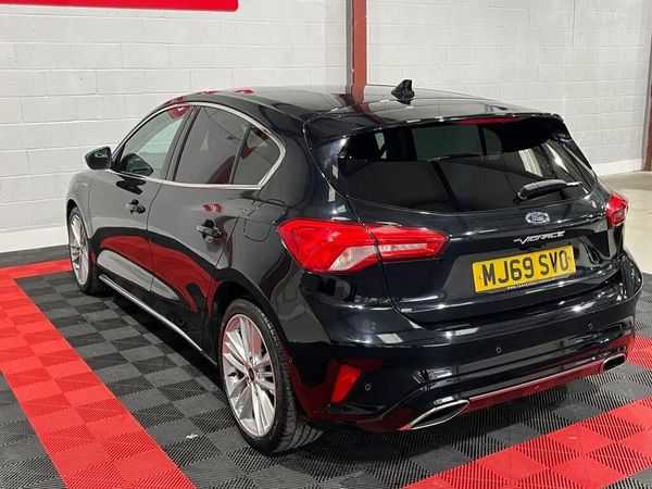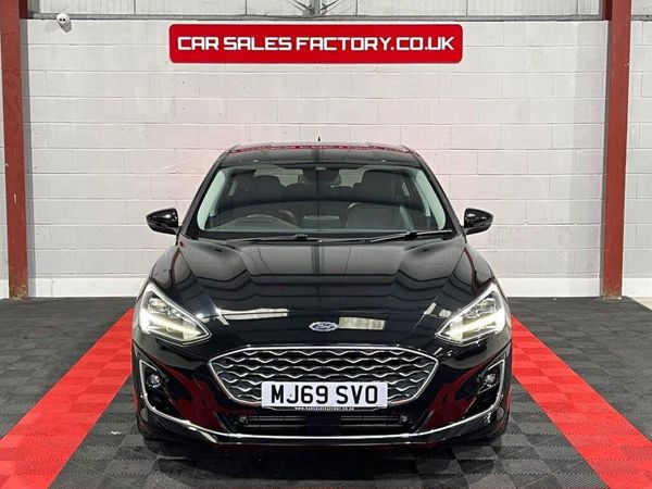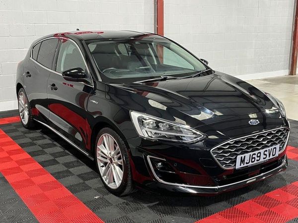 This 2019 Ford Focus Vignale offers excellent peace of mind with its MOT valid until November 2026 and a clear vehicle history check. This 1.0L petrol model, registered in 2019, is a Euro 6 compliant vehicle, indicating lower emissions. It benefits from service history, with the last service completed on 2025-10-09 at 42991 miles. Key features include the Ford Key Free System for keyless entry and start, front and rear parking sensors with parking assistance, and heated front seats for driver and passenger comfort. alloy wheels, rear privacy glass, rev camera, head up display, mfsw, heated leather interior, cruise control and many more standard specification's. The Ford SYNC3 DAB Navigation System with Android Auto and Apple CarPlay connectivity, along with Bluetooth, ensures you stay connected and entertained. This Focus Vignale also boasts low CO2 emissions, making it an environmentally conscious choice. Its performance is highlighted by a 0-60mph acceleration time of 10.0 seconds, demonstrating a responsive driving experience that sets it apart from many other vehicles in its class. We offer seamless part-exchange services, flexible financing solutions, and a comprehensive suite of options to cater to a diverse clientele. All our vehicles are HPI clear, and come with a 12-month breakdown cover and 6 month warranty. Experience live video viewing, convenient part exchange, varied financing, and the ease of click and collect or home delivery. We are Open Monday to Friday 9-6, Saturday 9-6 and Sunday 10:00 - 5:00. Call us on 0161 764 3904.