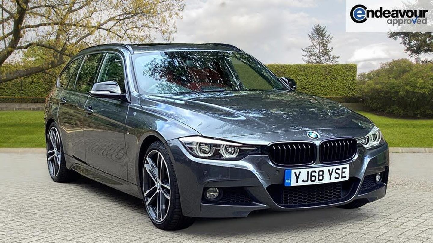 Automatic start/stop system, Automatic tailgate operation, Average speed gauge, BMW iDrive controller on centre console, BMW Online services, BMW remote services, BMW Teleservices, Brake force display, Brake pad wear indicator in front and rear, Check Control warning system for monitoring of lights and door/luggage compartment open warning, Controller and Control Display+6.5'' monitor, Digital clock, Door/boot open warning light, Front/rear park distance control, Instrument cluster with speedometer with mph readout, tachometer, fuel gauge and oil temperature gauge, Lights on warning, M Sport instrument cluster, Odometer, Oil sensor for level and grade, On board computer, On board diagnostics, Operation warning of all exterior lights, Optimum shift indicator, Outside temperature display, Pesonal profile, Real time traffic information, Service interval indicator, Trip computer, Battery cut-out switch, Drive Performance Control, Electronic differential lock, Multi-link rear suspension, Sport automatic transmission with steering-wheel mounted gearshift paddles and launch control, BMW professional radio/CD/MP3, CD player, DAB Digital radio, Harman/Kardon loud speaker system, 2 speed adjustable intermittent wipers with wash/wipe function, Active air flap radiator grille, Auto dimming rear view mirror, Automatic headlight beam throw control, Body colour bumpers, Body colour door handles, Body colour roof mouldings, Clear indicator lenses, Dark chrome exhaust tailpipe, Dark headlamp surround, Darkened rear light clusters, Direction indicator, side repeaters, integrated in exterior mirrors, Door sill finisher with M designation, Dynamic brake lights, Electric front and rear windows with one touch/convenient open/close function, Front and rear bumper system with replaceable deformation elements, Green tinted heat insulating glass, Heated rear window with automatic switch off, Heated windscreen washer jets, High beam assistant, High gloss black air inlets, High gloss black finish B pillar, High gloss black rear bumper insert, High gloss shadow line, High level third brake light, Independent opening for tailgate window, LED fog lights, LED rear lights, LED welcome home lights, M aerodynamic body styling, Matt black exterior trim, Rain sensor + automatic driving lights control, Rear wash/wipe, Shark fin roof aerial, Sun protection glass, Visible VIN plate, 12V sockets in front centre console and passenger footwell, 3 rear seat head restraints, 4 foldable grab handles - rear with clothes hook, 4 lashing points on luggage floor, 40:20:40 split folding rear bench seat, Anthracite headlining, Automatic interior light soft on/soft off system, Dual zone automatic air conditioning, Folding front centre armrest + storage, Front and rear door armrests, Front and rear velour floor mats, Front door storage bins with bottle holder, Front sports seats with electric side bolster adjustment, Glovebox light, Glovebox opener with chrome spider, Height adjustable front headrests, Indirect front interior illumination - soft-light function, Leather gear knob, Leather gear selector lever handle, Leather handbrake lever, Luggage compartment lighting, Reach + rake adjustable steering column, Rear centre armrest with 2 cupholders, Rear child seat isofix attachment with passenger airbag deactivation, Retractable luggage cover, Separation net, Storage compartment in rear centre console, front and rear door trims and under luggage compartment, Sunvisors with illuminated vanity mirrors and ticket pocket, Through load system, Toolkit located in luggage compartment, Two front cup holders with a sliding lid, Extended lighting package - 3 Series, Extended storage pack - 3 Series Touring/Saloon, High gloss shadow line pack - 3 Series, Interior lights pack - 3 Series Touring, Luggage compartment storage pack - 3 Series Touring, 3 point seatbelts on all seats (2 front, 3 rear), front pyrotechnic belt tensioners and belt force limiters, rear coded belt buckles, ABS, Automatic