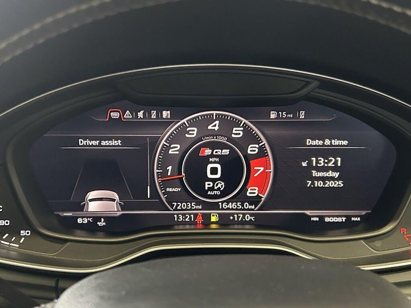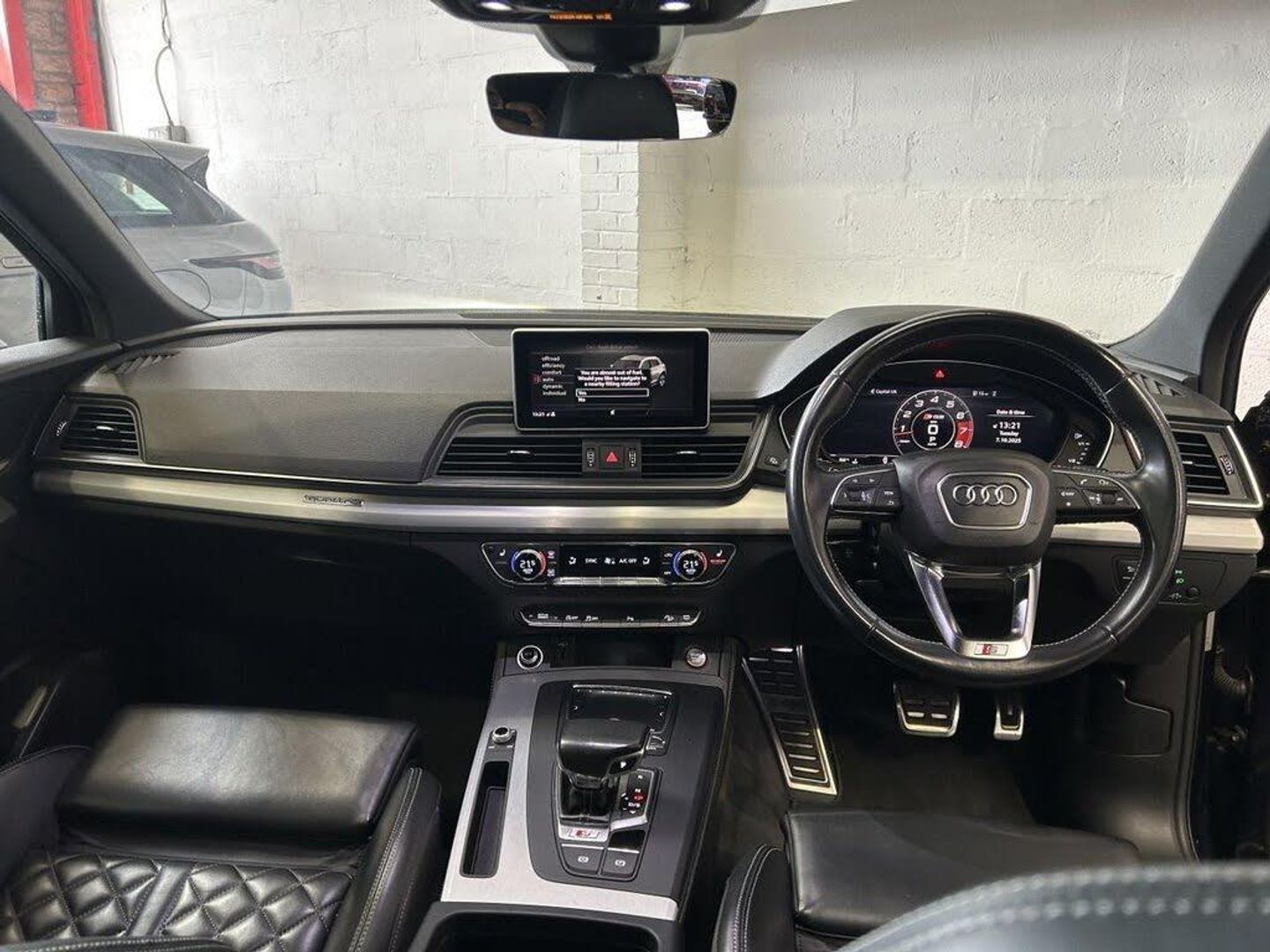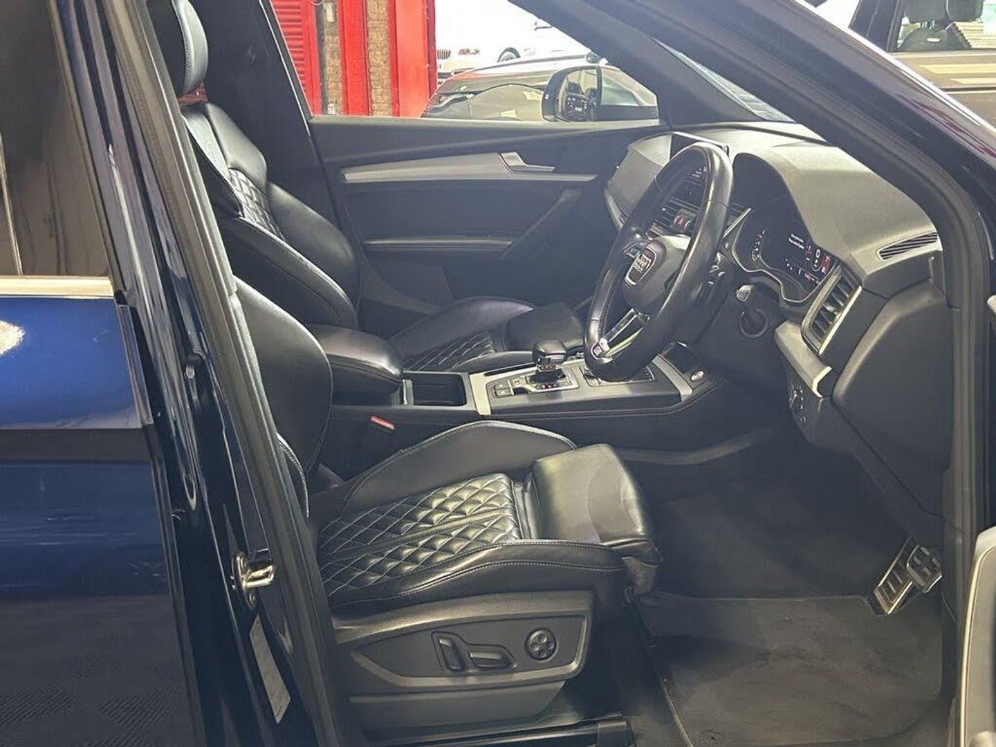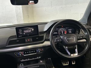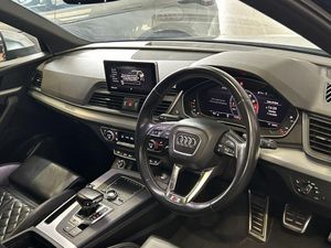 Audi Virtual Cockpit, Pre-Sense Basic, Moonlight Blue, Panoramic Glass Sunroof, 2 x SDXC Card Readers, 2 x USB Charging Ports and 1 x AUX-IN, 20in Alloy Wheels - 5-Twin-Spoke Star Design Contrasting Grey - Diamond Cut, 4-Way Electric Lumbar Support, 6-Airbag System, Aluminium Roof Rails, Aluminium-Effect Door Mirror Housings, Anti Theft Locking Wheel Bolts, Anti-Theft Alarm, Audi Beam, Audi Connect Infotainment Services - 3 Month Trial, Audi Connect Safety and Service - e-call, Audi Drive Select, Audi Parking System Plus, Audi Pre-Sense City, Audi Smartphone Interface, Audi Sound System, Auto-Dimming Rear-View Mirror, Automatic Headlight Adjustment, Bluetooth Interface, Brake Calipers Painted in Black with SQ5 Logo at the Front, CD Drive, Cloth Headlining in Black, Colour Drivers Information System with 7in Display, Contrast Stitching on Seats - Steering Wheel and Gear Lever Gaiter, Cruise Control with Speed Limiter, DAB Digital Radio, Deluxe 3-Zone Climate Control, Door Mirrors - Electrically Adjustable and Heated with Integrated LED Side Indicators, Dynamic Suspension, ESC - Electronic Stabilisation Control inc ABS - ASR and EDL, Electric Boot Lid Release, Electric Windows - Front and Rear, Electrically Adjustable Front Seats, Electromechanical Parking Brake, Electromechanical Power Steering, Email - Calendar and Text Messages can be Displayed on your Vehicles MMI, Extended Interior Upholstery Pack, First Aid Kit and Warning Triangle, Front Centre Armrest, Front Sports Seats with S Embossed Logo, Front and Rear Floor Mats, Gear-lever with Diamond S Badge in Black Leather, Headlights - High-Beam Assist, Heated Front Seats, High Multi-function 3-Spoke Leather Steering Wheel with S Badging and Aluminium Effect Paddles, High-Gloss Package, Hill Descent Control, Hill Hold Assist, ISOFIX Child Seat Mounting and Top Tether, Illuminated Door Sill Trims with S Logo, Inlays - Matt Brushed Aluminium, Key with SQ5 Logo, Keyless Go, LED Headlights with LED Rear Lights and Dynamic Rear Indicators, LED Interior Lighting Pack, LED Rear Lights, Light and Rain Sensor, MMI Navigation Plus including MMI Touch, Pedals in Stainless Steel, Pop-Up Bonnet for Pedestrian Protection, Power Operated Tailgate, Privacy Glass with Acoustic Glazing For Front Windows, Quattro with Self-Locking Centre Differential, Rear Bench Seat Plus, Rear Spoiler, Remote Central Locking, Removable Luggage Compartment Floor, Removable Net Partition, S Dual-Branch Tailpipe Design in Matt Aluminium, S Instrument Dials, S Line Front and Rear Bumpers, S Line Side Skirts, S Lower Front Air Inlet, S Radiator Grille in Matt Twilight Grey with Horizontal Matt Aluminium Struts, S Rear Diffuser in Body Colour with Matt Aluminium Surrounds with Honeycomb Grille in Black, S Side Air Inlet Grille in Matt Titanium Black with Horizontal Inlays in Matt Aluminium, S Suspension - Damper Control, Seat Belt Monitoring, Side and Rear Windows in Heat-Insulating Glass, Split Folding Rear Seat Bench - 40-20-40 with Rear Seat Armrest, Stainless Steel Loading Sill Protector, Tool Kit and Car Jack, Tow Bar Preparation, Tyre Pressure Warning Light, Tyre Repair Kit, Underbody Protection in Body Colour, Voice Control System, Windscreen with Acoustic Glass, quattro On Demand