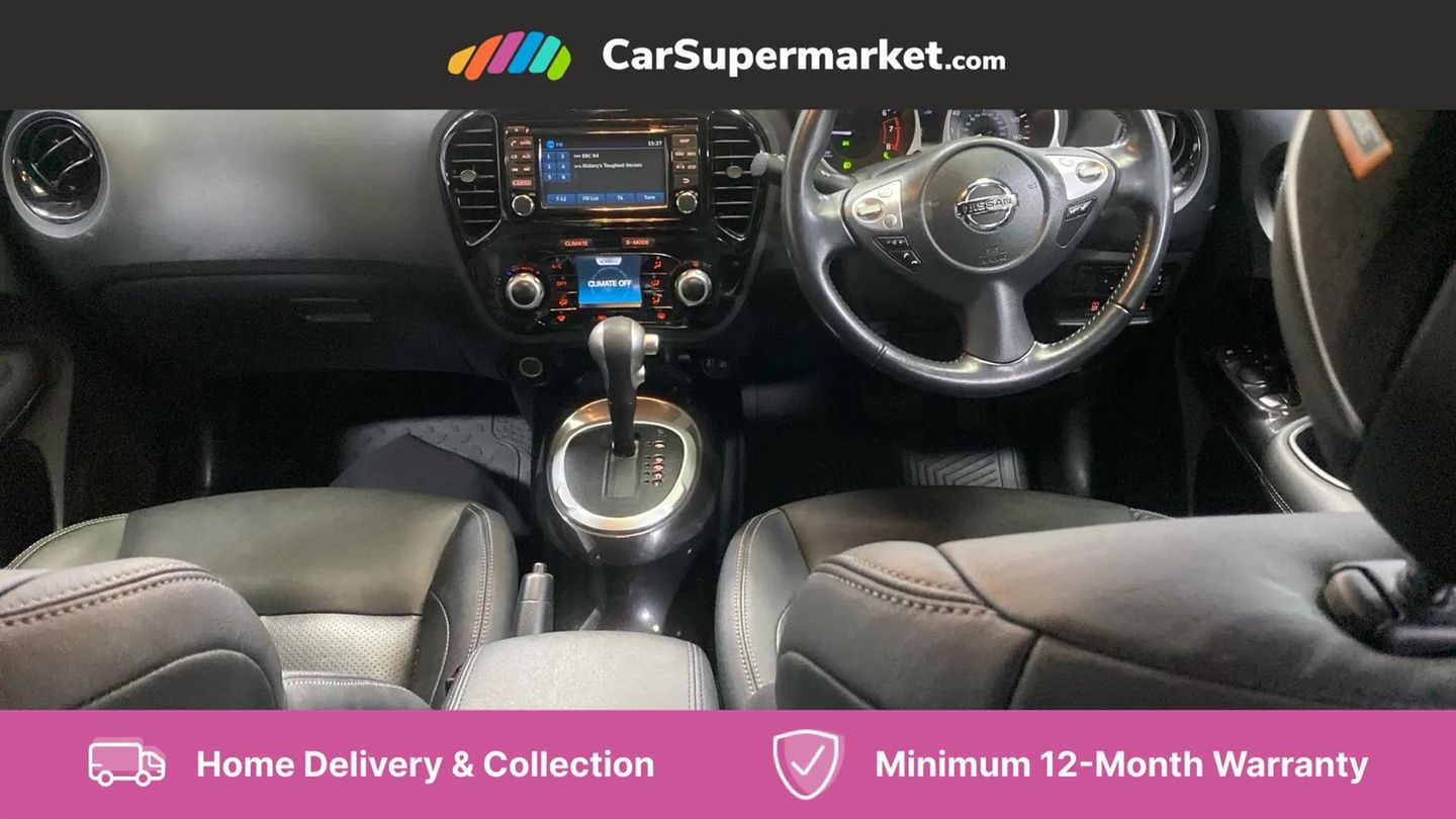 Around View Monitor,Blind spot monitoring,Bluetooth system,Colour rear view camera,Cruise control + speed limiter,Door/boot open warning light,Electric speed sensitive power steering,Exterior temperature gauge,Lane departure warning system,Low fuel level warning light,Moving object detection,Nissan connect sat nav system,Push button starter,Service interval indicator,Trip computer,6 speakers,Aux input,Bose personal sound system,DAB Digital radio,Steering wheel mounted audio controls,Stereo radio/CD player and MP3 facility,USB port,Automatic headlights,Body colour bumpers,Body colour door handles,Body colour door mirrors,Dark chrome grille,Dusk sensor,Electric door mirrors,Electric folding door mirrors,Electric front/rear windows,Heated door mirrors,Heated rear windscreen,LED daytime running lights,LED front fog lights,LED indicators in door mirrors,Privacy glass,Rain sensor windscreen wipers,Rear wiper,12V socket,3 height adjustable rear headrests,60/40 split folding rear seat,Climate control,Driver/passenger reading lights,Driver/passenger sunvisors and vanity mirrors,Front armrest,Front cupholders x 2,Front door pockets with bottle holders,Front head restraints,Front seat belt pre-tensioners with load limiters,Gear shift indicator,Glovebox,Heated front seats,Height adjustable driver's seat,Interior courtesy lights,Internal chrome door handles,Isofix child seat preparation,Leather steering wheel and gear knob,Leather upholstery,Luggage area under floor storage box,Map reading lamp,Passenger seat back pocket,Pollen filter,Rear tonneau cover integrated into tailgate,Sports seats,Steering wheel rake adjustment,ABS + EBD + EBA,Child locks on rear doors,Driver and passenger airbags,Driver and passenger side airbags,ESP + traction control,Front and rear curtain airbags,Height adjustable front seatbelts,Passenger airbag deactivate switch,Three 3 point rear seatbelts,Tyre pressure monitoring system,VDC Dynamic Vehicle Control,Warning triangle and first aid kit,Alarm,Immobiliser,Intelligent Key,Remote central locking,17" Urban alloy wheels,Tyre repair kit