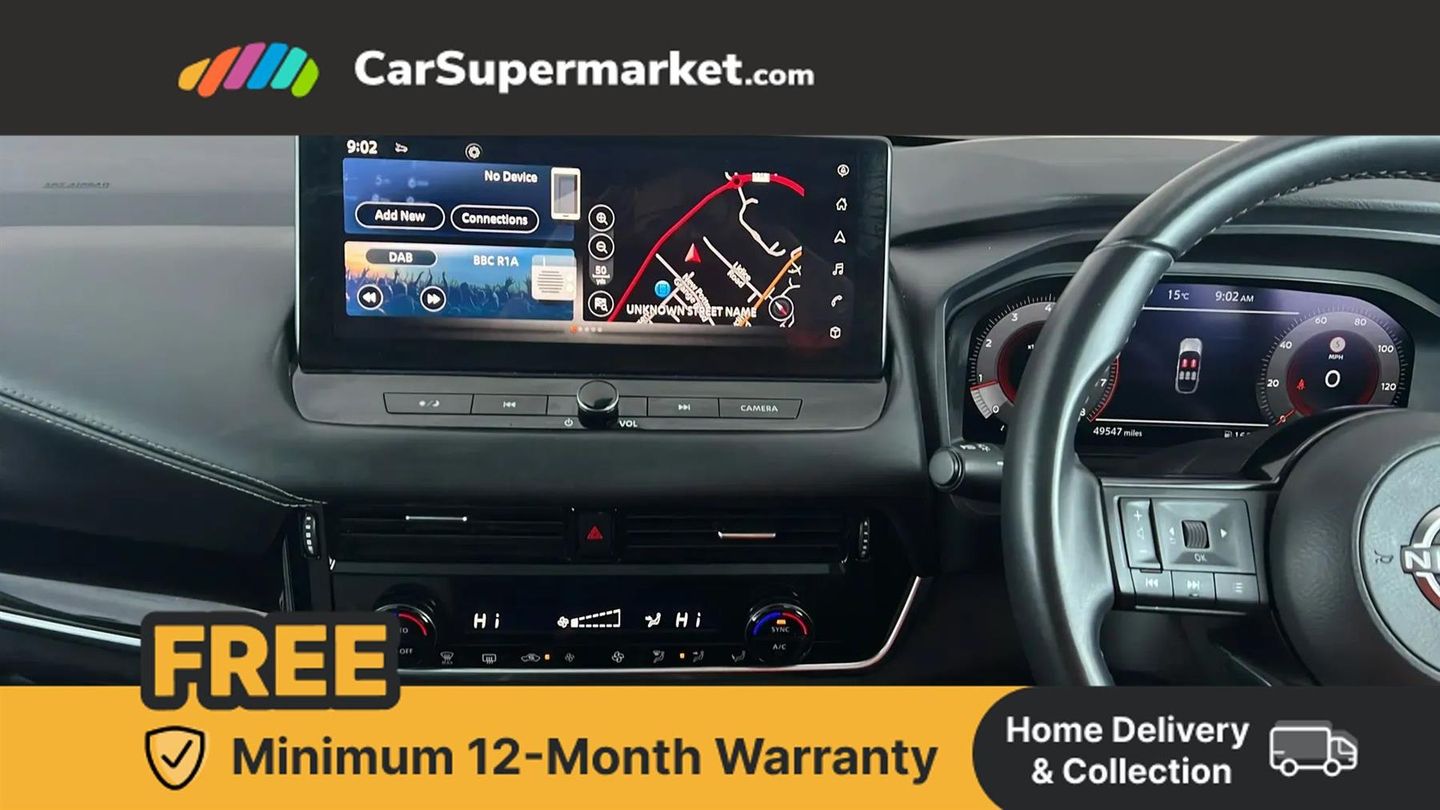 Apple CarPlay, Android Auto, Blind Spot Monitoring, Parking Sensors, Cruise Control, Lane Departure Warning, Sat Nav, Traffic Sign Recognition, Wireless Phone Charging, Bluetooth, Privacy Glass, Automatic Climate Control, 18" Alloy Wheels;This 2022 Nissan Qashqai DIG-T N-Connecta is a superb example, boasting a clear vehicle history check and having been serviced recently on 2025-01-15 at 35,346 miles, with only one owner from new. This Euro 6 compliant 1.3L Petrol Hybrid model comes equipped with the desirable Glass Roof Pack, featuring a fixed panoramic sunroof, and advanced safety features including Blind Spot Warning and Intelligent Blind Spot Intervention. Enjoy seamless connectivity with Wireless Apple CarPlay and convenient parking with the integrated Rear View Camera. The N-Connecta trim level offers a compelling package, and this particular Qashqai stands out with its low insurance group, making it an economical choice. Furthermore, the generous boot space ensures practicality for all your needs, indicating its superiority over many other vehicles in its class. This well maintained and feature rich Qashqai is ready for its next owner.