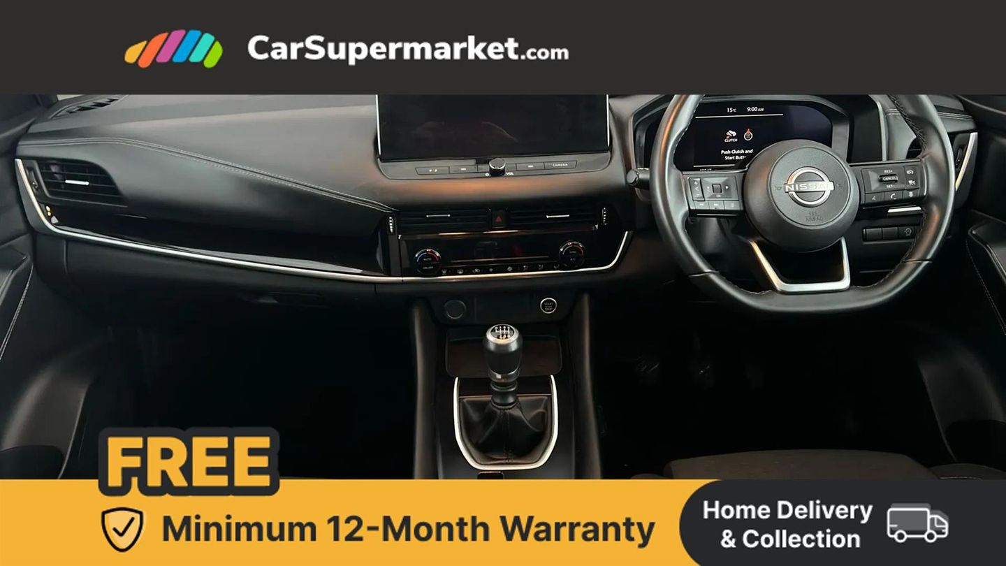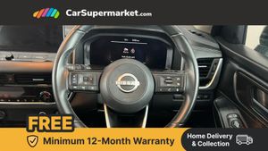 Android auto/Apple CarPlay (Wired),Blind spot warning,Drive modes (sport, normal, eco),Electric speed sensitive power steering,Emergency and breakdown call,Front and rear parking sensors,Full Digital 12.3" TFT Digital Combimeter,Google maps services - search, weather, 3D maps and Google street view,Idle stop/start system,Intelligent around view monitor,Intelligent Cruise control (ICC),Intelligent driver alert system,Intelligent forward collision warning,Intelligent lane intervention,Lane departure prevention,Lane departure warning system,Maximum speed limiter,Moving object detection,Nissan connect 12.3 inch touchscreen infotainment system,Nissan connect navigation,Push button starter,Rear cross traffic alert,Rear view camera,Remote control services - door locks, lights, horn and car locator,Telematics - notifications and connectivity services,TomTom live traffic services,Traffic sign recognition with legal speed adjustment,Trip computer,Virtual personal assistant and firmware over the air capability,Wireless apple carplay,6 speakers,AM/FM audio system with DAB,Bluetooth audio streaming,Front USB connections (Type-A and Type-C),Rear USB charging only ports (Type-A and Type-C),Auto dimming rear view mirror,Auto rear wiper when reversing,Automatic hazard signal with emergency stop signal,Body colour mirror caps,Body coloured door handles,Bodyside mouldings,Chrome side window finisher,Door handle with button,Electric auto folding door mirrors,Electrically adjustable and heated door mirrors with LED turn indicator,Follow me home headlights,High beam assist,Intelligent auto headlights,LED daytime running lights,LED Headlights,LED rear lights,One touch front and rear electric windows with remote opening and closing,Partially body coloured bumpers,Privacy glass,Rear bumper with graphite insert,Rear reversing light (bulb lighting),Rear roof spoiler,Rear side wing doors,Rear styling plate,Shark fin antenna,Splash free rain sensing wipers,Super UV and infrared cut glass,Three blink turn signal,12v power socket in dashboard and luggage,2x Rear coat hooks,3 bench rear seats in 2nd row,3 rear headrests,4 folding assist grip,6 Luggage hooks - 4 on floor, 2 on side,6-way manually adjustable driver's seat,60/40 split folding rear seat bench,Ambient lighting around centre console,Centre console storage tray,Chrome interior door handles,Cloth monoform upholstery,Driver and front passenger sunvisors with illuminated vanity mirrors,Driver seat back pocket,Dual zone automatic climate control with pollen filter,Electrically adjustable lumbar support for driver,Front and rear door storage,Front centre console and armrest,Front cupholders x 2,Front door with bottle holders,Glovebox with light,Hard trunk cover,Height adjustable driver's seat,Height adjustable front headrests,Height adjustable passenger seat,Leather shift knob,Leather steering wheel,Luggage board system,Luggage space lighting,Manually adjustable passenger (slide recline + lifter),Multifunction steering wheel,Passenger seat back pocket,Rear armrest with 2 cupholders,Rear door bottle holders,Single front passenger seat,Soft PVC kneepad,Steering wheel switches,Tilt/telescopic adjustable steering wheel,Two rear isofix child seat anchorage points with top tether,Welcome light and console tray ambient lighting,3x3 point rear seatbelt pretensioners + load limiters,ABS with EBD and brake assist,Active brake limited slip,Auto hold function,Child locks on rear doors,Curtain and front side, far side airbags,Driver and passenger airbags,Driver, passenger and 2nd row rear seat belt reminder,Electronic parking brake,Front seatbelt pretensioners + load limiters,Height adjustable front seatbelts,Hill start assist,Intelligent blind spot intervention,Intelligent front emergency braking with pedestrian, cyclist recognition and junction assist,Intelligent rear automatic braking,Tyre pressure monitoring system,Vehicle dynamic control,Capless fuel filler,Engine immobiliser,Intelligent Key,Remote central door locking with deadlocking,Thatcham Cat.1 alarm,Interior instrumental panel B finisher,18" Diamond cut alloy wheels,Tyre puncture repair kit,Glass roof pack with roof rails - Qashqai,Glass Roof Pack