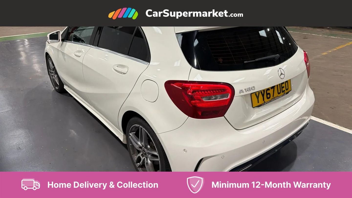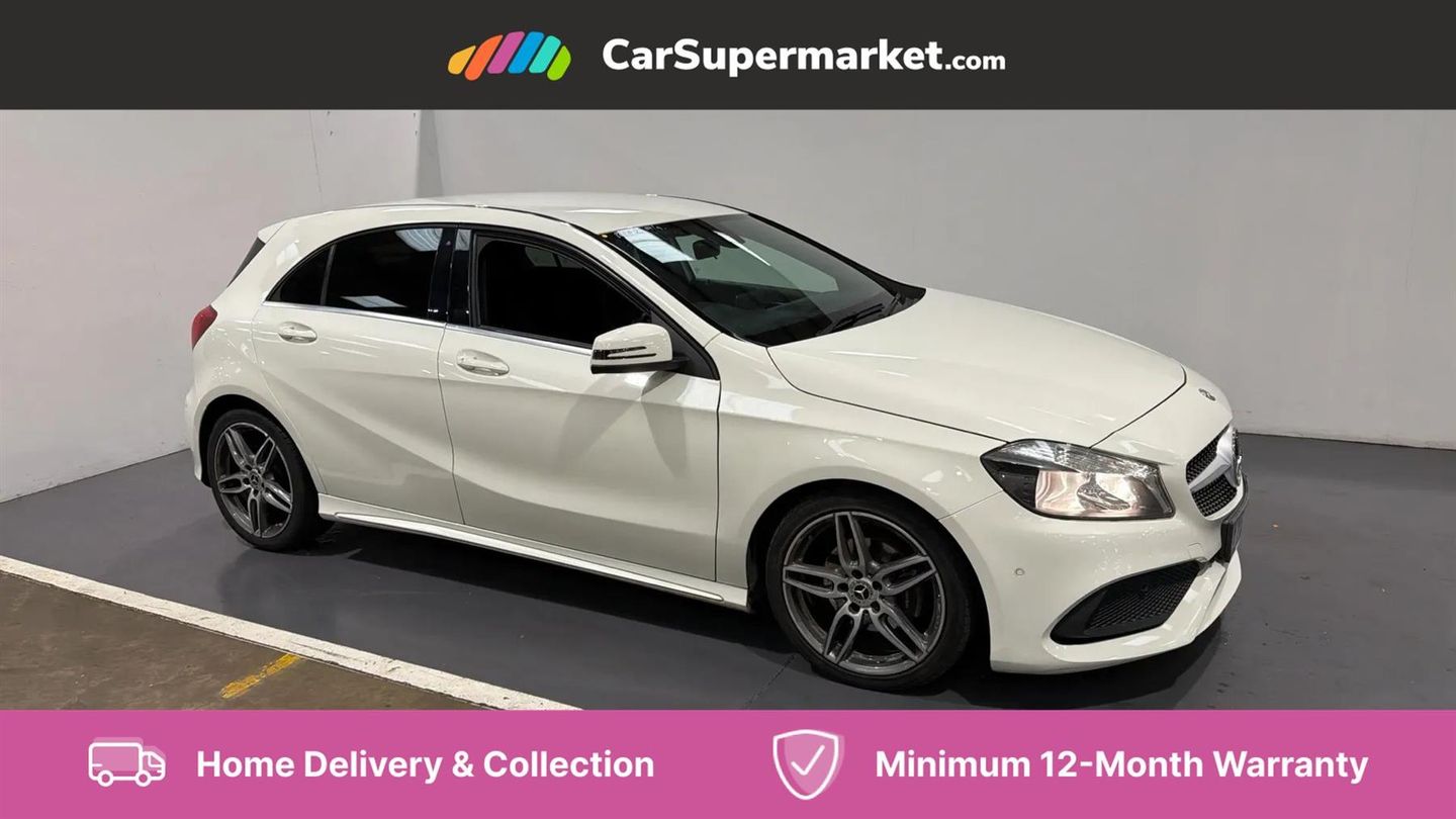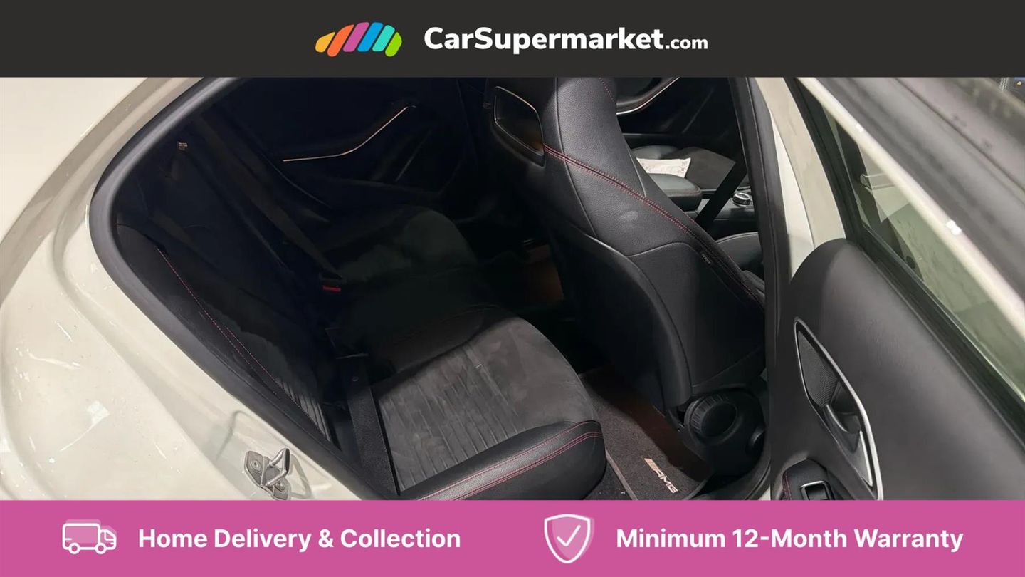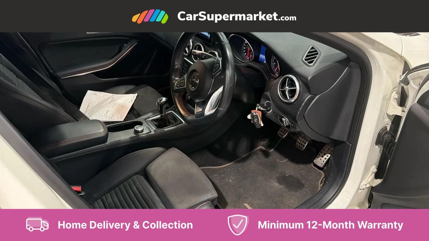 8" colour display screen,Attention assist,Bluetooth interface for hands free telephone,Bulb failure indicator,DYNAMIC SELECT with a choice of driving modes (ECO, Comfort, Sport, Sport+ and Individual),External temperature gauge,Low fluid warning light,Park assist pilot with front and rear park assist,Reversing camera,Service indicator (ASSYST PLUS),Speed dependent sports steering system,Trip computer,Voice control system,Lowered suspension,USB port,Adaptive brake lights,AMG body styling,Body colour bumpers,Body colour door handles,Body colour side skirt,Daytime running lights,Diamond radiator grille with chrome pins and silver louvre + chrome insert,Electric adjustable heated door mirrors,Electric front windows,Electric rear windows,Headlamp assist,Heated rear window with timer,LED tail lights,Rain sensor windscreen wipers,Rear wiper,Twin Trapezoidal tailpipes,1/3 to 2/3 split folding rear seats,12V socket,3 Spoke sports multifunction flat bottomed leather steering wheel,Ambient lighting,Auto Mercedes-Benz child seat recognition sensor,Black headlining,Brushed stainless steel sports pedals,Dual zone automatic climate control,Footwell lights,Front and rear reading lights,Front centre armrest with storage compartment,Front head restraints,Front sport seats,Height adjustable front seats,Height/reach adjustable steering column,Illuminated door sills,Illuminated glovebox,Illuminated storage compartment,Isofix rear child seat preparation,Leather gearshift,Load securing rings in luggage compartment,Luggage compartment cover,Rear head restraints,Storage compartment under load area floor,Sunvisors with illuminated vanity mirrors,Twin front cupholders,Seat comfort pack - A Class,3 rear 3 point seatbelts,ABS with Brake Assist,Active bonnet,Adaptive brake system,Brake calipers with Mercedes-Benz lettering + perforated brake discs,Child proof door locks,Crash responsive emergency lighting,Drivers knee airbag,Dual stage driver/passenger airbags,Electronic parking brake,ESP with ASR,Front and rear seatbelt reminder,Front head airbags,Front passenger seat occupancy sensor,Front side airbags,Hill start assist,Tyre pressure monitoring system,Warning triangle and first aid kit,Window airbags,Alarm system/interior protection/immobiliser,Keyless ignition,Remote central locking,Carbon effect trim,Chrome air vent surrounds,Tirefit sealant with electric air pump