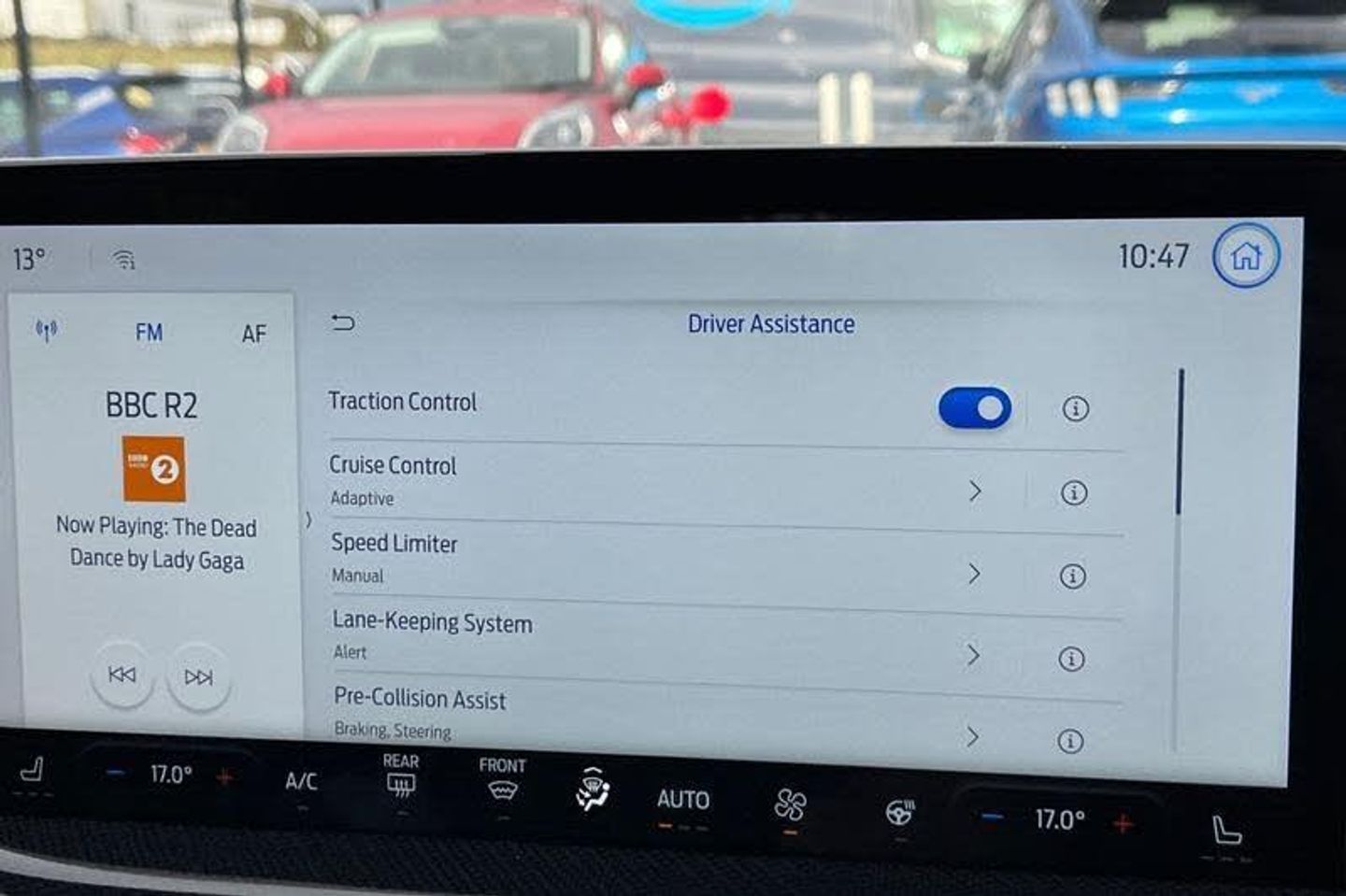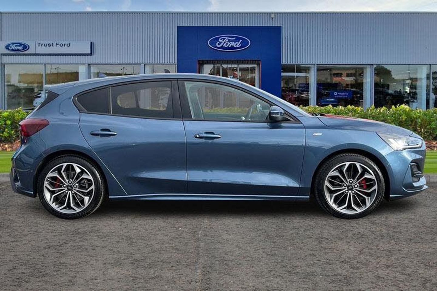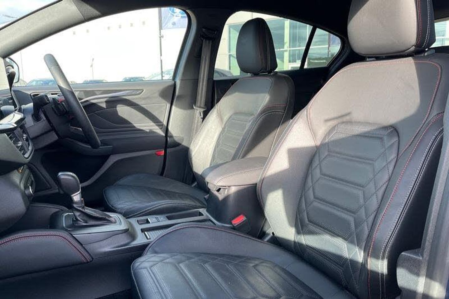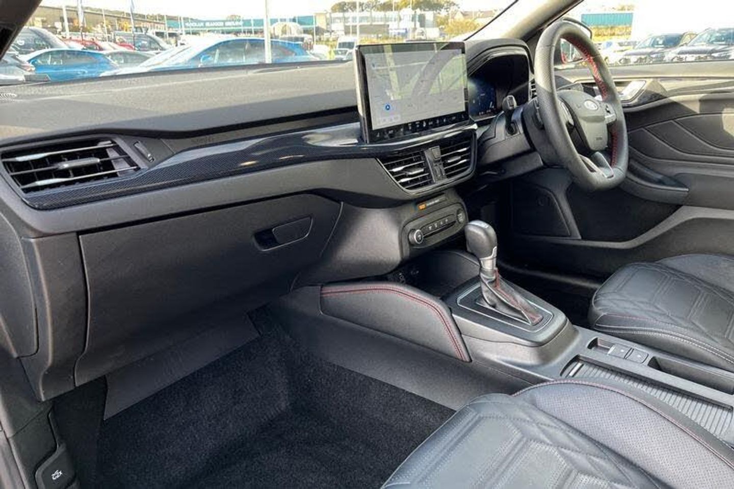 12.3 Digital instrument cluster, Bluetooth system, Digital clock, Easy fuel capless refuelling system, Eco mode, Ford SYNC4 Nav with 13.2'' touchscreen, DAB, Emergency Assistance, Apple Carplay & Android Auto, B&O Premium Audio with 10 speakers, FordPass Connect, Lane keeping system - lane keeping alert and lane keeping aid, PAS, Rev counter, Selectable drive mode, Service interval indicator, Trip computer, Wireless charging pad, Auto headlamps (on/off), Body coloured door handles, Electrically operated front and rear windows with one touch opening and closing, Electrically operated heated power fold door mirrors with puddle lamp with side indicators, Front variable intermittent wipers with electric wash, Heated rear window, LED daytime running lamp, LED rear lamps, LED third brake light, Polished twin tailpipe, Privacy glass, Quickclear heated windscreen, Rain sensor, Rear side wing doors, Tailgate wash/wipe, Unique ST-Line grille, full bodystyling kit, and large body coloured rear spoiler, 3 rear headrests, 3 seat bench in 2nd row, Dual zone electronic air temperature control, Full sensico premium upholstery, Height adjustable front headrests, Isofix child seat preparation, Load through ski hatch, Manual 2-way passenger seat adjust, Power 4-way driver seat adjust, with power lumbar adjust, Reach + rake adjustable steering column, Single front passenger seat, 3x3 point rear seatbelts, ABS+Electronic Brake force Distribution, Auto hold function, Driver airbag, EDL traction control, Electronic parking brake, Electronic stability control, Front and rear seatbelt reminder, Front inertia reel height adjustable seatbelts with pre-tensioners, Front passenger airbag, Front side airbags, Passenger airbag deactivate switch, Post collision braking, Pre collision assist with autonomous emergency braking and pedestrian/cyclist detection, Red brake calipers, Remote/power child rear door locks, Side curtain airbags, Three rear inertia reel lap/diagonal seatbelts, Tyre pressure monitoring system