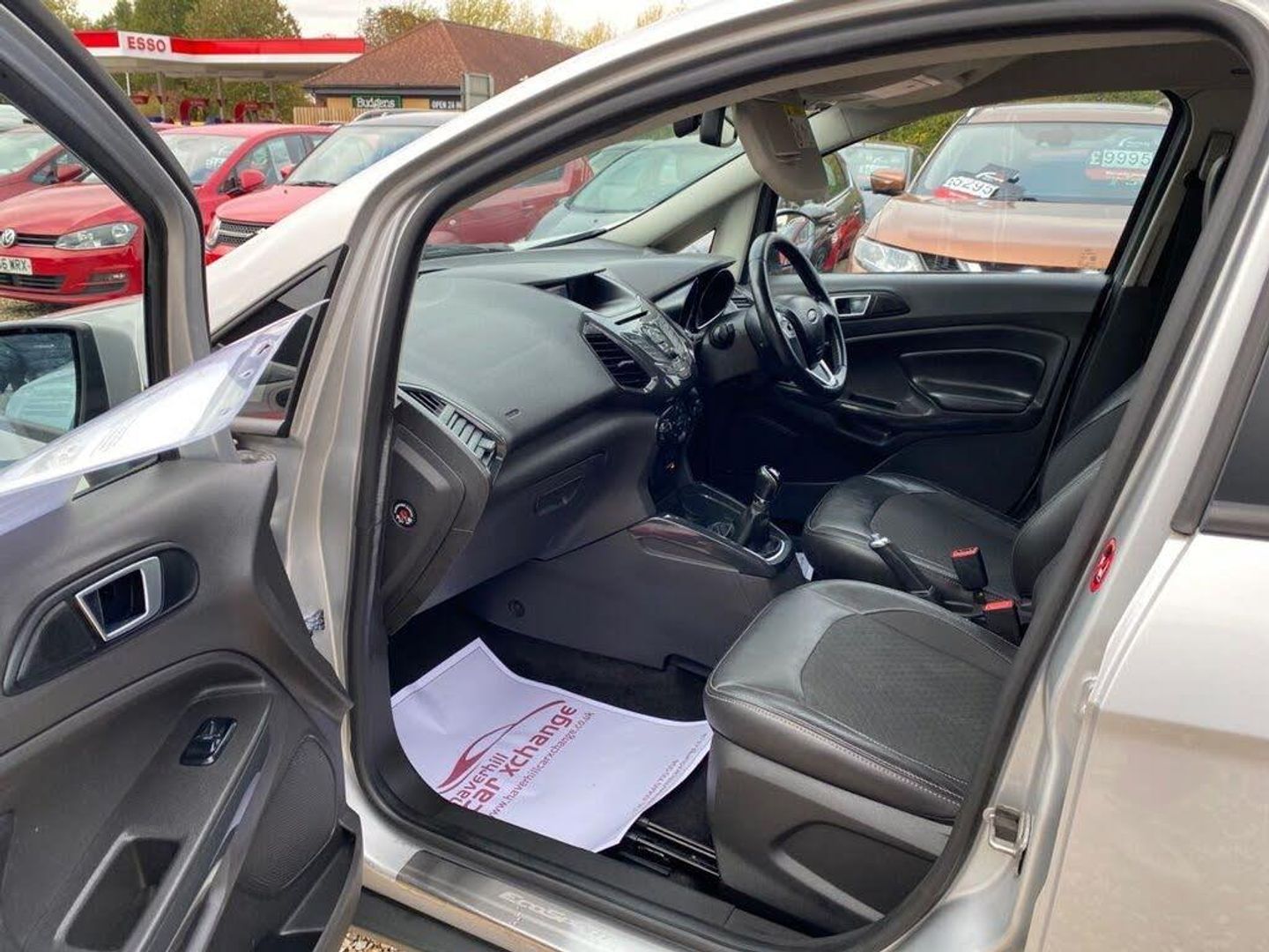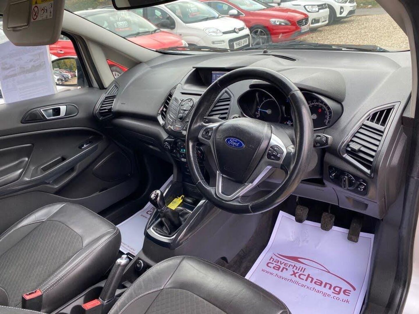 ONLY £35 A YEAR ROAD TAX+LONG MOT UNTIL 16.08.2026+RADIO-CD PLAYER+CLIMATE CONTROL AIR-CONDITIONING+AUTOMATIC HEADLIGHT ACTIVATION+RAIN-SENSING WINDSCREEN WIPERS+PARKING ASSISTANCE+HEATED HALF LEATHER UPHOLSTERY+'METALLIC MOONDUST SILVER' PAINT+17 INCH ALLOY WHEELS. At Haverhill Car Xchange we would like to offer you our Ford Ecosport Titanium SUV which has been finished in a metallic 'Moondust Silver' paint with luxurious HEATED Charcoal-Black half leather and cloth upholstery. Specification Includes Radio-CD Player, Front and Rear 12 Volt Power Socket, Automatic Climate Control Air-Conditioning, Gear Shift Indicator, Cruise Control, Front Electric Windows with One-Touch Opening/Closing on Drivers Side, Body Coloured Bumpers/Door Handles/Door Mirrors with Integrated Side Indicators and Rear Roof Spoiler, Silver Roof Rails, Chrome Lower Front Grille, Silver Scuff plates, Automatic Halogen Headlight Activation, Front Fog Lights with Integrated Daytime Running Lights and Chrome Surrounds, Auto Dimming Rear View Mirror, Rain-Sensing Windscreen Wipers, Parking Assistance, Multifunction Steering Wheel, 17 Inch Alloy Wheels, Electric Power Assisted Steering, ABS Breaking System, Airbags, Alarm, Immobiliser, Remote Central Locking and ISOFIX Anchorage Points for Child Seats. *** WE ARE OPEN 7 DAYS A WEEK *** ** UPTO 100 CARS IN STOCK **