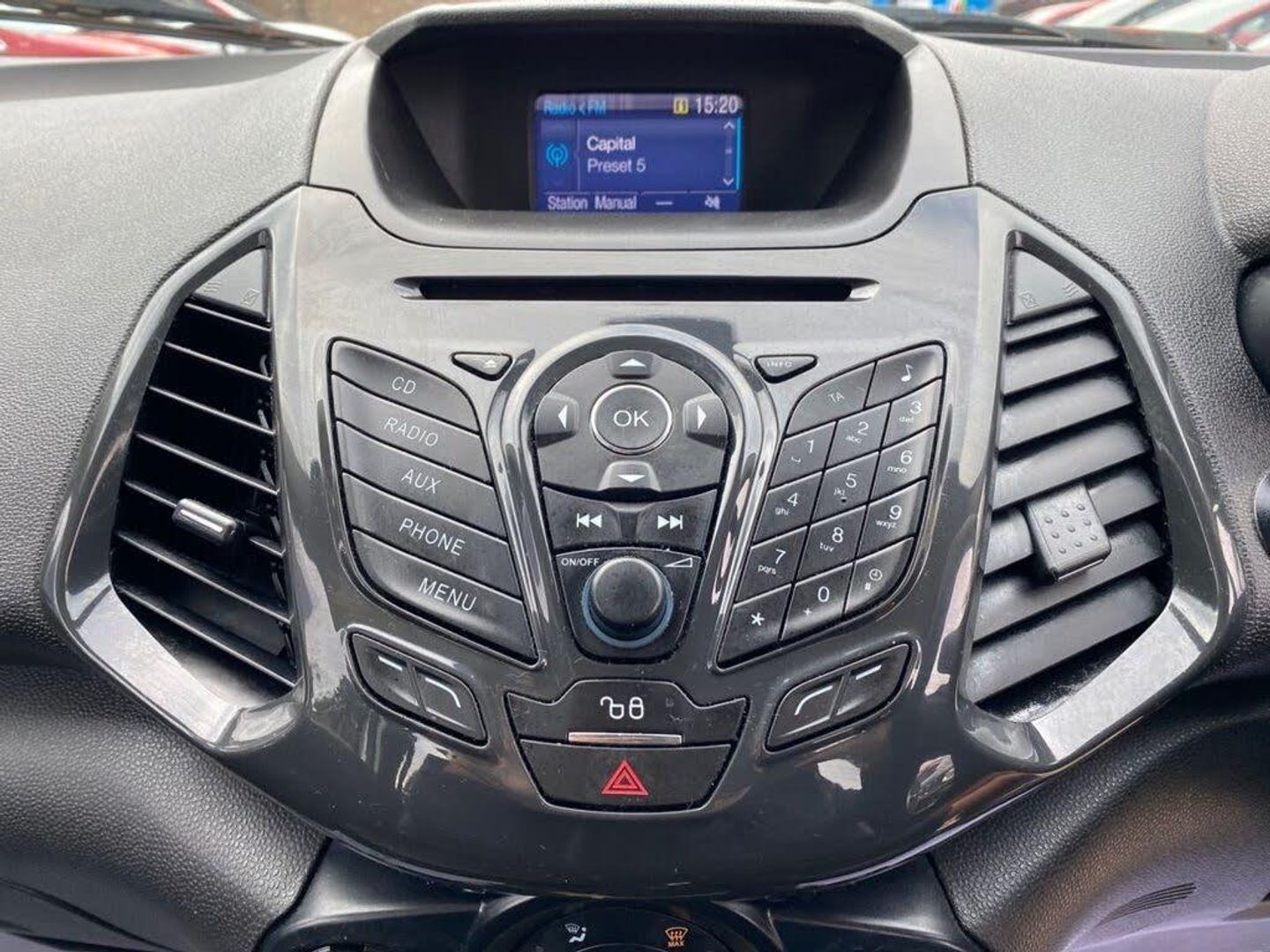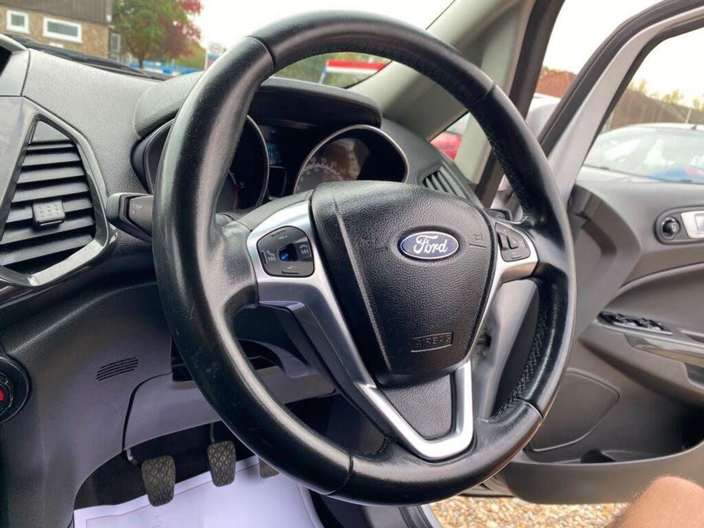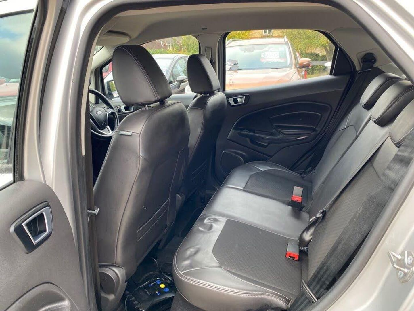 Quadro Partial Leather - Charcoal Black, Rear Parking Sensors, Moondust Silver, 17in Alloy Wheels - 5x2 Spoke in Silver Finish, Air Conditioning - Electronic Automatic Temperature Control - EATC, Airbags - Driver and Front Passenger, Airbags - Drivers Knee, Airbags - Front Passenger De-Activation Switch, Airbags - Front Side, Airbags - Front and Rear Side Curtain, Anti-Lock Braking System - ABS with Electronic Stability Control - ESC, Armrest - Drivers, Auto Dimming Rear View Mirror, Child Locks, Courtesy Lights - Front and Rear Centre with Theatre-style Dimming, Cruise Control, Door Mirrors - Body Colour Housing, EPAS - Electric Power Assisted Steering, Floor Mats - Carpet - Front and Rear, Ford Easy-Fuel Capless Refuelling System, Ford Keyfree System - Keyless Entry with Ford Power Starter Button, Front Bumper - Body Colour with Dark Valance, Front Fog Lights with Integrated Daytime Running Lights and Chrome Surrounds, Front Lower Grille - Chrome, Front Seat - Drivers Manual Height and Fore-Aft Adjustment, Front Seat - Drivers Manual Lumbar Support Adjustment, Front Seat - Passengers Fore-Aft Adjustment, Front Seat - Under Passenger Seat Stowage, Front Seats - 2-Way Head Restraint Up-Down, Front Seats - Seat-Back Map Pockets, Front Suspension - Independent with MacPherson Struts and Anti-Roll Bar, Front Upper Grille - Chrome, Front and Rear Power Points - 12V, Gear Shift Indicator, Gearshift Knob - Leather-trimmed with Black Insert and Aluminium-finish Ring, Headlights - Automatic - Halogen with LED Signature Lights, Hill Start Assist, IPS - Intelligent Protection System, Interior Door Lever - Chrome Finish, Locking Wheel Nuts, Package Tray, Radio-CD, Rake Adjustable Rear Seat, Rear Bumper - Body Colour with Dark Valance, Rear Seat - 60-40 Split Folding Seat Back and Cushion with Multi-Step Recline Function, Rear Suspension - Semi-Independent Twist Beam with Twin Gas and Oil-Filled Shock Absorbers, Scuff Plates - Silver, Seats - ISOFIX Mounting Provision for Child Seats - Outer Seats Only, Silver Lower-Bumper Lip - Front and Rear, Silver Roof Rails, Steering Column - Rake and Reach Adjustment, Steering Wheel - 3-spoke - Leather-trimmed - Remote Audio Controls, Thatcham Alarm, Threshold Plates - Front - Stainless Steel with EcoSport Logo, Tie-Down Hooks, Trip Computer, Tyre Pressure Monitoring System, Windows - Front Power with One-Touch Opening-Closing on Drivers Side, Windows - Rear Power, Wipers - Front - Automatic with Rain Sensor, Wipers - Rear Wash-Wipe - Intermittent