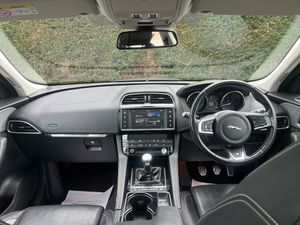 19in Alloy Wheels - 5 Split-Spoke Style 5038 - Grey Diamond Turned, 2-Zone Climate Control, 3-Flash Lane Change Indicators, 325mm Front Brakes, 40-20-40 Split Fold Rear Seat, 5in Display with Instrument Panel, 8-Way Manual Front Seats, ABS - Anti-locking Braking System, AEB - Autonomous Emergency Braking, Airbags - Front Side, Airbags - Full Length Side Window Curtain, Ambient Interior Lighting, Approach Illumination, Auto-Dimming Interior Rear View Mirror, Bluetooth Audio Streaming, Bluetooth Telephone Connectivity, Brake Pad Wear Indicator, Bright Metal Pedals, Carpet Mats, Centre Console - Side Stowage, Centre Console - Storage Surround Finishers - Satin Chrome, Centre Console with Armrest, Cruise Control with Speed Limiter, Digital Audio Broadcast - DAB - Radio, Door Mirrors - Body Coloured, Door Trim - Luxtec, Dynamic Stability Control and Traction Control, Dynamic Volume Control, EBA - Emergency Brake Assist, ECO Driving Style Assistant, EPAS - Electric Power Assisted Steering, EPB - Electronic Parking Brake - Drive Away Release, Ebony Morzine Headlining, Electric Windows - Front and Rear with One-Touch Open-Close and Anti-Trap, Electrically Adjustable Heated Door Mirrors, Etched Aluminium Trim Finisher, Front Airbags with Passenger Seat Occupant Detector, Front Fog Lights, Front Headrests, Front Parking Aid, Gloss Black Roof Rails, Gloss Black Side Window Surround, Grained Black Radiator Grille with Satin Chrome Surround, Green Tinted Glass, Hazard Lights Under Heavy Braking, Heated Front Seats, Heated Rear Window, Hill Launch Assist, Hook in Loadspace, ISOFIX Rear, InControl Apps, Interior Front Door Handles with Separate Locking Switches, Jaguar Script and Leaper, Jaguar Sound System, Jaguar Tyre Repair System, JaguarDrive Control, LED Tail Lights, Lane Departure Warning, Loadbay - Luggage Tie Downs, Lockable Glovebox with Jaguar Script Finisher, Luxtec Wrapped Instrument Panel Topper, Manually Adjustable Steering Column, Metal Treadplates with R-Sport Branding, Navigation System, No Derivative and-or Engine Badge, Outside Temperature Gauge, Overhead Lighting Console, Passive Front Head Restraints, Perimeter Alarm, Power Boot Lid, Power Operated Child Locks, Power Sockets, Power Tailgate, Protect for Warranty Period, Push Button Start, R-Sport Body Kit, Rain Sensing Windscreen Wipers, Rear Air Vents, Rear Armrest with Twin Cupholders, Rear F-Pace Badge, Rear Fog Lights, Rear Parking Aid, Remote Control Central Locking, Remote Premium for Warranty Period, Reversible Boot Floor - Carpet-Rubber, Satin Chrome Side Vents with R-Sport Badge, Satin Chrome Touchscreen Surround, Seat Belt Reminder, Seats - Sports, Second Row Centre Headrest, Single Sided Twin Tailpipes with 75mm Finishers, Single View 8in Touchscreen for Touch, Speed Proportional Steering, Start Up Sequence with Movement - Dials and Lighting, Steering Wheel - Multi-Function, Steering Wheel - R Sport Branded Soft Grain Leather, Torque Vectoring, Traffic Sign Recognition with Intelligent Speed Limiter, Trailer Stability Assist, Trip Computer, Twin Front Cupholders, Tyre Pressure Monitoring System, Valet Mode, Variable Intermittent Wipers, Vehicle Immobiliser, Wi-Fi Hotspot, Xenon Headlights with LED Signature