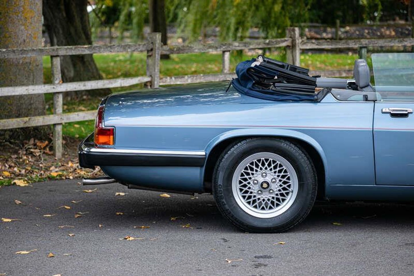 Finished in Arctic Blue with a matching blue hood and Saville Grey leather interior, the combination exuding understated sophistication typical of late 1980s Jaguars