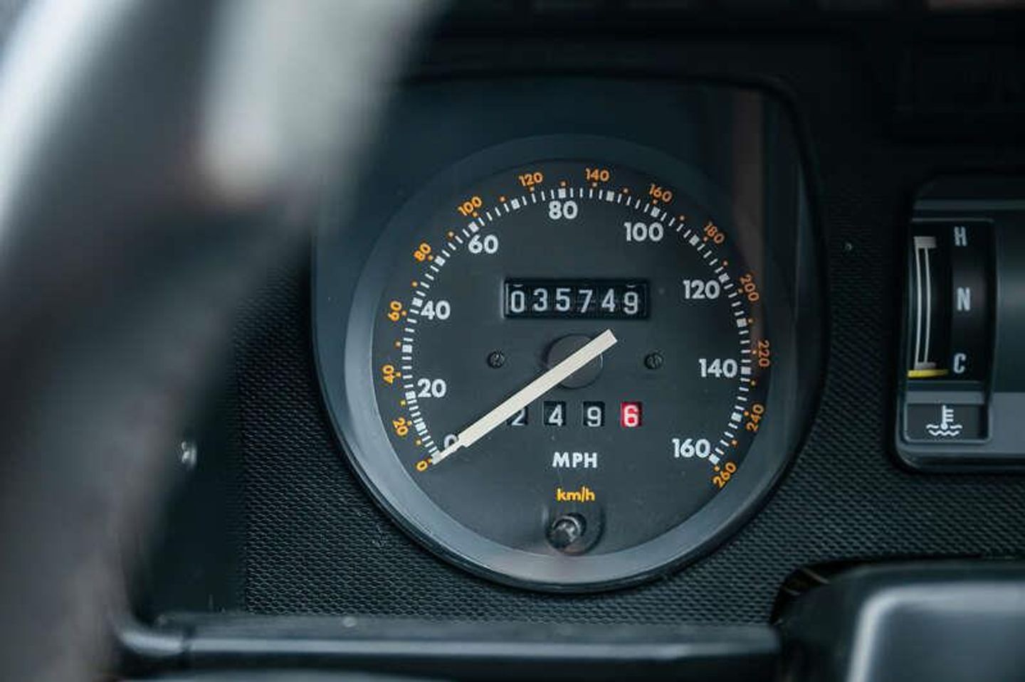 The odometer now shows just 35,745 miles, supported by the original stamped service book and accompanying history file