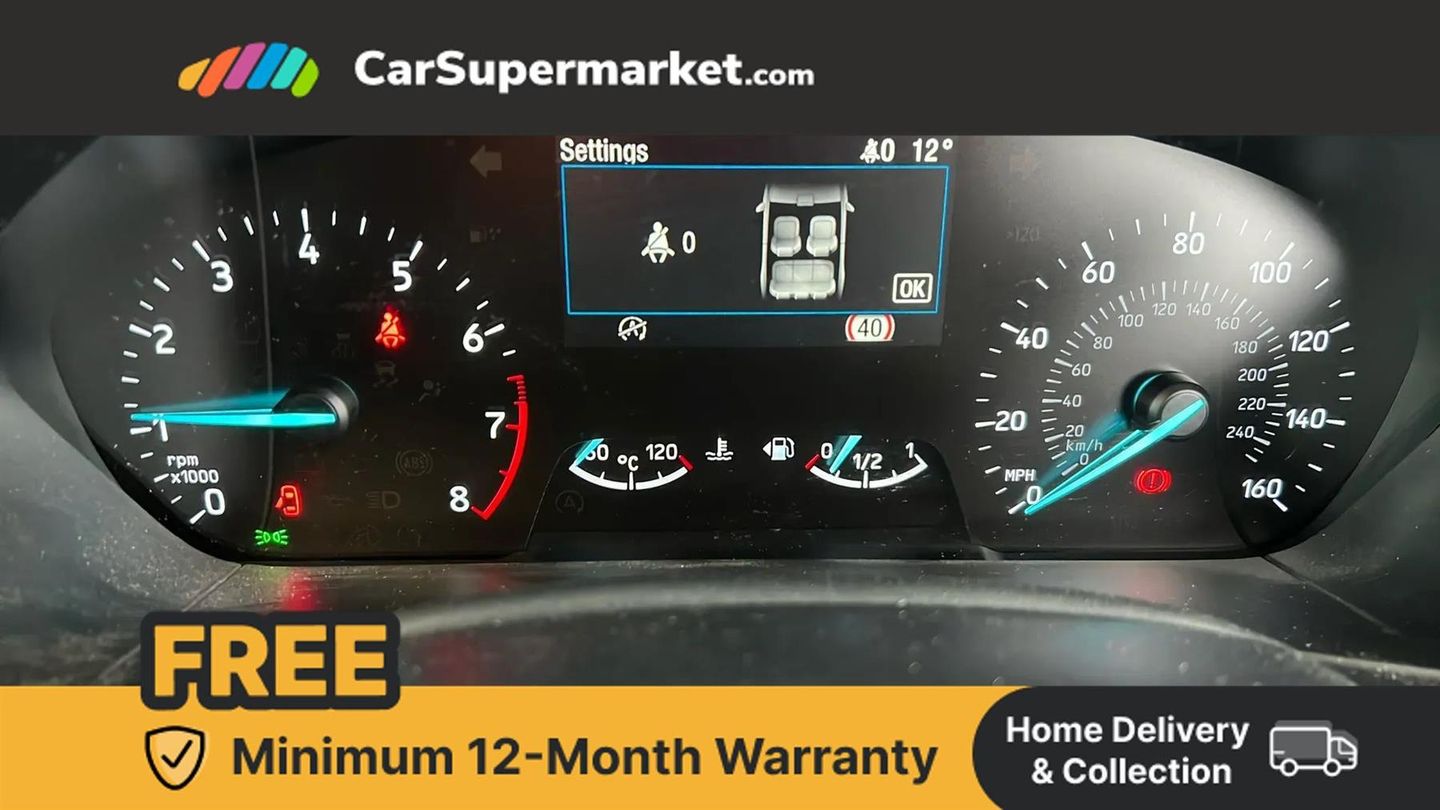 4.2" TFT coloured cluster,Bluetooth system,Digital clock,E-call,Easy fuel capless refuelling system,Eco mode,Ford SYNC 3 navigation with 8" TFT touchscreen, DAB radio and app link Android auto/Apple carplay,Intelligent speed assist,Lane keeping system - lane keeping alert and lane keeping aid,PAS,Selectable drive modes with slippery and trail mode,Trip computer,Raised ride height (30mm higher than standard),2 USB ports,Aux input,Active front and rear bumper with unique upper and lower grille,Auto dimming rear view mirror,Auto headlamps (on/off),Automatic rain sensing wipers,Black painted roof and mirror caps,Body coloured bumpers,Body coloured door handles,Electrically operated and heated door mirrors with side indicators,Electrically operated front and rear windows with one touch opening and closing,Front variable intermittent wipers with electric wash,Heated rear window,LED daytime running lamp,LED front fog lamps with cornering function,LED reflector headlamps,Power folding door mirrors,Quickclear heated windscreen,Rear privacy glass,Rear side wing doors,Tailgate wash/wipe,Third brake light,Twin exhaust pipes,Unique skid plates and side rocker mouldings,3 seat bench in 2nd row,3 spoke Sensico trimmed steering wheel with integrated audio controls,Cloth upholstery,Driver's lumbar support,Height adjustable front headrests,Isofix child seat preparation,Leather gear knob,Manual air conditioning,Reach + rake adjustable steering column,Rear centre headrest,Single front passenger seat,3x3 point rear seatbelts,ABS+Electronic Brake force Distribution,Auto hold function,Driver airbag,Electronic parking brake,Electronic stability control,Front and rear seatbelt reminder,Front inertia reel height adjustable seatbelts with pre-tensioners,Front passenger airbag,Front side airbags,Hill start assist,Manual rear child locks,Passenger airbag deactivate switch,Post collision braking,Pre collision assist with autonomous emergency braking and pedestrian/cyclist detection,Side curtain airbags,Three rear inertia reel lap/diagonal seatbelts,Tyre pressure monitoring system,Ford keyfree system with Keyless entry and keyless start/sleep mode key fob,MyKey system,Remote central locking & engine immobiliser,Thatcham category 1 alarm,17" 5 spoke foundry black machined painted finish alloy wheels,Mini steel spare wheel,Chrome Blue,Convenience Pack,Activity Line Fabric and Casual Eton Bolster - Ebony with Nordic Blue Stitching