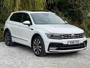 1 FORMER KEEPER|2 KEYS|FULL SERVICE HISTORY - 8 SERVICES - 3 MAIN DEALER SERVICES - SERVICE INTERVALS @ 9K, 19K, 26K, 32K, 49K, 58K, 68K, 85K - MOST RECENT SERVICE DONE @ 85,871|LOGBOOK|£5,895 WORTH OF EXTRAS|EURO 6|ULEZ COMPLIANT|Optional Equipment when new£5,895inc. VATUpholstery - 'Vienna' leather£1,500LED 'Mid' headlights£1,350Discover Navigation Pro touch-screen navigation/radio system with Car Net Guide & Inform and App-Connect£995Keyless entry with electric boot lid£655'Dynaudio Excite' soundpack£550Heads up display£495Voice activation£185Sports suspension£165Deletion of engine badges-Oryx White Premium Signature-Total price when new£37,905inc. VATEquipment: Navigation SystemParking Sensor(s)Climate ControlLeather Trim20'' Alloy WheelsPrivacy GlassPanoramic RoofThis Volkswagen Tiguan TDI R Line from 2016 offers excellent provenance, having had only two owners and a clear vehicle history check. It features a robust 2.0 litre diesel engine paired with Four Wheel Drive, meeting Euro 6 emission standards. The R Line trim ensures a sporty aesthetic, and with a towing weight of 2500 kg, it's ready for various adventures. Notable features include the impressive Dynaudio Excite Soundpack for premium audio, Keyless Entry with an electric boot lid for convenience, and a Head Up Display to keep your eyes on the road.This Tiguan also benefits from Park Assist with a rear view camera, making parking straightforward. Its large boot space provides ample room for luggage or shopping, a practical advantage over many similar vehicles. Furthermore, its low insurance group rating indicates that running costs are kept manageable, making this a sensible choice for many drivers.-5K EXTRAS|PANROOF|HEAD-UP|ULEZ-ALL CARS ACCEPTED IN PART EXCHANGE FINANCE AVAILABLE, NATIONWIDE DELIVERY TEST DRIVES SUBJECT TO T&C