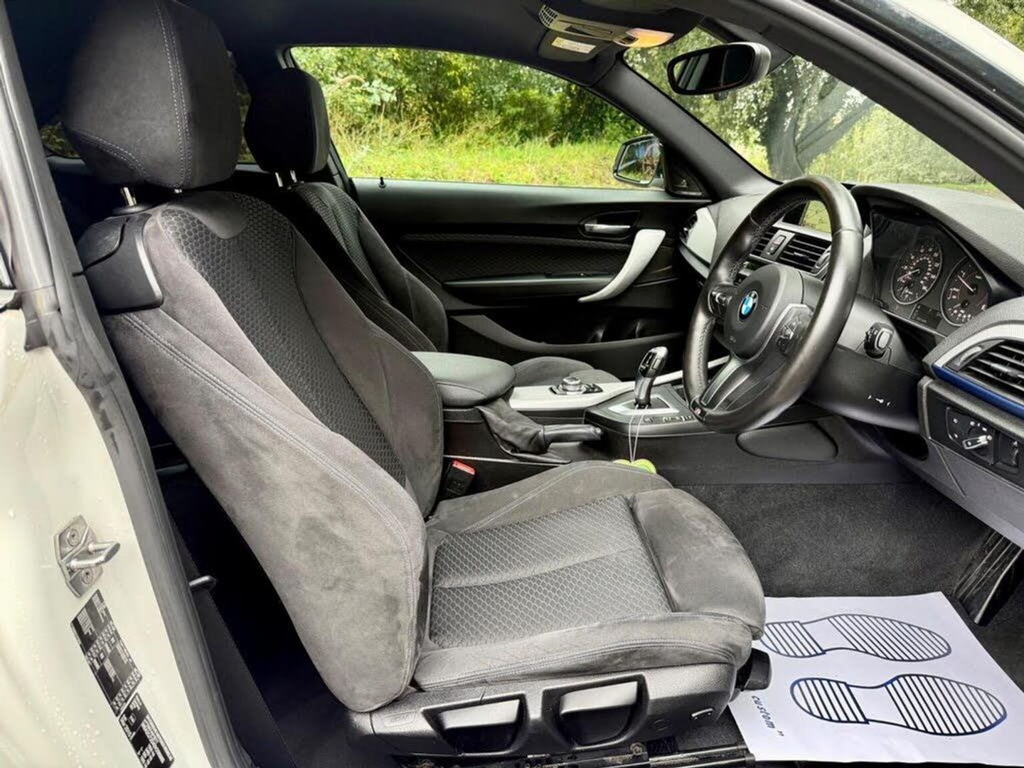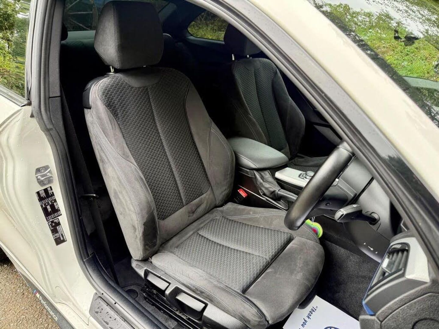Features: 12V Power Socket - Front x2,18in Alloy Wheels - M Double Spoke - 461M,6.5in Colour Display Screen,ABS - Anti Lock Braking System,ADB - Automatic Differential Brake,Air Conditioning - Automatic - Single Zone,Airbags - Curtain,Airbags - Driver,Airbags - Front Side,Airbags - Passenger,Airbags - Passenger Deactivation,Alarm System Thatcham 1 with Remote Control,Ambient Interior Lighting,Armrest - Front with Sliding Adjustment,ASC - Automatic Stability Control,Automatically Dimming Rear View Mirror,Auxiliary Input,Battery Safety Cut Off,Bluetooth Hands Free with USB Audio Interface,BMW Emergency Call,BMW Professional Radio - Single CD and MP3,BMW TeleServices,Brake Assist,Brake Drying,Brake Pad Wear Indicator,Bumpers - Body Colour,CBC - Cornering Brake Control,Central Locking - Remote,Check Control Warning System,Child Seat ISOFIX Attachment - Rear x2,Comfort Go Keyless Engine Start,Crash Sensor,Crash Sensor - Activating Central Locking-Hazard Warning Lights-Fuel Cut Off,Cup Holders - Front x2,DAB Digital Radio,Daytime Running Lights,DBC - Dynamic Brake Control,Door Handles - Body Colour,Door Mirrors - Body Coloured Housing,Door Mirrors - Electric and Heated and Aspheric,Door Sill Finishers - M Designation,Drive Performance Control with Comfort-Sport and Sport Modes,DSC - Dynamic Stability Control Plus,DTC - Dynamic Traction Control,Dynamic Brake Lights,Electric Windows - Front and Rear with Open-Close Fingertip Control,Engine Immobiliser,Exterior Trim - Chrome,Exterior Trim - High-Gloss Shadowline,First Aid Kit,Floor Mats - Velour,Follow Me Home Headlight Function,Front Fog Lights,Grab Handles - in Roof Lining x4,Grab Handles with Coat Hooks,Halogen Headlights,Handbrake Lever - Gear Lever Knob and Gaiters in Leather,Head Restraints - Rear and Folding,Headlight - Beam-Throw Control - Automatic Levelling,Headlights - Automatic Activation,Headlining - Anthracite,Heated Windscreen Washer Jets,High Level Third Brake Light,Hill Start Assist,Incorrect Fuelling Protection System,Interior Trim - Aluminium Hexagon,Interior Trim - Aluminium Hexagon with Estoril Blue Finisher,Kidney Grille - Chrome Extra-Wide High-Gloss Black Vertical Slats,LED Tailights,Lights-on Audio Warning,Locking Wheel Bolts,Luggage Compartment - Lashing Eyes x2,M Aerodynamic Bodystyling,M Sport Package,M Sport Suspension,Multifunction Controls for Steering Wheel,OBC - On-Board Computer,Optimum Shift Indicator,PDC - Park Distance Control - Rear,Personal Profile,Power Steering - Electric,Rain Sensor with Automatic Headlight Activation,Roof Mouldings - Body Colour,Run Flat Tyres,Seats - 60-40 Split Folding Rear,Seats - Manual Adjustment for Height - Fore and Aft Position - Recline Angle,Shark Fin Aerial,Speed Limit Function,Sport Instrument Cluster,Sport Seats - Front,Steering Column with Manual Reach and Rake Adjustment,Steering Wheel - Leather - M Sport,Sun Visors with Illuminated Vanity Mirrors and Ticket Pocket,TPMS - Tyre Pressure Monitoring System,Trim Finisher - Estoril Blue - Matt,USB Audio Interface,Warning Triangle,Automatically Dimming Rear View Mirror,BMW Navigation Package,Enhanced Bluetooth Telephone Preparation with USB Audio Interface and Voice Control,Hexagon Cloth-Alcantara - Anthracite with Black Interior,Interior Trim - Aluminium Hexagon with Estoril Blue Finisher,Loudspeaker System - Harman Kardon,M Rear Spoiler,PDC - Park Distance Control - Front and Rear,Xenon Headlight Package