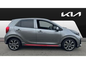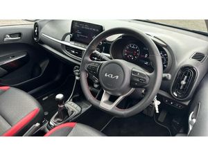 The Kia Picanto Hatchback 1.0 GT-Line is a compact city car that offers a blend of sporty styling and practical features. Powered by a 1.0-litre petrol engine, it delivers efficient performance suitable for urban driving. The GT-Line trim adds sporty elements such as 16-inch alloy wheels, LED headlights, and a distinctive front grille. Inside, the cabin is equipped with modern technology, including a touchscreen infotainment system with smartphone integration, ensuring convenience and connectivity on the go. Safety features are also a priority, with the Picanto GT-Line offering advanced driver assistance systems to enhance overall driving confidence. With its compact dimensions, the Picanto is well-suited for navigating tight city spaces, while its stylish design and feature-rich interior make it an appealing choice for those seeking a practical yet fashionable city car.