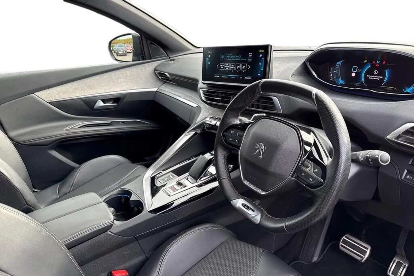 1-3 - 2-3 Folding Rear Seat,12V Sockets x3 - Dashboard - Rear Cabin and Load Area,180 Degree Colour Reversing Camera with Wash System,18in Alloy Wheels - Detroit - Gloss Black,3.7KW Monophase On Board Charger,3D Connected Navigation,6-Speaker Radio - MP3 Compatible,ABS - Anti-Lock Braking System with REF - Electronic Braking Distribution and AFU - Emergency Braking Assistance,Aikinite Contrast Stitching to Armrest - Gear Lever Gaiter and Dashboard Facia,Air Conditioning - Automatic Dual Zone Climate Control,Airbags - Adaptive Driver and Front Passenger,Airbags - Driver and Front Passenger Side,Airbags - Front and Rear Curtain,Alarm,Aluminium Longitudinal Roof Bars,Aluminium Pedals,Automatic Door Locking When Moving Off,Automatic Hazard Light Activation Upon Heavy Brake Application,Bi-Tuner Radio including DAB - Digital Radio,Blue Ambient Lighting for Connecting Zone,Blue Ambient Lighting to Front Door Panels and Cupholders,Bluetooth Telephone Facility,Body Protectors in Black,Brumeo Fabric Trimmed Door Armrests,Central Front Armrest with Butterfly-Wing Opening and Illuminated Compartment,Chrome Grille,Chrome Window Line Trim,DSC - Dynamic Stability Control and ASR - Electronic Anti-Skid System,Dark Tinted Rear Side and Tailgate Windows,Dashboard Trim - Satin Chrome,Digital Instrument Panel Trim - Satin Chrome,Drive Assist Plus Pack,Driver Attention Alert System 1 - DAA1,Driver Sport Pack,Electric Child Locking Functionality on Rear Windows and Doors,Electric Parking Brake includes Hill Assist,Electric Power Steering with Reach and Rake Adjustable Steering Column,Electronic Code Immobiliser,Extended Traffic Sign Recognition,Exterior Door Handles - Body-Colour,Exterior Temperature Indicator with Ice Warning,Flocked Front Door Pocket Interior,Flocked Glove Box Interior,Fog Mode - LED Headlights Switch on Low Beam Headlights with Reduced Intensity when Rear Fog Lights are Activated,Footwell Lighting,Front Ambient Lighting,Front Central Console with Two Cup-Holders,Front Door Panel Recess Trim - Satin Chrome,Front Door Sills with Stainless Steel Insert Featuring PEUGEOT Lettering,Front Interior Light with Reading Spotlights x2 and Rear Interior Light with Reading Spotlights x2 - with Timer,Front Optimised Safety Headrests and Rear Retractable Headrests - x3 - Height-Adjustable,Front Three-Point Retractable Seatbelts - Height-Adjustable with Pre-Tensioners and Force Limiters,Front Windscreen Wiper with Magic Wash Cleaning System,Front Wing Trim - Chrome,Front and Rear Door and Sill Protectors with Polished Stainless Steel Insert,Full LED Headlights with Static Cornering Lighting and Daytime Running Light Extension,Gear Shift Indicator,Gloss Black B and C Pillar and Aerodynamic Deflector Trim,Gloss Black Front Bumper Air Scoops,Gloss Black Rear Cluster Connecting Strip,Grab Handles x4 - Retractable - Damped,HYBRID Emblems on Front Wings and Tailgate,Headlights Left On Audible Warning,Heated Rear Windscreen with Integrated Antenna,Horn - Two Tone,ISOFIX Child Seat Fittings - x3 - In the Front Passenger and Outer Rear Seats,Illuminated Glove Box,Illuminated Vanity Mirrors,Individual Left and Right Controls Located in Boot for Rear Seat Folding,Interior Door Handles - Satin Chrome,LED Daytime Running Lights - Saber Style with Integrated LED Indicators,LED Interior Lighting,LED Rear Lights including Reversing Lights - Scrolling Indicators and PEUGEOT 3 Claw Effect Light Signature with Daylight Function,LED Rear Number Plate Lighting,LED Side Indicator Lights Integrated into Door Mirrors,Lane Departure Warning System,Map Pockets on Front Seat Backs,Mirror Screen - Apple CarPlay and Android Auto,Mistral Black Floor Mats with Aikinite Contrast Stitching,Mistral Full-Grain Perforated Leather Steering Wheel with Aikinite Stitch Detail and Satin Chrome GT Line Emblem,Mode 3 Type 2 Cable for Wallbox Charging,Multifunction Trip Computer,One-Touch Electric Front and Rear Windows with Pinch Protection,PEUGEOT Open and Go System,Parking Sensors - Front,Peugeot Connect SOS and Assistance,Peugeot i-Cockpit,Power Folding Door Mirrors with Blind Spot Detection Indicator and Auto Dipping Function in Reverse Gear,Puncture Repair Kit including Compressor - Sealant Cartridge and Towing Eye,Rear Bench Seat with Central Armrest and Ski Hatch,Rear Bumper Facia - Chrome,Rear Centre Console Ventilation System,Rear Coat Hooks x2,Rear Parking Aid,Rear Passenger USB Charging Sockets x2 - Type A,Rear Spoiler - Body Colour with Stainless Steel Edging Trim,Rear Three-Point Retractable Seatbelts x3 - with Pre-Tensioners and Force Limiters in the Outer Rear Seats,Rear Windscreen Wiper Triggered Automatically in Reverse Gear,Remote Control Central Locking,Roof - Black Diamond,Scorpions Tail and Toggle Switch Trim - Satin Chrome,Seatbelt Unfastened on the Move Audible and Visual Alert for Front and Rear Seats,Seatbelt not Fastened Audible and Visual Alert for Front Seats,Seating - Driver and Front Passenger Seat Height Adjustment