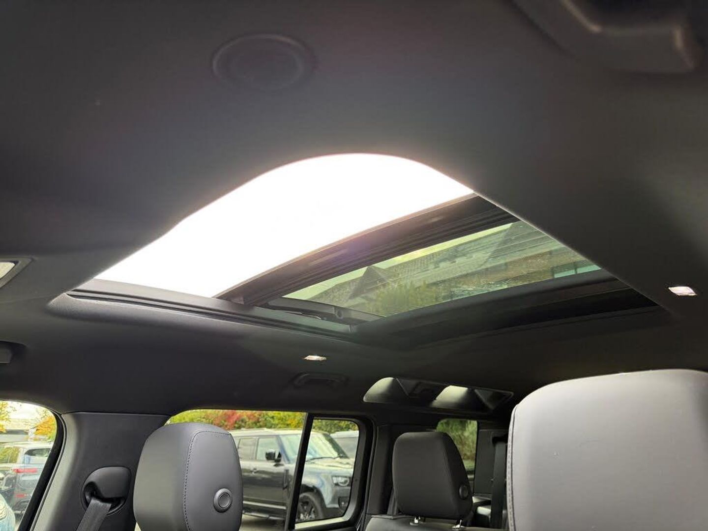 1 x USB-C - Power Only - 1 x USB-C - Power and Data in Row 1 - 2 x USB-C in Row 2 and 2 x USB-C in Row 3, 11.4in Touchscreen, 12-Way Heated - Electric Memory Front Seats with 2-Way Manual Headrests, 12V Power Sockets in Row 1 and Load Space, 2-Zone Automatic Climate Control, 20in Alloy Wheels - Style 5094 - 5 Spoke - Satin Dark Grey, 20in Full Size Spare Wheel, 360 Degree Parking Aid, 3D Surround Camera, 40-20-40 Folding Rear Seats with Centre Armrest, ABS - Anti Lock Braking System, ACC - Adaptive Cruise Control, AHBA - Auto High Beam Assist, All Season Tyres, Alpine Lights, Android Auto, Apple CarPlay, Auto-Dimming Interior Rear View Mirror, Automatic Headlight Levelling, Automatic Headlights and Rain Sensing Wipers, Black Contrast Roof, Black Exposed Rear Recovery Eyes, Black Roof Rails, Blind Spot Assist, Body Coloured Bonnet, Brake Hold, Brake Pad Wear Indicator, CBC - Cornering Brake Control, Carpet Mats, Centre Console with Armrest, Centre High Mounted Stop Light, Coil Suspension, Configurable Cabin Lighting, Cross Car Beam in Light Cloud Powder Coat Finish, Customer Configurable Autolock, DSC - Dynamic Stability Control, Digital Audio Broadcast Radio - DAB, Driver Condition Monitor, Durable Rubber Cabin Flooring, Durable Rubber Loadspace Flooring, EBA - Emergency Brake Assist, EBD - Electronic Brake-Force Distribution, EPAS - Electric Power Assisted Steering, ETC - Electronic Traction Control, Electric Cabin Pre-conditioning, Electric Parking Brake, Electric Windows with One-Touch Open-Close and Anti-Trap, Emergency Braking, Follow Me Home Lighting, Footwell Lights - Front, Front Airbags with Passenger Seat Occupant Detector, Front Passenger Seat ISOFIX, Glovebox Storage, HDC - Hill Descent Control, Headlining - Ebony Morzine, Heated Electric Power Fold Door Mirrors with Approach Lights and Auto-dimming Driver Side, Heated Rear Window with Timer, Heated Windscreen, Hill Launch Assist, Illuminated Metal Treadplates with Brand-Name Script, Interactive Driver Display, Intrusion Sensor, Keyless Entry, LED Headlights with Signature DRL, LED Tail Lights, Lane Keep Assist, Loadspace Cover, Loadspace Hooks, Locking Wheel Nuts, Low Traction Launch, Manually Adjustable Steering Column, Meridian Sound System, No Flat Load Floor Storage, Non Smokers Pack, Online Pack with Data Plan, Pivi Pro - Connected, Power Operated Child Locks, Premium Non-Leather Steering Wheel, Privacy Glass, Puddle Lights, Push Button Start, RSC - Roll Stability Control, Rear Collision Monitor, Rear Fog Lights, Rear ISOFIX, Rear Reading Lights, Rear Traffic Monitor, Rear Wash Wiper, Remote, Resist Gearshift, Seat Belt Reminder, Seats - Rear Centre Head Restraint, Secure Tracker Pro, Side-Hinged Tailgate, Signature Graphic - with Interior Storage, Sliding Panoramic Roof, Standard Interior, Standard Seating Configuration, Standard Tail Door, Sun Visors - Illuminated Vanity Mirrors, TPMS - Tyre Pressure Monitoring System, TSA - Trailer Stability Assist, Terrain Response, Traffic Sign Recognition and Adaptive Speed Limiter, Trip Computer, Twin Front Cupholders, Twin Speed Transfer Box - High-Low Range, Wireless Device Charging, 3D SURROUND CAMERA, SLIDING PANORAMIC ROOF, LANE KEEP ASSIST WITH UPCOMING TRAFFIC DETECTION, Air Suspension Pack, Electrically Deployable Towbar, Santorini Black