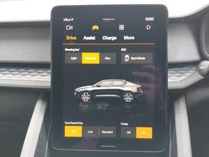 360 degree camera, Heated front seats, Adaptive cruise control, Infotainment powered by Android including Google Assistant, Google Maps, Google Play Store, Apple car play, Park assist side, Pilot assist, Polestar app with vehicle functionality, Rear park assist, Electric tailgate with soft closing, Front park assist, Lane keeping aid with steering support, 12.3" Active TFT crystal driver's information display, Type 2 Mode 3 charge cable 3P, 230V, 16A, 11kW- 6m, Type 2 Mode 3 charge cable 1P, 230V, 32A, 2.3kW- 7m, Dynamic chassis, 11KW onboard charger, DAB Digital radio, 2 USB-C connectors rear, 2 USB-C connectors front, Adaptive LED Headlights, LED front fog lights, Thor's hammer daytime running lights, 2 zone electronic climate control, ISOFIX attachment front passenger seat, ISOFIX attachment on rear outer seats, One pedal drive (regenerative braking), adjustable, Hill start assist, Polestar digital key, Rear collision warning and mitigation (RCWM), Keyless entry with handsfree boot lid opening, Keyless Start, Key integrated remote control central locking, Acoustic vehicle alert system (AVAS)