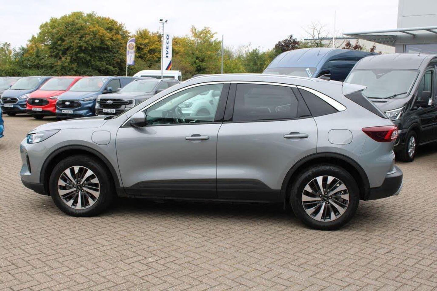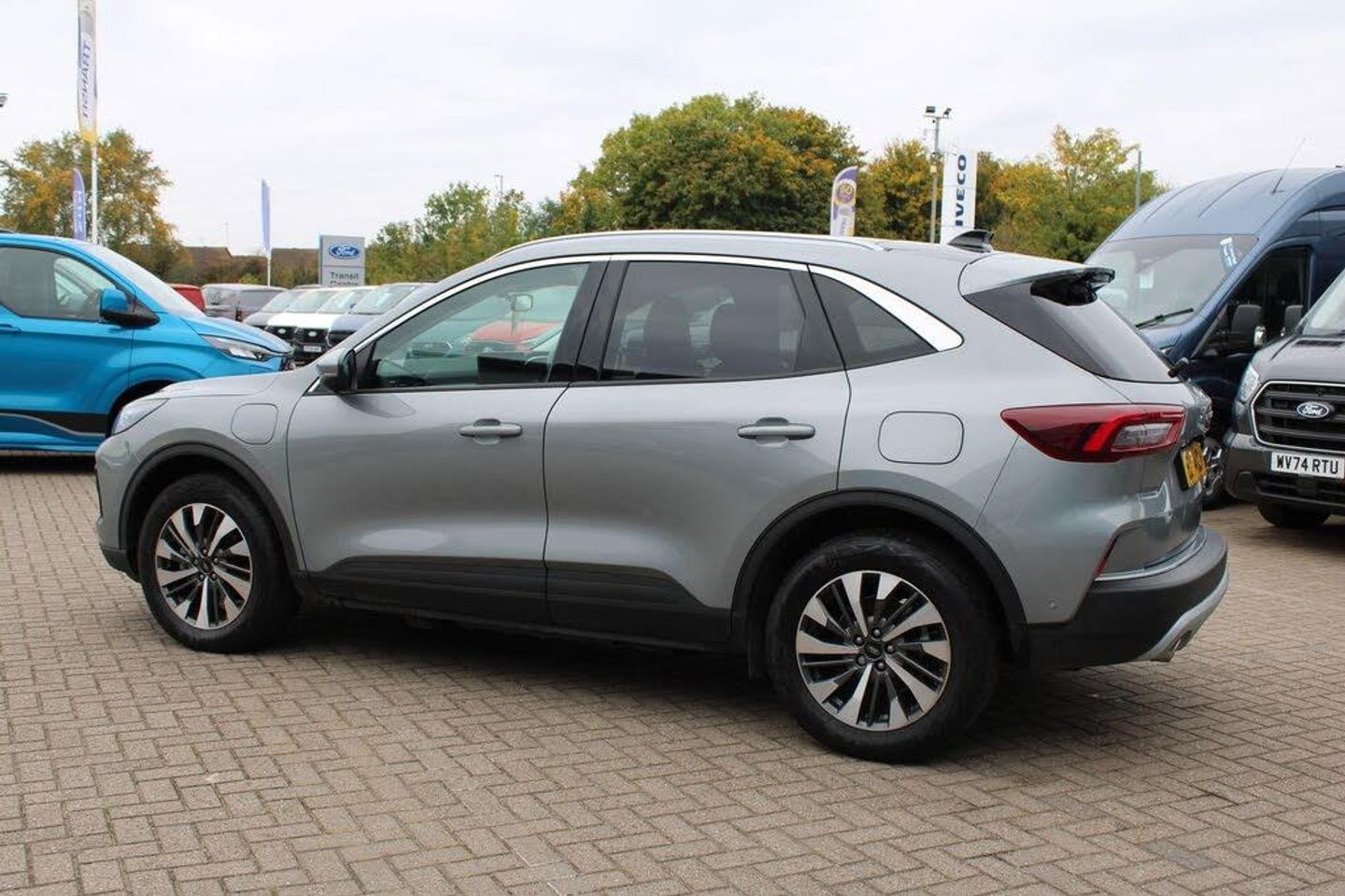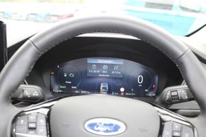 12.3" digital colour instrument cluster, e-Call (emergency call), Ford easy fuel, Ford SYNC 4 Navigation with 13" touchscreen, DAB radio, emergency assistance, Andriod Auto/Apple CarPlay, 5G modem Ford Pass connect, Front and rear parking sensors, Lane keeping aid with lane departure warning, Manual tailgate, Power assist steering, Rear view camera, Selectable drive modes, Service interval indicator, 2 USB ports, 6 speaker audio system, Auto headlamps with high and low beam, Body colour bumpers, Front LED fog lamps, LED daytime running lights, LED rear lights, Power folding heated door mirrors with puddle lights, Power front/rear windows with global close, Quickclear heated windscreen, Rain sensing wipers, Rear privacy glass, Rear side wing doors, Rear spoiler, Rear wiper, Silver roof rails, Third brake light, 2nd row sliding seats, 8 way manual adjustable drivers seat, 8 way manual passenger seat including lumbar support and height adjust, Electronic automatic temperature control (EATC), Front and rear head restraints, Rear centre head restraint, Single front passenger seat, Titanium cloth upholstery, Engine immobiliser, Keyless entry and Ford power start button (Keyless start), Locking wheel nuts, Remote powered central double locking doors, Thatcham category 1 alarm