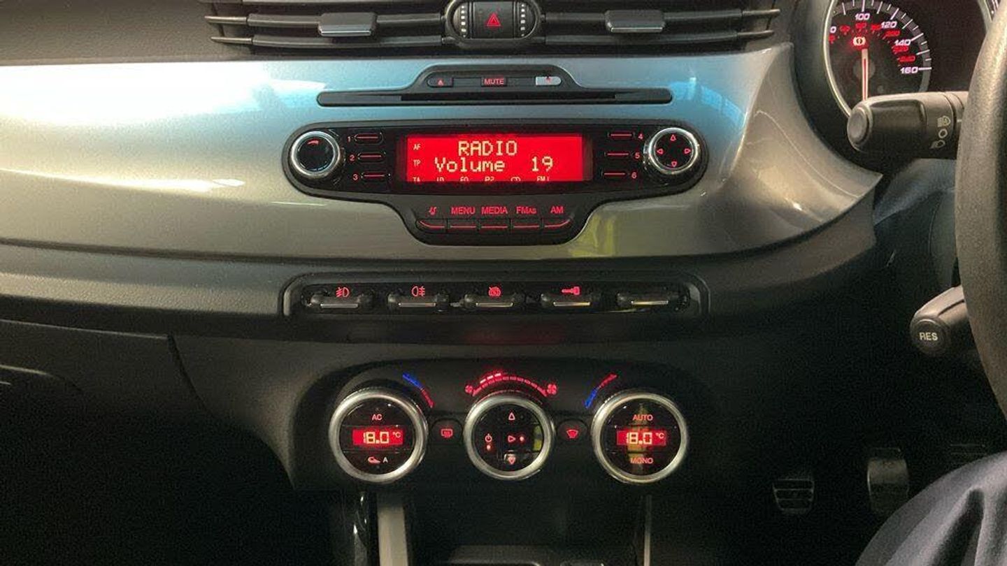 16in 5 double Spoke Alloy Wheels, 16in Alloy Wheels - 5 Double Spoke, 6 Speakers, 60-40 Split Folding Rear Seats, ABS - Anti Lock Braking System, AQS - Air Quality System, ASR - Acceleration Skid Control, Airbags - Driver, Airbags - Front Side, Airbags - Passenger, Airbags - Passenger Deactivation, Airbags - Window, Alarm System, Armrest - Front with Storage, BAS - Brake Assistant, Blue&Me - Bluetooth Hands Free System, Chrome Effect Window Sills, Climate Control - Dual Zone, Cruise Control, Daytime Running Lights - LED, Door Mirrors - Body Coloured, Door Mirrors - Electrically Adjustable and Heated, EBD - Electronic Brakeforce Distrubution, EPS - Electric Power Assisted Steering, Electric Windows - Front and Rear, Electrochromic Rear View Mirror with Deactivation Button, Electronic Q2 Differential, Front Fog Lights, Headlights - Auto On - Dusk Sensor, Hill Holder, ISOFIX Attachments for Child Seat Protection, Magnesium Grey dash trim, Multifunction Display, Parking Sensors - Rear, Radio with CD-MP3, Rain Sensors, Rear Cluster Lights - LED, Rear Spoiler, Remote Audio Controls, Remote Central Locking with Electronic Key, Safe Lock, Seats - Drivers Height Adjustment, Seats - Passenger Height Adjustment, Space Saver Spare Steel Wheel - 16in, Speakers x6, Sports Dials with White Illumination, Steel space saver spare Wheel, Steering Wheel - Height and Reach Adjustment, Steering Wheel - Leather and Gear Knob, Steering Wheel - Matte Black Leather Inserts, Storage - Front Seat Back Pockets, Trim Inserts - Magnesio Grey, Trip Computer, USB and Aux, VDC - Vehicle Dynamic Control, Visibility Pack, Voice Recognition and Media Player, Leather- Sports- Black with Red stitching