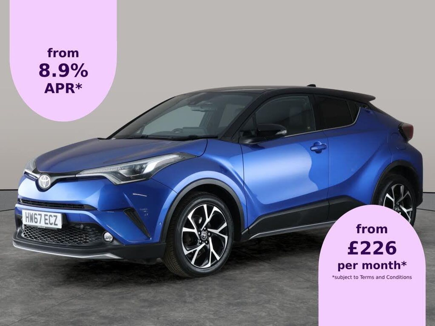 Experience style and innovation with this blue Toyota C-HR. Enjoy comfort on every journey with heated seats, advanced Park Assist, and the convenience of keyless start. Navigate with ease using the built-in sat nav and reversing camera, while Adaptive Cruise Control, Blind Spot Assist, and Lane Departure Warning System help keep you safe. Distinctive LED headlights and daytime running lights add a modern touch, all complemented by seamless connectivity with Bluetooth and smart traffic sign recognition. Discover your next adventure today. 8 services recorded, last serviced on 08/10/2025 at 50,000 miles. MOT to 07/10/2026. Visit our website for service history, online valuation, full vehicle specification plus multiple images. Any feature/option specified here is from 3rd party data. We cannot guarantee the accuracy of any specification supplied by a 3rd party. We recommend that you physically check the specification of the vehicle on site prior to purchase. This information does not form part of the buying contract. Terms & Conditions apply. We have over 2,000 cars available from our 10 national branches, check our website to see all our stock. Our Trustpilot rating is 4.4/5 with over 9,000 reviews.
