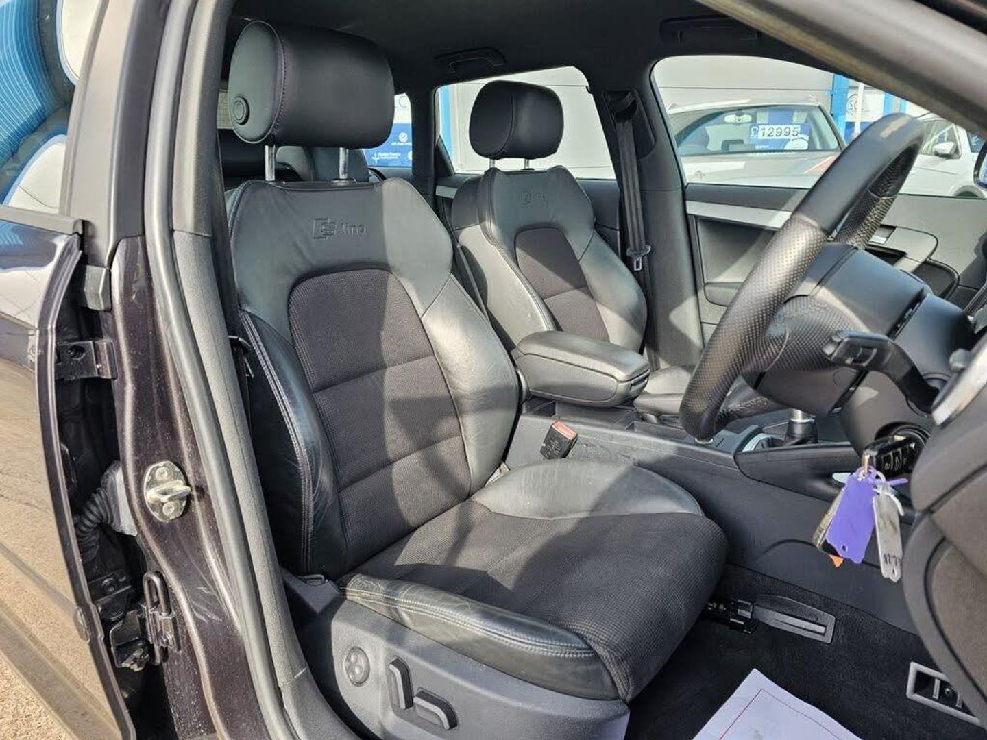 Leather & Alcantara- Perforated- Black, Meteor Grey, Acoustic Parking System- Front&Rear, Sound Pack, Bose Sound System with 8 Speakers, Audi music interface, Storage Pack when with Electric Driver Seat, Storage Pack when with Electric Seats, Storage Pack, Interior Light Pack S Line & S3 & Special Editions, Heated Front Seats, Electric lumbar support, Electric Front Seats with height & backrest & fore & aft adjust, Comfort Pack, Audi Exclusive- Steering Wheel handbrake & gearshift gaiter, Aluminium gear knob, Audi Exclusive- Steering Wheel, Privacy Glass, 18in 7 Twin Spoke Alloy Wheels, Ashtray, Auxiliary input socket, Black stitching, Cigarette Lighter, Concert Radio & single CD player with MP3 facility, Deletion of model & engine designation at Rear, Front&Rear floor mats, Leather handbrake, Matt brushed Aluminium inlay, Non smoking Pack, Piano Black finish inlay, S line Sports suspension, Silver stitching, Sports suspension