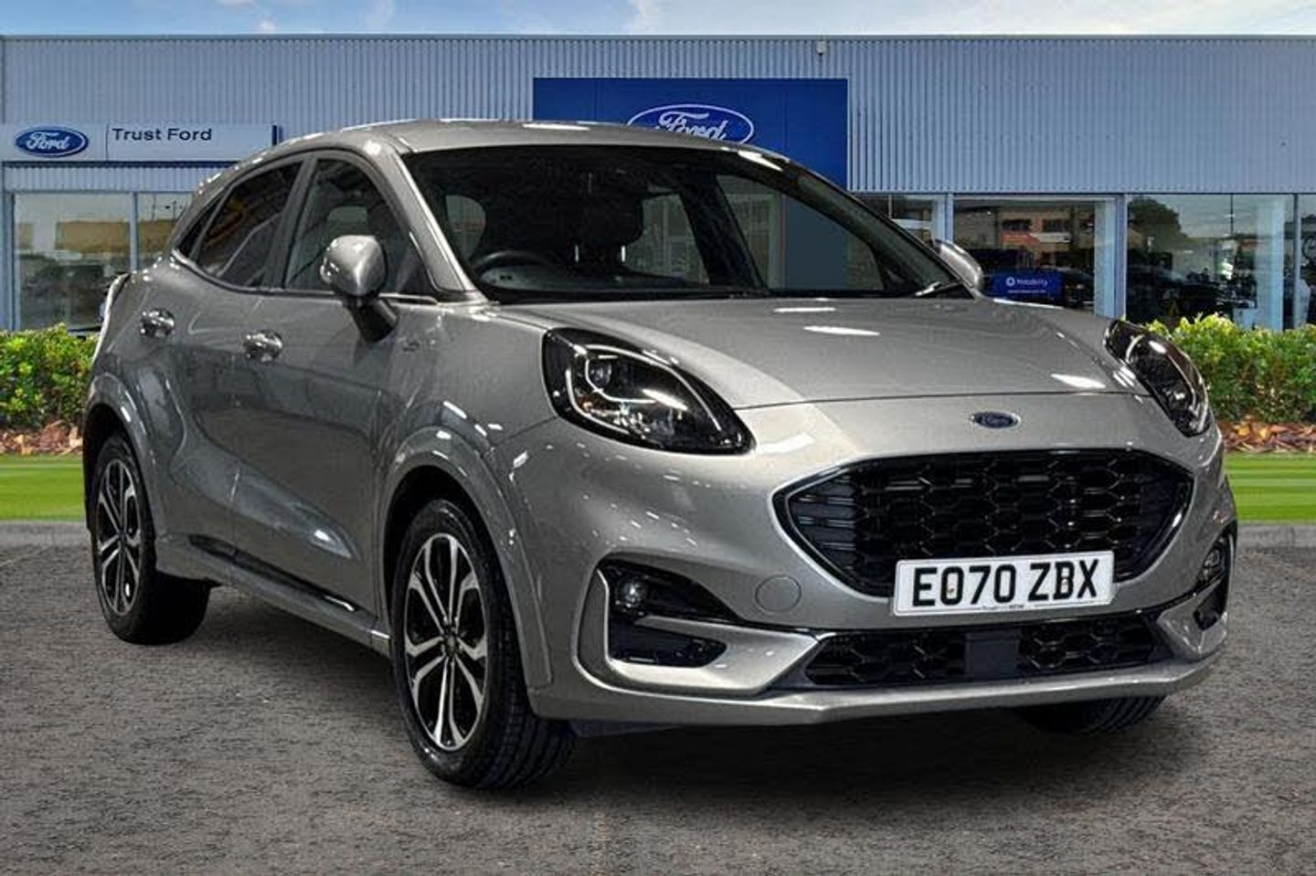 Driver impairment monitor, Emergency call service, Ford easy fuel, Full digital 12.3 instrument cluster, Lane keeping aid with lane departure warning, Power assist steering, Power start button, Rear parking sensor, Selectable drive modes(Normal, sport, Eco, trail, slippery), Speed sign recognition, Automatic headlights with auto high beam, Automatic rain sensing wipers, LED rear lamps, Power foldable heated door mirrors with puddle lamps, Projector headlamps with LED day time running lights and front fog lamps, Quickclear heated windscreen, Rear side wing doors, Rear wiper, ST-Line body styling kit with unique grille, Third brake light, 3 seat bench in 2nd row, Centre console with armrest and stowage, Ford megabox extended bootspace, Front and rear head restraints, Front floor mats, Manual 2 way passenger seat adjustment, Manual 4 way driver seat adjust with lumbar adjustment, Single front passenger seat, ST- Line cloth trim with red stitching, ST-Line flat bottomed sensico leather steering wheel with leather handbrake and aluminium gear knob, 3 rear seatbelts, Child safety lock, Electronic stability control (ESC) and hill start assist, Pedestrian/cyclist detection & post-collision braking, Pre collision assist system, Tyre pressure monitoring system (TPMS)