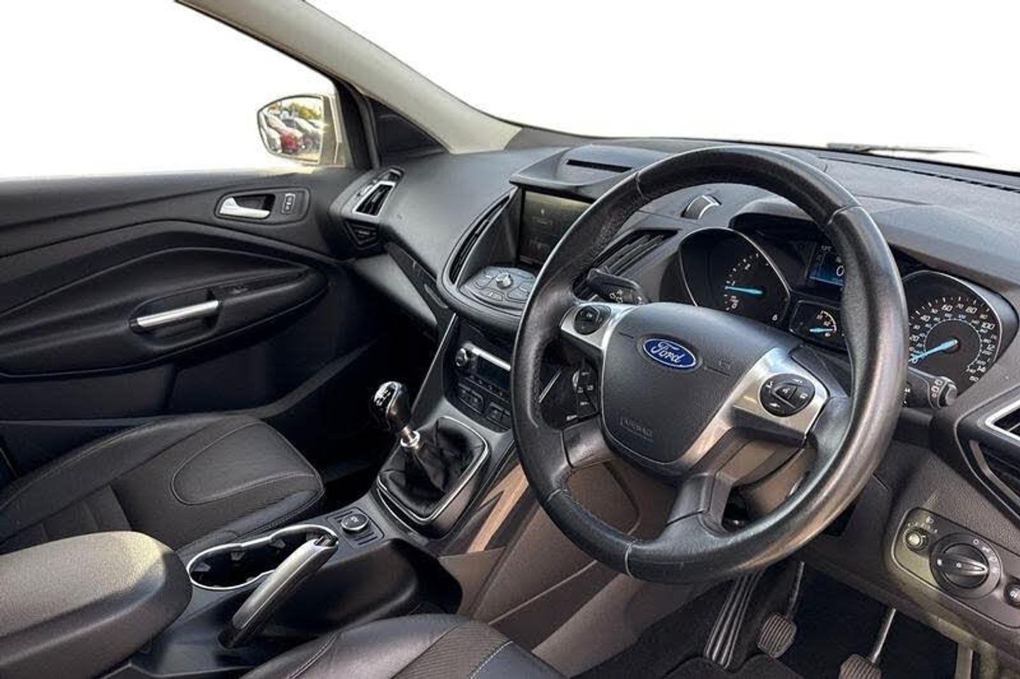 'Ford Power' starter button, EPAS, Ford SYNC bluetooth connection with advanced voice control and USB port, SYNC Emergency Assistance, Trip computer, 'Quickclear' heated windscreen/heated washer jets, Auto dimming rear view mirror, Automatic headlights, Body colour bumpers, Body colour rear spoiler, Electric front and rear windows + one touch + global open/closing, Electrically heated door mirrors, Front fog lights, Rain sensor windscreen wipers, Rear diffuser, Scuff plates, Tailgate wash/wipe, Twin exhaust pipes, 2nd row air vents, 4 spoke leather steering wheel with silver accents, 60/40 split/folding rear back and cushion, Auxiliary power socket in luggage area, Centre console with stowage tray/bottle holder/CD stowage/front and rear 12V power point, Driver/front passenger manual lumbar adjust, Driver/passenger front seatback pockets, Driver/passenger seats fore/aft adjustment, Dual electronic automatic temperature control, Folding rear centre armrest with storage compartment + cupholders, Footwell courtesy lights front and rear, Front head restraints, Front overhead courtesy lights with theatre style dimming and delay, Front/rear floor mats, Front/rear reading lights, Isofix system on outer rear seats, Leather gearknob, Manual height adjustable front seats, Part leather upholstery, Reach + rake adjustable steering column, Rear head restraints, Sports style front seats, Stowage unit in upper instrument panel, Tie down hooks, Tonneau cover, Variable intensity instrument illumination, 3 point seatbelts on all 3 rear seats, ABS/EBD, Driver and passenger airbags, Driver and passenger side airbags, Electric traction assist system, ESP+EBA, Front and rear curtain airbags, Hill start assist, Intelligent Protection System (IPS), Roll stability control, Tyre pressure monitoring system