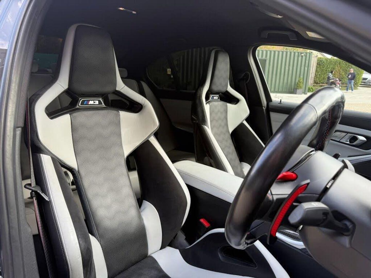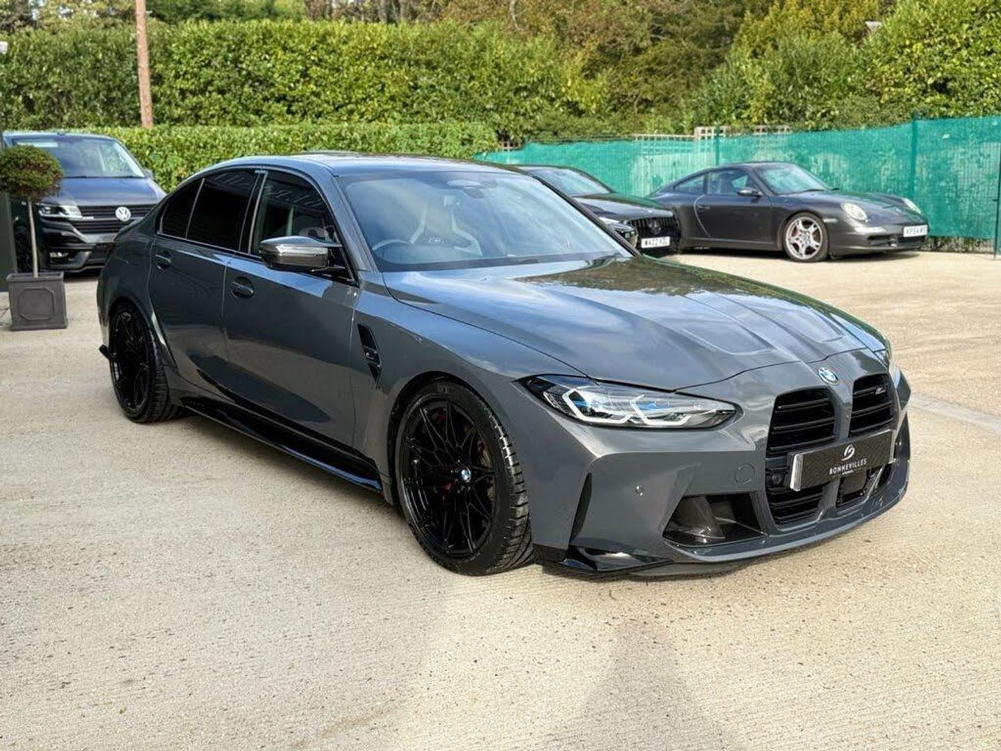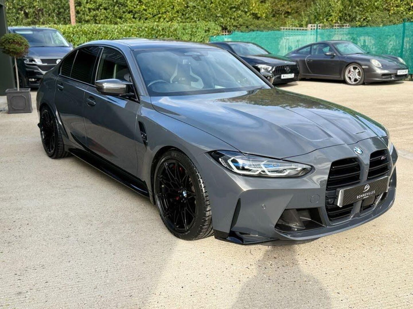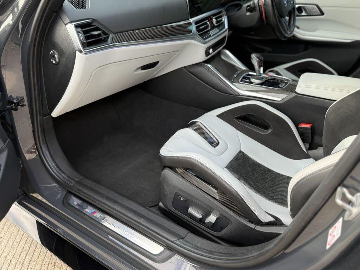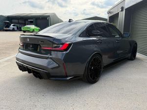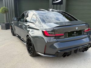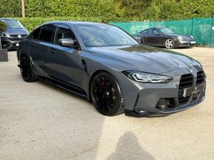A stunning 1 previous owner BMW M3 Competition in Dravit Grey complementing Black/Silverstone Carbon Bucket Seats. with a stunning & Full BMW service history just serviced at BMW this week & also complements 4 Brand new Michelin PS4'S tyres. Huge Extras list to include: Ultimate Pack, Head up display (HUD), Laser lights, heated steering wheel, Harmon Kardon speaker upgrade, Reversing & 360 Camera, Carbon Fibre interior trim, Carbon exterior pack, Keyless entry, Power tailgate, Sun protection glass and electric carbon power folding Mirrors. etc etc....We welcome Part Exchange, making it convenient for you to upgrade your vehicle. Additionally, our website features an intuitive finance calculator to help you explore your financing options. For complete information, Please give us a call and we'll be delighted to provide you with all the details you need.