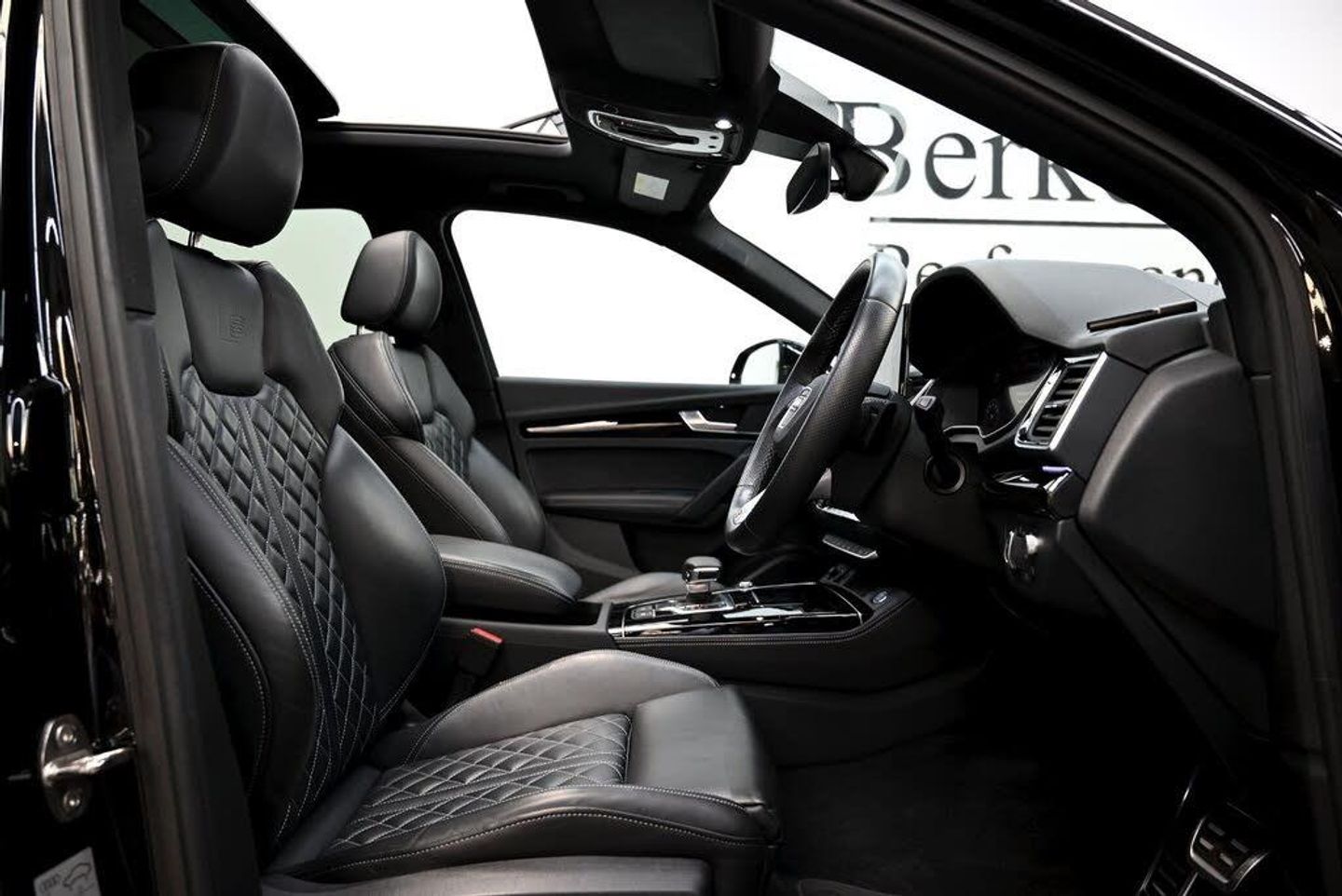 We are pleased to present this stunning Audi Q5 2.0 TFSI 45 Vorsprung finished in Mythos Black Metallic with Black Leather interior. This particular example benefits from a full Audi service history and Audi manufacturer warranty till 11/04/2026. The car also benefits from an exterior Maxton Design Styling kit finished in High Gloss Black. This example being the Vorsprung model comes loaded with a host of features including:Glass Panoramic sunroofBang & Olufsen sound system21in Alloy Wheels - 8.5J 5-Twin Spoke - Module Design with Inlays in Matt Grey - Audi SportHead up displayAmbient LightingHeated front and rear seatsMassage Function for Front Seats with Lumbar SupportAdaptive Air suspensionFront and Rear Parking sensors with surround camerasAdaptive Cruise Control With Distance Control 360 Degree CameraElectrically Adjustable Front Seats with Memory Function for Drivers SideApple/Android car play and much more.This vehicle has Audi Manufacturer's warranty till 10/04/2026.Finance available from 7.9%apr subject to statusAll viewings by appointment onlyVisit www.berkeleyperofrmance.co.uk for further details.-Panroof+B&O+Maxton Styling