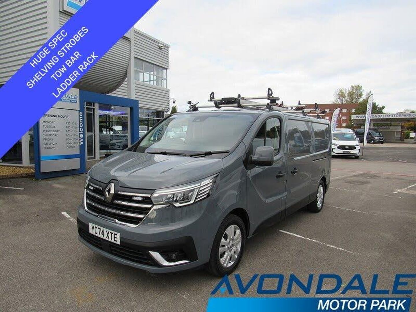 HIGH SPECIFICATION, RENAULT TRAFIC LONG WHEEL BASE PANEL VAN EQUIPPED WITH THE EURO 6; 130 BHP ENGINE, AIR CON, CRUISE CONTROL, PROFESSIONAL LADDER RACKING SYSTEM, PROFESSIONAL SHELVING UNITS, LED LIGHTS ON ROOF AND MOUNTED IN GRILL, DAB RADIO, 3 FRONT SEATS- READY FOR WORK- MANUFACTURERS NATIONWIDE WARRANTY UPTO SEPTEMBER 2027- THE UK'S VAN SUPERSTORE, WITH OVER 200 VEHICLES IN STOCK, ON ONE SITE-- FREE DELIVERY UPTO 200 MILES FROM OUR DEALERSHIP- 12 MONTH WARRANTY- 12 MONTH BREAKDOWN COVER- LOW FINANCE OPTIONS INCLUDING HP WITH BALLOON PRODUCTS- APPLY ON OUR WEBSITE- RAC'S LARGEST APPROVED COMMERCIAL RETAILERTHIS MONTH SPECIAL ONLY*01633 444 999