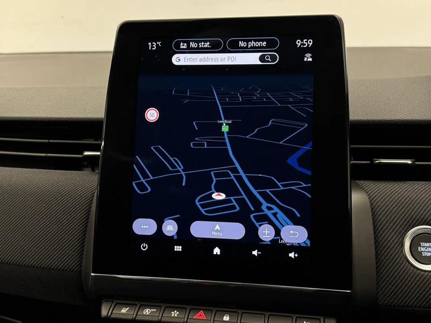10" customisable digital driver display,Active cruise control with stop and go + speed limiter,Apple car play/Android Auto,Blind spot warning,Driver attention warning,Easy link 9.3" touchscreen with built in navigation + Wifi smartphone integration plus,Eco mode driving function,Emergency call system,Front park assist,Front parking sensors,Lane departure prevention,Lane departure warning system,Lane keep assist,Multisense 3 driving modes including ambient lighting,Over speed prevention,PAS,Rear cross traffic alert,Rear park assist,Rear parking sensors,Rear view camera,Saftey shield [button for personalisation configuration of key ADAS features],Start/stop system,Traffic sign recognition,Wireless phone charger,2 USB ports,Arkamys speakers - x6 inc. 2 boomer, 2 tweeter and 2 bicone,Bluetooth, 1x jack, 1x aux socket,DAB/FM Radio,Automatic headlights,Automatic high / low beam,Automatic windscreen wipers,Black auto folding wing mirrors with defrosting and temperature gauge and LED indicator,Body colour bumpers,Body colour door handles,Electric rear windows,Electrically adjustable door mirrors,Electrochromatic frameless rear view mirror with light and rain sensor,Exhaust pipe,Exterior rear hidden door handles,Front and rear LED roof light x 2,Front fog lights,Full LED front and rear headlamps integrating daytime running lights at the front and rear,Heated rear windscreen,LED rear signature lighting,LED third brake light,Matte shadow grey F1 blade,One touch electric front windows,Rear brake light,Rear side wing doors,Rear wiper,Shadow grey insert on lower side doors,Shadow grey side window surrounds,Shadow grey upper grille,Shark fin antenna,Tinted rear windows,3 rear height adjustable headrests,3 seat bench in 2nd row,60/40 split and fixed base rear seat bench,Aluminium pedals,Automatic air conditioning,Black armrests in door panel,Centre console armrest,Fabric seat with synthetic leather detailing upholstery,Floating console with storage,Heated front seats,Heated steering wheel,Height adjustable front headrests,Isofix system on outer rear seats,Mechanical height adjustable front seats,Power supply jack,Single front passenger seat,Sun visor without light,Top grain synthetic leather steering wheel with blue stitching,3 point seatbelts on all rear seats,ABS,Active emergency braking system - Urban and pedestrian/cyclist,Automatic emergency braking system with emergency brake assist,Child locks on rear doors,Curtain airbags,Distance warning alert,Driver and passenger airbags,Electronic brake force distribution,Electronic parking brake with auto hold,ESC (Electronic Stability Control),Front passenger airbag deactivation,Front side airbags,Height adjustable passenger seatbelt,Hill start assist,Seatbelt reminder,Tyre pressure monitor,2x Black keys,Hands free key card with push button, start and stop function,RAID (Renault Anti-Intruder Device) automatic door locking,Superlocking,Dark interior roof trim,17" Esprit alpine diamond cut alloy wheels,Tyre repair kit,Diamond Black,espirit Alpine Fabric with Synthetic Leather- Blue Stitching