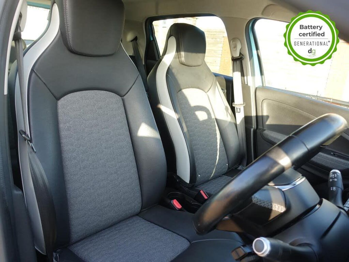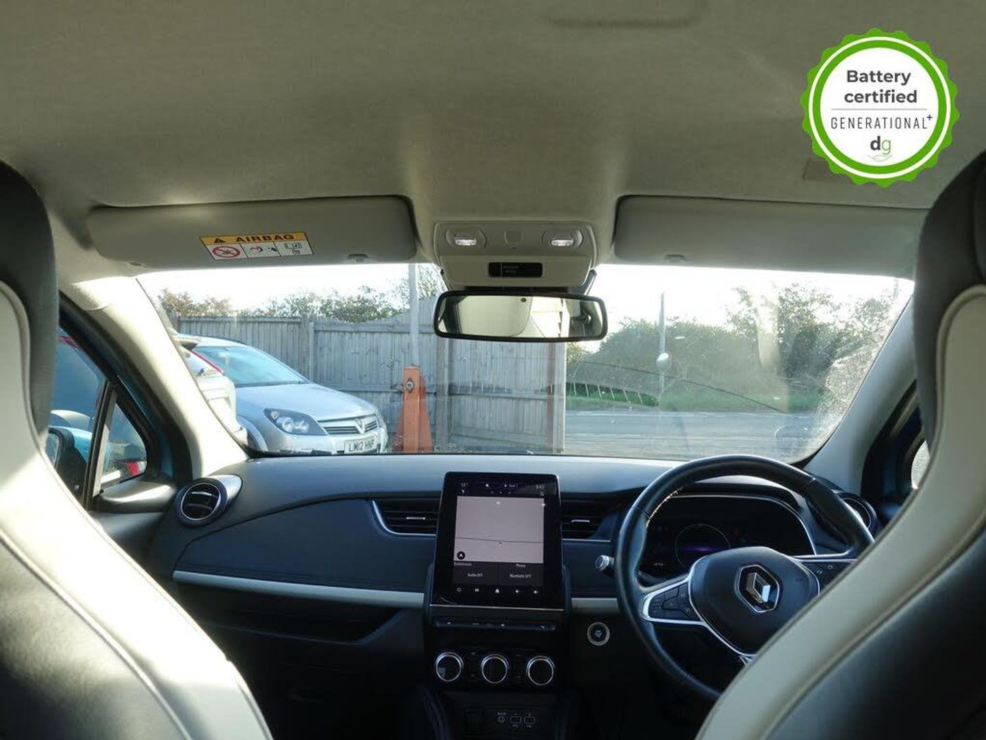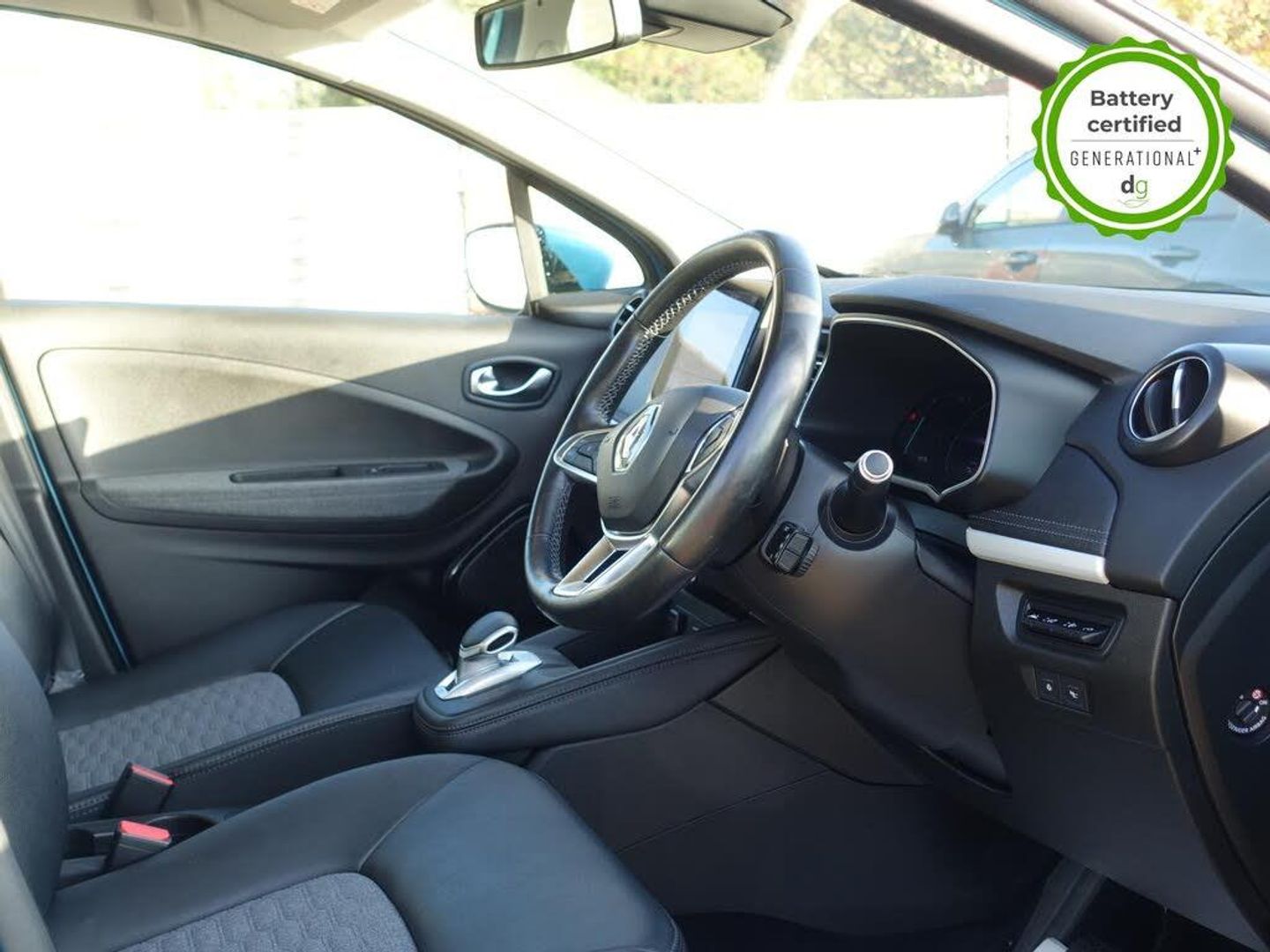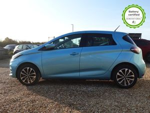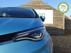 Grey interior.OVER £700 OF OPTIONAL EXTRAS! This particular Zoe is in excellent condition and fully prepared to our high standard, has 2 keys, one previous owner, 4 prior services, and it will be September 2026 until its next service and 30/03/2026 until its MOT is due. The 50kWh Renault Zoe has approx. 200-220 miles of driving range, depending on your driving style and time of year, and comes standard with LED headlights, an electronic handbrake and rear sweeping indicators. The particular car comes with the optional heated seats and steering when plus the rapid charge feature, which means you can charge about 100 miles of range back into the car in a 30 minute charging stop. The GT LINE trim level includes some great spec, including automatic lights and wipers, cruise control, front fog lights keyless entry, 9.3' infotainment screen with SAT NAV, front and rear parking sensors and a reversing camera and stylish diamond cut alloys. If you are after a great value EV with 200+ miles of driving range and plenty of style and spec this could be the perfect EV for you. Unlike Car Supermarkets we have no hidden admin fees, there is no pressure selling, and we offer low finance rates. We also perform battery health checks on all our vehicles, so you can have the comfort of knowing the battery state of health of the EV you choose. Hopefully you will choose to buy your EV from Drive Green, as we are a multi award winning EV specialist and sustainable business, here to help you get the most from your switch to electric driving. Contact us to book an appointment to view and test drive this car, or to find out more about switching to electric driving, and to discuss purchase options, including buying on finance, and our remote buying and delivery service. We are also able to supply your home charge point also, making the switch to electric driving super easy for you. Drive Green is a true EV specialist and the UKs biggest electric car only dealership, since 2017. FORECOURT VISITS AND TEST DRIVES BY APPOINTMENT ONLY. - Celadon Blue - Part Leather - Part Synthetic Leather - Black