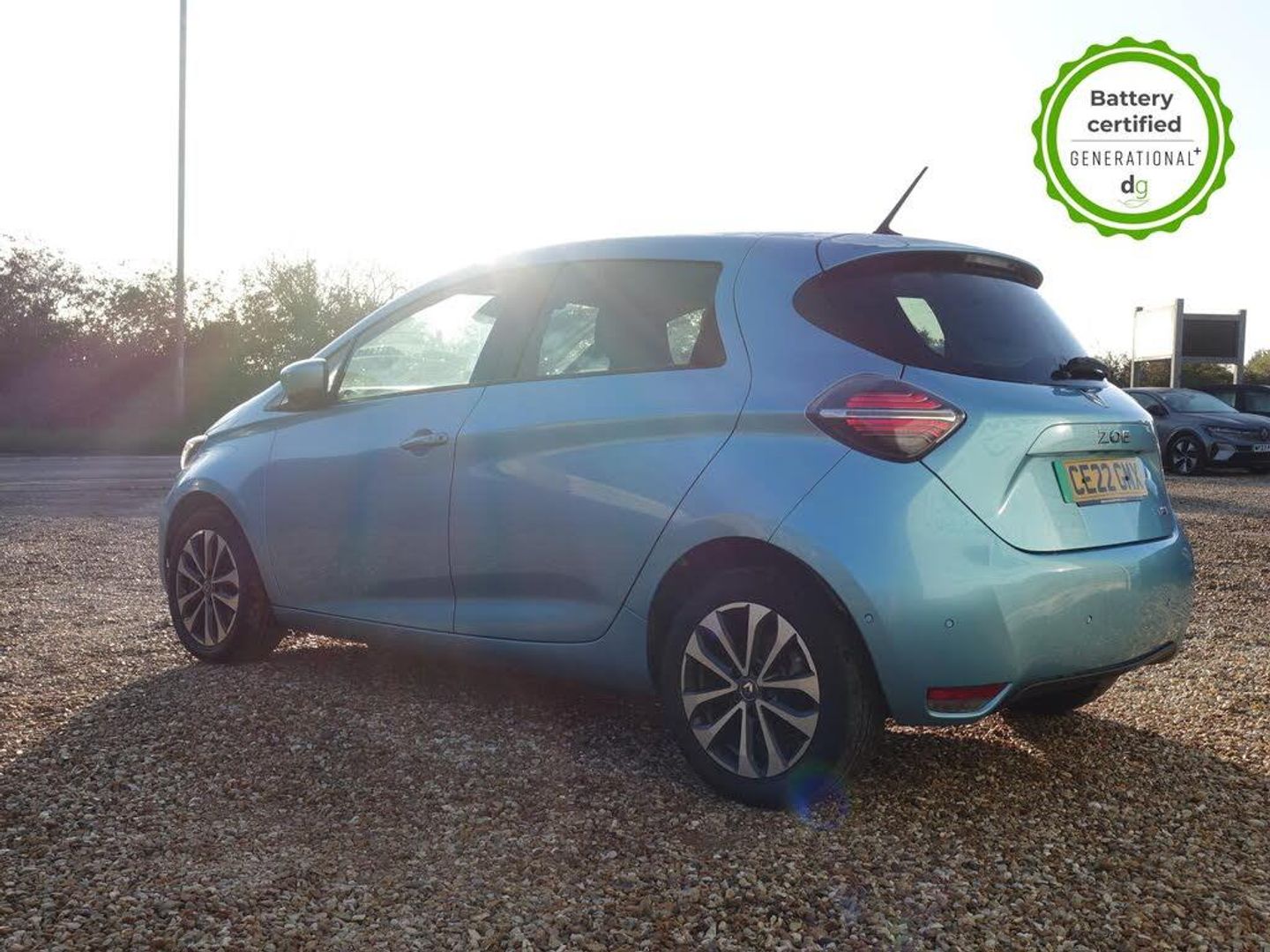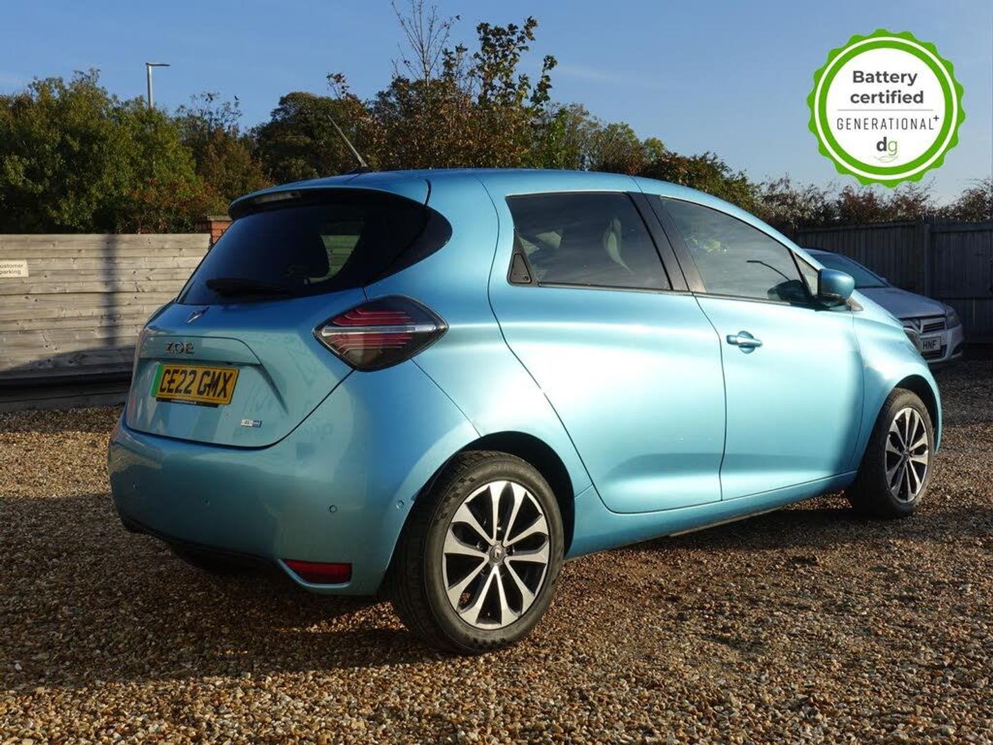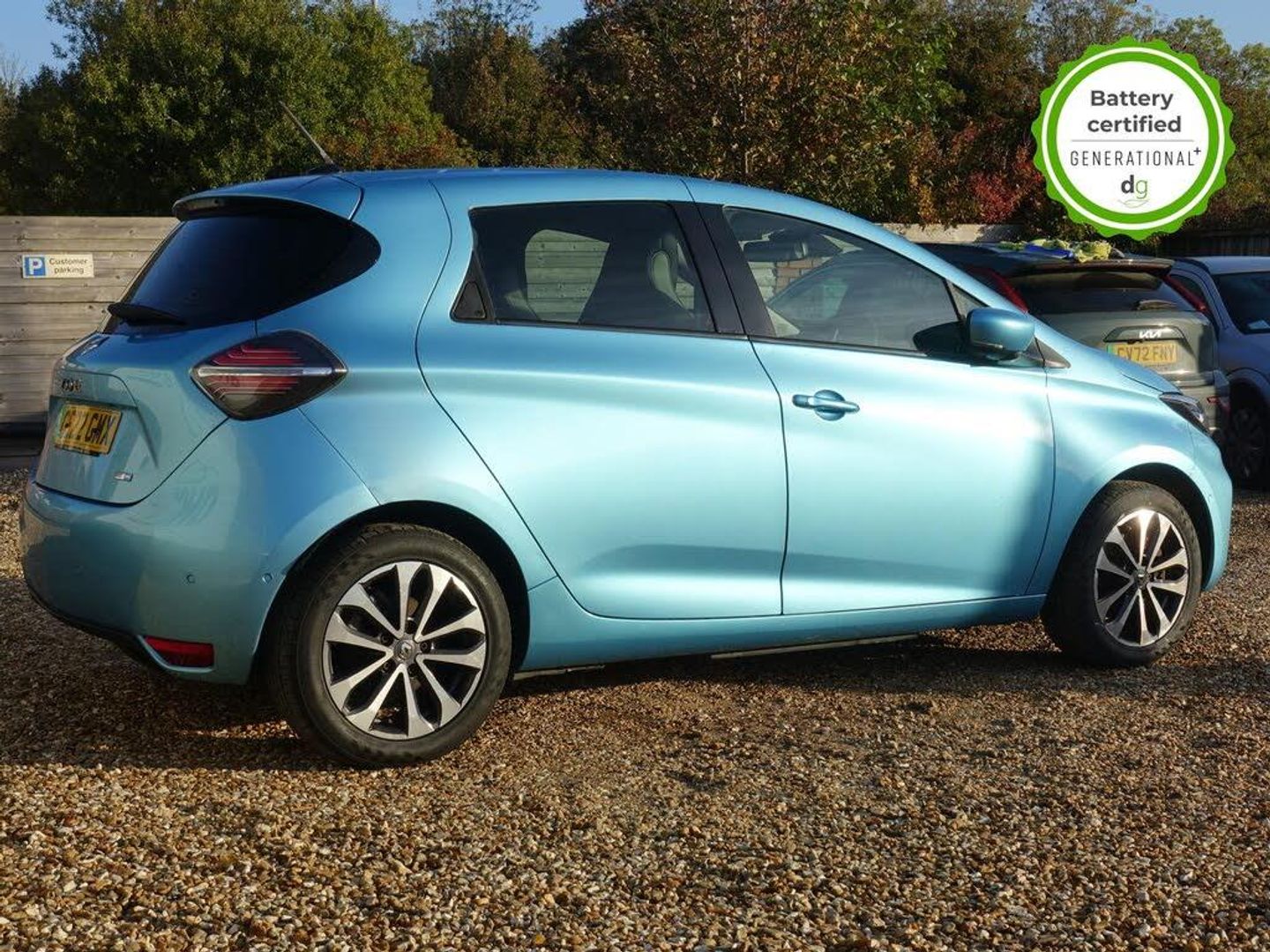 Grey interior.OVER £700 OF OPTIONAL EXTRAS! This particular Zoe is in excellent condition and fully prepared to our high standard, has 2 keys, one previous owner, 4 prior services, and it will be September 2026 until its next service and 30/03/2026 until its MOT is due. The 50kWh Renault Zoe has approx. 200-220 miles of driving range, depending on your driving style and time of year, and comes standard with LED headlights, an electronic handbrake and rear sweeping indicators. The particular car comes with the optional heated seats and steering when plus the rapid charge feature, which means you can charge about 100 miles of range back into the car in a 30 minute charging stop. The GT LINE trim level includes some great spec, including automatic lights and wipers, cruise control, front fog lights keyless entry, 9.3' infotainment screen with SAT NAV, front and rear parking sensors and a reversing camera and stylish diamond cut alloys. If you are after a great value EV with 200+ miles of driving range and plenty of style and spec this could be the perfect EV for you. Unlike Car Supermarkets we have no hidden admin fees, there is no pressure selling, and we offer low finance rates. We also perform battery health checks on all our vehicles, so you can have the comfort of knowing the battery state of health of the EV you choose. Hopefully you will choose to buy your EV from Drive Green, as we are a multi award winning EV specialist and sustainable business, here to help you get the most from your switch to electric driving. Contact us to book an appointment to view and test drive this car, or to find out more about switching to electric driving, and to discuss purchase options, including buying on finance, and our remote buying and delivery service. We are also able to supply your home charge point also, making the switch to electric driving super easy for you. Drive Green is a true EV specialist and the UKs biggest electric car only dealership, since 2017. FORECOURT VISITS AND TEST DRIVES BY APPOINTMENT ONLY. - Celadon Blue - Part Leather - Part Synthetic Leather - Black