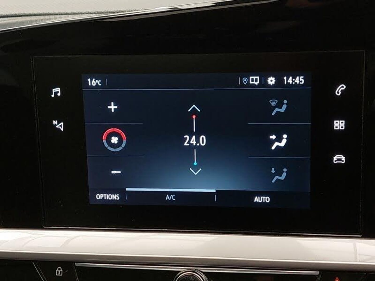 Panoramic rear view camera, Speed sign recognition, Vauxhall connect with e-Call, Rear parking distance sensors, Front camera system, Steering wheel mounted controls, Mobile phone portal - bluetooth connect, vehicle microphone, handsfree calls, SMS read out and reply, phone book access, LED daytime running lights, Electrically operated front and rear windows with safety auto reverse and one touch up/down facility, Electrically adjustable and heated door mirrors, Heated front seats, Tyre pressure monitoring system, Hill start assist, 17" bi colour alloy wheels