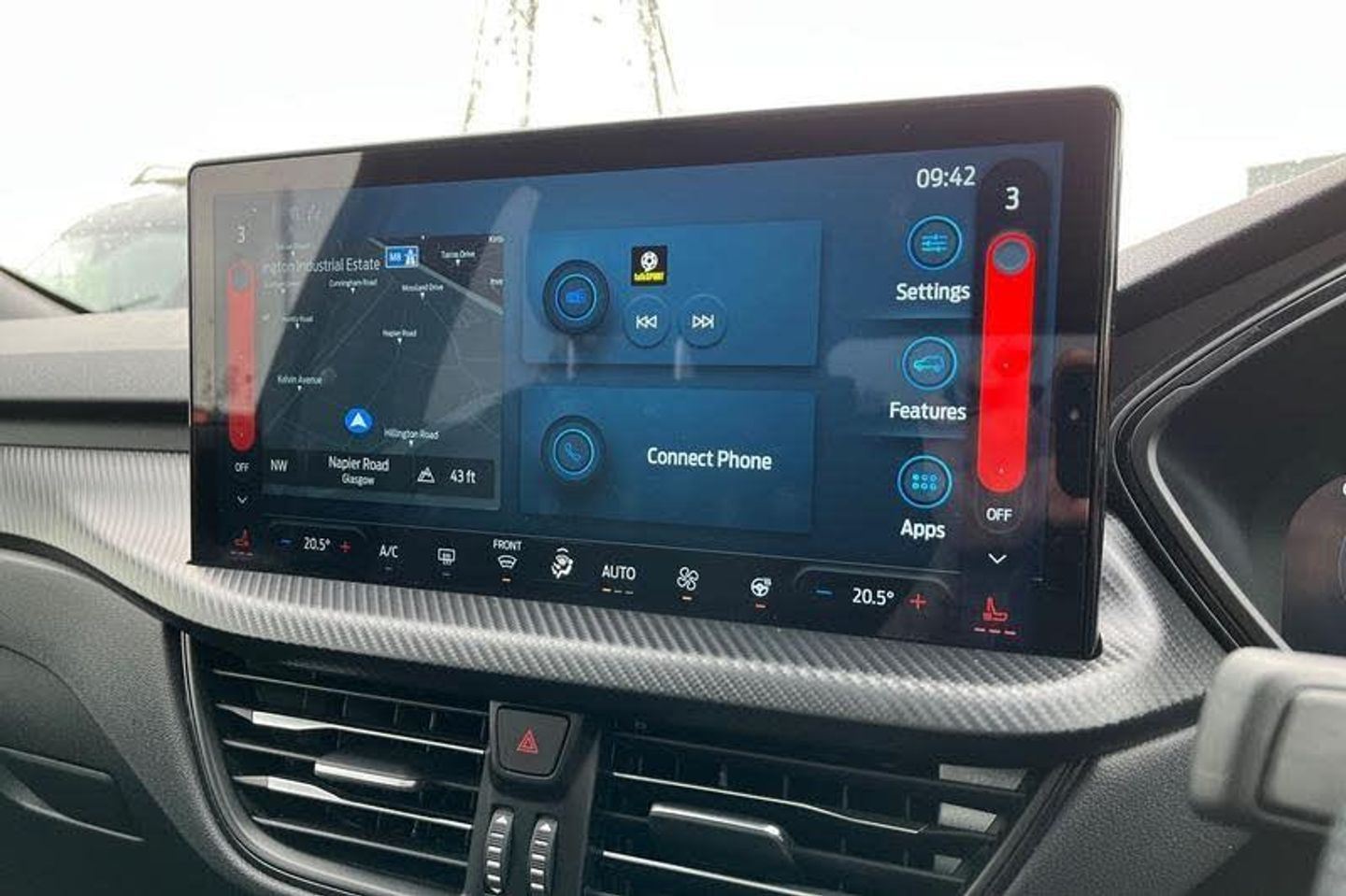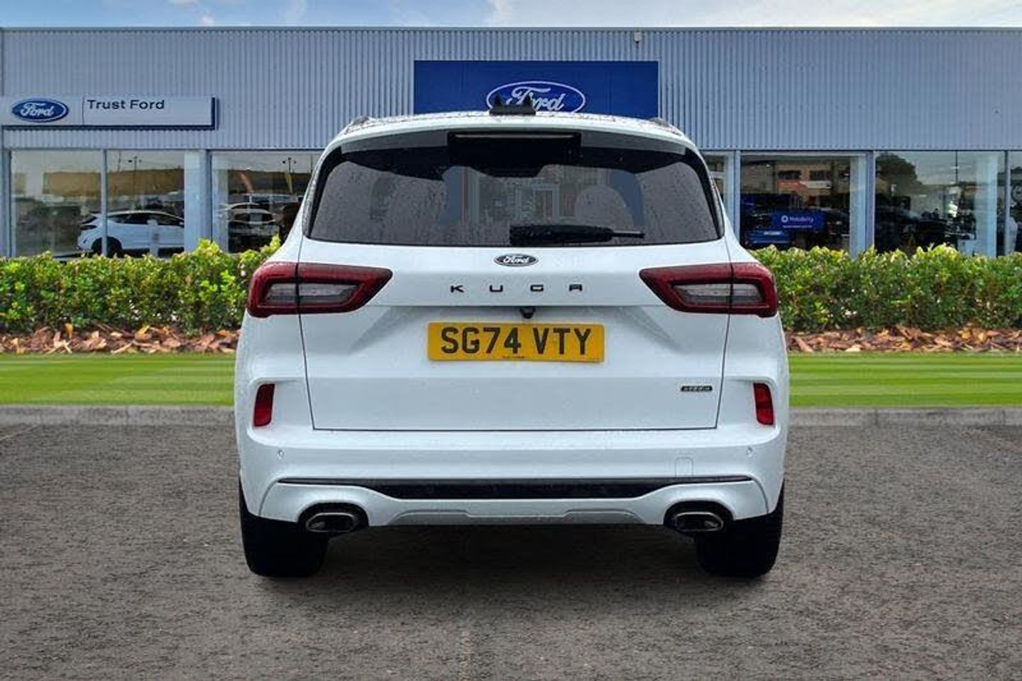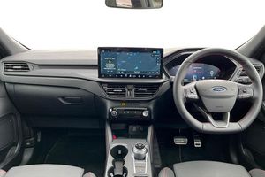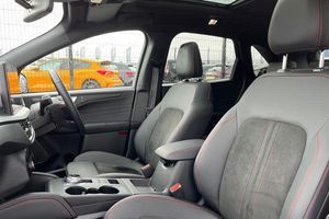 12-Way Ergonomic Power Adjust Driver's and Passenger's Seat, 12V Power Point in Floor Console, 12v Power Point in Cargo Area, 12v Socket - Voltage Regulator, 19in Alloy Wheels - ST-Line- Ebony Black - Machined Finish, 2nd Row Sliding Seats, 360 Degree Camera, ABS - Anti-lock Braking System, Acoustic Vehicle Alert System - AVAS, Adaptive Cruise Control, Air Conditioning - Electronic Automatic Temperature Control - EATC, Airbag - Driver and Front Passenger Side, Airbag - Front Passenger Deactivation Switch, Airbags - Driver and Front Passenger, Airbags - Front and Rear Side Curtain, Aluminium - Finish Front Scuff Plates with ST-Line Script, Aluminium Foot Pedals - ST-Line Design, Ambient Lighting, Auto Dimming Rear View Mirror, Auto Wipers, Automatic Door Relocking, Black Roof Rails, Centre Console with Electronic Parking Brake, Child Locks - Manual on Rear Doors, Cross Traffic Alert, Digital Colour 12.3in Instrument Cluster, Driver Assistance Pack, Driver and Passengers Sun Visor with Illumination, Dual Exhaust Tailpipes with Unique Brushed Stainless Steel Finish, EPAS - Electric Power Assisted Steering, Electric Parking Brake with Auto Hold, Electrical Charging Point in Second Row, Engine Immobiliser - SecuriLock, Enhanced Electronic Stability Control - ESC with Traction Control - Emergency Brake Assist - EBA - Hill Start Assist - HSA and Trailer Sway Control, Exterior Door Handles - Body Coloured, Ford Easy Fuel System, Ford Keyfree System - Keyless Entry with Ford Power Starter Button, Ford SYNC 4 Navigation, Front Seats - 2-Way Manual Height Adjust Passive Head Restraints, Front Seats - Drivers and Passengers Seatback Map Pockets, Front Seats - Sports Style V-shape with High Bolster, Front Windows - Laminated Glass, Front and Rear Bumper - Sporty Body Colour with Rear Ebony High-Gloss Insert, Front and Rear Floor Mats with Red Stitching, Front and Rear Parking Sensors, Full LED Headlamps, Gearshift - Automatic - Electronic Rotary Gearshift Dial, Glovebox Lights, Handsfree Power Tailgate, Headlights - Automatic Follow Me Home Lighting, Headlights - Automatic High Beam Assist, Headlights - Levelling System - Manual, Headlights - Unique Bending, Headliner - Sports Dark, Heated and Power Folding Door Mirrors - Puddle Lights - Memory Function - Camera, High-Mounted Brake Light, Kuga Badge, LED Daytime Running Lights, LED Fog Lights - Front, Lane Keeping Aid with Lane Departure Warning, Large Rear Spoiler, Load Compartment - Lights, Load Compartment - Tie Down Hooks, Load Compartment Carpet, Locking Wheel Nuts, Lower Bodyside Moulding - Body Colour, Lower Door Frame Beltline - Black, Mini Overhead Console with Sunglasses Holder Bin, MyKey, Pop-Out Door Edge Protectors, Power Door Deadlocks - Double Locking, Power Door Locks, Power Opening Panoramic Roof, Pre-Collision Assist with Autonomous Emergency Braking, Quickclear Heated Windscreen, Rear Duct on B-Pillar, Rear Lights - LED, Rear Privacy Glass, Rear Seat - 60-40 Split Folding Seats, Rear Seat Centre Head Restraint, Rear Seats - 2-Way Head Restraint Up-Down, Rear Seats - Folding Centre Armrest with Integrated Cup Holder, Rear Seats - Sliding Seat Adjust Tracks - Fore-Aft, Red Brake Calipers, Remote Tailgate Release, Removable Package Tray, Rocker Panel Mouldings - Body Colour - ST-Line Design, ST-Line Badge on Left and Right Side Wings, ST-Line Bodystyling Kit, ST-Line Front and Rear Bumper Moulding - Body Colour, Seat Belt - Drivers - Front Passenger and Rear Seat Belt Reminder Alert, Seat Belts - Front 3-Point Seatbelts with Load Limiter, Seat Belts - Front Height Adjustable, Seat Belts - Rear Retractable Rear Belt - 3-Point All Positions, Seats - ISOFIX Mounting Provision for Child Seats - Outer Seats Only, Selectable Drive Modes, Single Rear Fog Light, Standard Home Charging Cable - 3-Pin Domestic Socket 230V, Steering Column - Locking Electric, Steering Column - Rake and Reach Adjustment, Steering Wheel - ST-Line Sports-Style Perforated Sensico-Trimmed with Red Stitchin