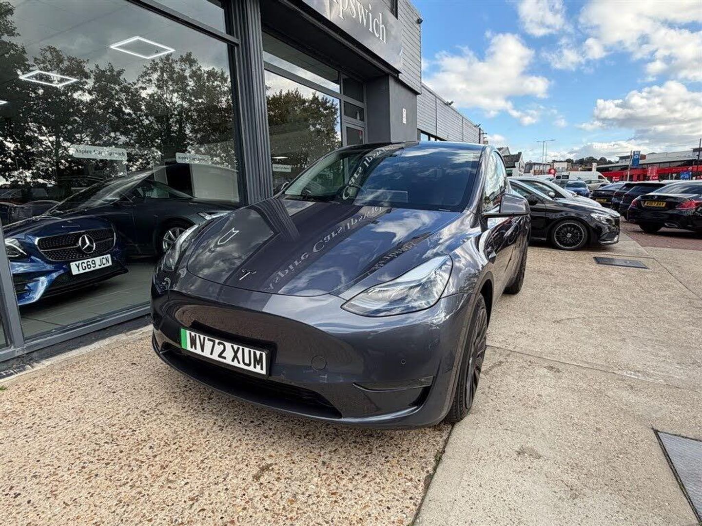 Monthly Payment 315, 6.9% APR Representative only !! 2022 Tesla Model Y Long Range | Panoramic glass roof | Reversing Camera | Adaptive Cruise Control |Black Leather Trim | Premium Audio | 19in Alloy Wheels - Gemini in Black | Wireless Phone Charging |Ambient Interior Lighting | 1 Previous owner HPI Certificate Supplied | ULEZ Vehicle | Finance Available From 6.9% APR Representative | We give you a Peace of mind 6 months warranty ( Nationwide warranty ) ( Extended warranty available up to 3 years | Part exchanges considered | Drive Away insurance | FINANCE INFORMATION PLEASE SEE OUR WEBSITE www.aspirecarsipswichltd.co.uk | VAT Qualifying | Tinted Glass Roof |Long Range, 331 miles.. Full service history | One Owner | Finance Available From 6.9% APR Representative Four Wheel Drive drivetrain. With an 85 kWh battery, this Model Y boasts an impressive maximum range of 331 miles when new, making it ideal for both daily commutes and longer journeys. Charging is convenient, taking approximately 12 hours at home using a 7kW charger, while rapid public charging can replenish the battery from empty to 80% in just 25 minutes. Inside, you'll find a host of premium features, including heated rear seats, an expansive glass roof with UV and infrared protection, blind spot monitoring for enhanced safety, a heated steering wheel for comfort in colder weather, and bright LED headlights.