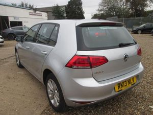 A GREAT LOOKING VW GOLF TDI BLUEMOTION SE EDITION FINISHED IN REFLEX SILVER METALLIC WITH FACTORY ALLOYS! JUST TWO FORMER KEEPERS COMPLETE WITH A SERVICE RECORD INCLUDING ORIGINAL TWO KEYS. **** JUST £20 CAR TAX PER YEAR *** FEATURES INCLUDE COLD BLOWING AIR CONDITIONING, BLUETOOTH CONNECTIVITY, CRUISE CONTROL, RADIO-CD-AUX-USB, MEDIA CONNECTIVITY, DAB DIGITAL RADIO, CENTRE ARM REST, 4 X ELECTRIC WINDOWS, ELECTRIC WINTER HEATED DOOR MIRRORS, STEERING WHEEL AUDIO CONTROLS, VARIABLE DRIVING MODES! A LOVELY CLEAN BRIGHT GENUINE CAR THAT DRIVES SUPERB. SUPPLIED FULLY SERVICED WITH A FULL YEARS MOT. FINANCE AVAILABLE AT COMPETITIVE RATES. CREDIT CARDS ACCEPTED. PART EXCHANGE WELCOME. NO PRESSURE NO HASSLE SALES STAFF. OVER 60 YEARS COMBINED MOTOR TRADE EXPERIENCE. ALL CARS HPI SAFETY CHECKED. SUCCESSFULLY TRADING FOR OVER 25 YEARS. FIND US ON FACEBOOK AND LIKE OUR PAGE. FOCUS CAR SALES 01284 850756.