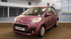 Peugeot 107 1.0 Active 5dr Hatchback.. Registered - December 2013 (63-reg).. 24,000 miles.. Service history.. Just serviced - October 2025.. MOT - October 2026.. 1 year MOT (no advisories).. 1 lady owner from new.. 2 x keys.. Grade 1 immaculate condition inside and out (as new).. Air conditioning.. Factory fitted CD player with AUX input.. Power assisted steering.. ABS.. Alarm / central locking.. Electric windows.. ISO-FIX child seat anchor points.. Full size spare wheel with tool kit.. HPI clear with print-out.. Full detailed valet has been carried out.. Stunning example in pristine condition - finished in the desired Mauve Purple colour.. Ideal first car or little hatchback - with a super low mileage and extremely low running costs.. Only 20 per year road tax.. Low insurance group.. 65+ MPG..