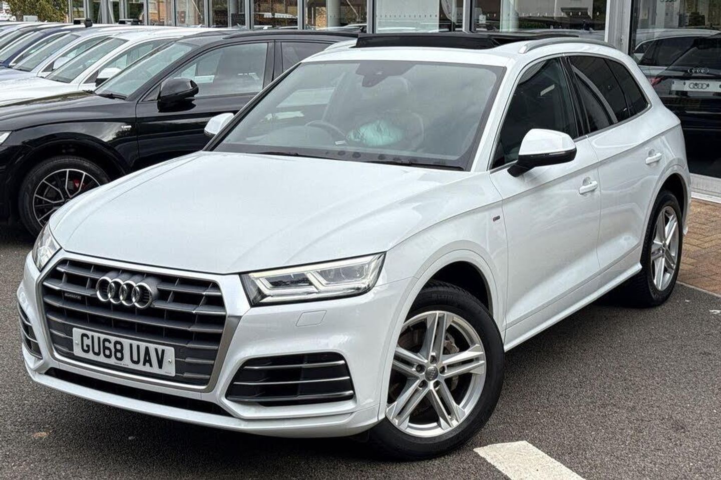 19in Alloy Wheels - 5-Twin-Spoke Star Design - Diamond Cut Finish, 2 x SDXC Card Readers, 2 x USB Charging Ports and 1 x AUX-IN, 4-Way Electric Lumbar Support, 6-Airbag System, Aluminium Roof Rails, Anti Theft Locking Wheel Bolts, Anti-Theft Alarm, Audi Connect Infotainment Services - 3 Month Trial, Audi Connect Safety and Service - e-call, Audi Drive Select, Audi Parking System Plus, Audi Pre-Sense City, Audi Smartphone Interface, Audi Sound System, Auto-Dimming Rear-View Mirror, Automatic Headlight Adjustment, Bluetooth Interface, Body Coloured Door Mirrors, CD Drive, Cloth Headlining in Black, Colour Drivers Information System with 7in Display, Contrast Stitching on Seats - Steering Wheel and Gear Lever Gaiter, Cruise Control with Speed Limiter, DAB Digital Radio, Deluxe 3-Zone Climate Control, Door Mirrors - Electrically Adjustable and Heated with Integrated LED Side Indicators, Dynamic Suspension, ESC - Electronic Stabilisation Control inc ABS - ASR and EDL, Electric Boot Lid Release, Electric Windows - Front and Rear, Electromechanical Parking Brake, Electromechanical Power Steering, Email - Calendar and Text Messages can be Displayed on your Vehicles MMI, First Aid Kit and Warning Triangle, Front Centre Armrest, Front Sports Seats with S Embossed Logo, Front and Rear Floor Mats, Gear Lever Knob in Black Perforated Leather, Heated Front Seats, High Multi-function 3-Spoke Leather Steering Wheel with Grips in Perforated Leather and S Badging with Gear-Shift Paddles, High-Gloss Package, Hill Descent Control, Hill Hold Assist, ISOFIX Child Seat Mounting and Top Tether, Illuminated Door Sill Trims with S Logo, Inlays - Matt Brushed Aluminium, Keyless Go, LED Headlights with LED Rear Lights and Dynamic Rear Indicators, LED Interior Lighting Pack, LED Rear Lights, Light and Rain Sensor, MMI Navigation - SD Card Based, MMI Radio Plus with 7in Colour MMI Screen and MMI Controller, Manual Seat Adjustment, Pedals in Stainless Steel, Pop-Up Bonnet for Pedestrian Protection, Power Operated Tailgate, Privacy Glass with Acoustic Glazing For Front Windows, Radiator Grille in Twilight Grey with Horizontal Matt Aluminium Struts, Rear Diffuser in Body Colour with Matt Aluminium Silver Surrounds, Remote Central Locking, Removable Luggage Compartment Floor, Removable Net Partition, S Line Badges on the Front Wing Panels, S Line Front and Rear Bumpers, S Line Roof Spoiler, S Line Side Skirts, Seat Belt Monitoring, Side and Rear Windows in Heat-Insulating Glass, Split Folding Rear Seat Bench - 40-20-40 with Rear Seat Armrest, Stainless Steel Loading Sill Protector, Tool Kit and Car Jack, Tow Bar Preparation, Tyre Pressure Warning Light, Tyre Repair Kit, Underbody Protection in Body Colour, Voice Control System, Windscreen with Acoustic Glass, quattro On Demand, Glacier White, Technology Package, Audi Phone Box with Wireless Charging, Inlays - Piano Finish - Black, Panoramic Glass Sunroof, Door Mirrors - Folding with Auto-Dimming and Memory Function