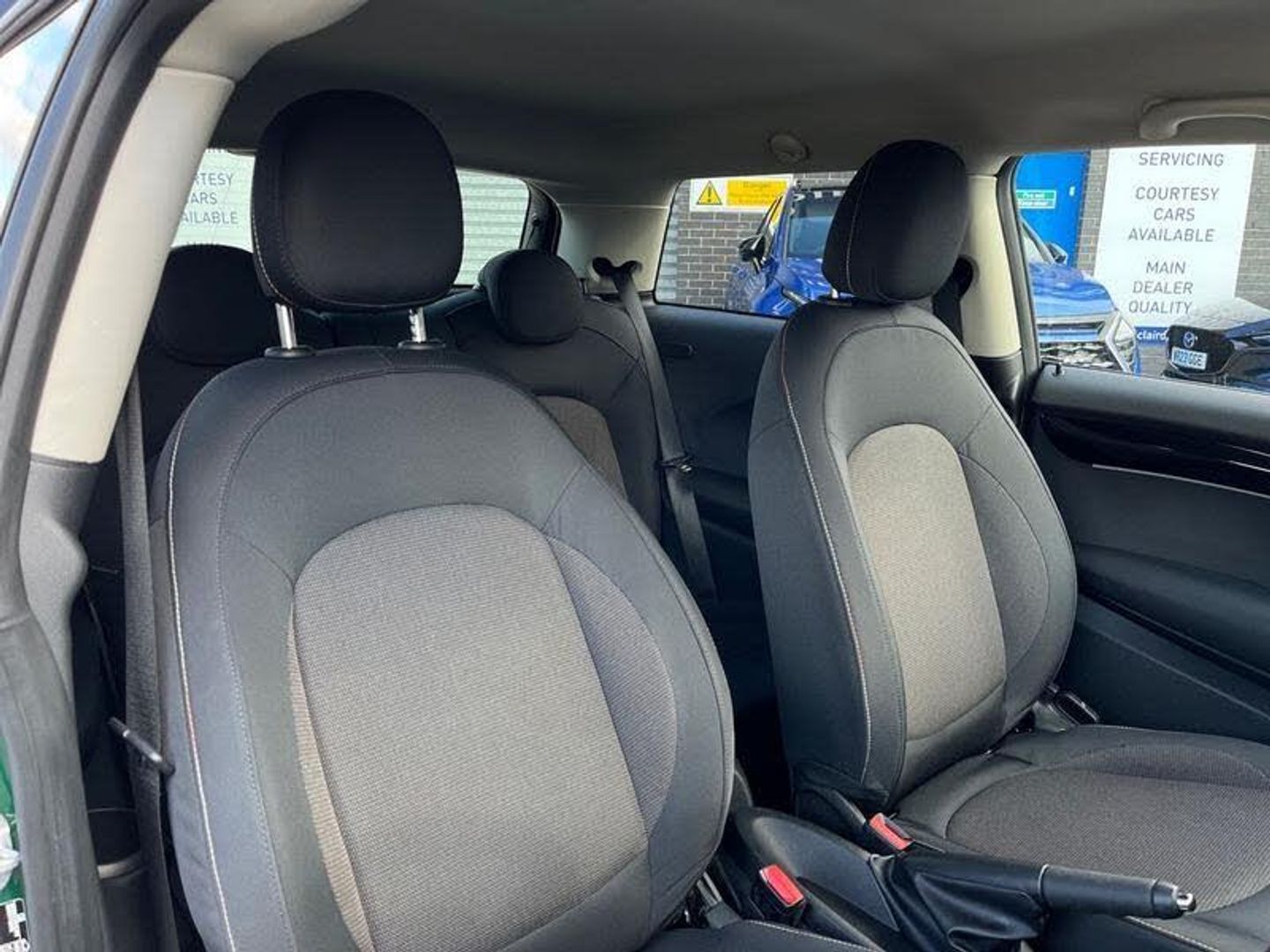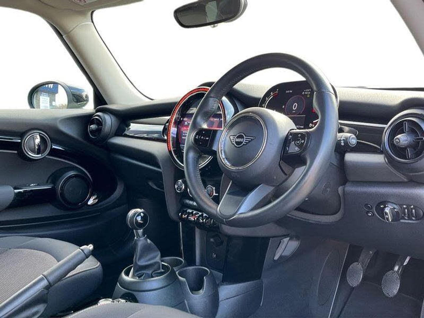 [DriverConvenience]Sunvisors with vanity mirrorsApple CarPlay, Automatic start/stop function with brake energy recuperation, Compatible mobile phone bluetooth with audio streaming, Cruise control with brake assist, Electro-mechanical speed dependant steering assistance, Flexible car sharing preparation, Instrument cluster, Mini E-call, MINI TeleServices, On board computer, [Exterior]3rd brake light, Automatic headlight activation switch, Body colour fuel filler cap, Chrome border high gloss black slats radiator grille, Dynamic brake lights, Electric front windows, Exhaust tailpipe on left with chrome finisher, Heated rear window, Heated windscreen washer jets, LED headlight with closed ring and daytime driving lights, Metal door sill strips with MINI imprint, Model logo Cooper on right of tailgate, Rain sensor window wipers, Rear fog lights, Rear LED lights with union jack design, Rear window wiper, Side scuttle panel with integrated indicator, Sun/heat protection glass, [Interior]White indicator lenses12V Accessory socket in centre console, 2 seat bench in 2nd row, 4 lashing eyes in luggage compartment, 60/40 split folding rear seat, Ambient lighting, Carbon black colour line - Knee roll and door armrest, Chrome interior highlights, Cupholders, Front and rear head restraints, Front and rear isofix with front passenger airbag deactivation, Front floor mats in velour, Glove compartment, Height and length steering column adjustment, Interior lighting with 12 different colours across the dashboard, underneath door bezel with illuminated laser-engraved design on central display, Leatherette gearshift lever and handbrake gaiters, LED reading lights, vanity mirror lights, front foot well light and spotlight on front seats, Manual air conditioning, Mechanical seat adjustment - forward/back & backrest for front seats and driver seat height adjust, Multifunction steering wheel, Passenger seat height adjuster, Satellite grey headlining including grab handles and clothes hooks, Single front passenger seat, Sport leather steering wheel with speed limiter and audio/communication controls, Storage compartments in doors, [Safety]Service interval indicator3 point seatbelts on all four seats, 6 Airbags - front, side, head and seat belt tensioners, Anti-lock braking system (ABS), DSC - Dynamic Stability Control, Front and rear disc brakes, Single tone fanfare horn, [Security]Tyre pressure monitoring systemAlarm system with tilt sensor, monitoring doors, bonnet interior and tailgate, Electronic vehicle immobiliser, Start/stop toggle with keyless go