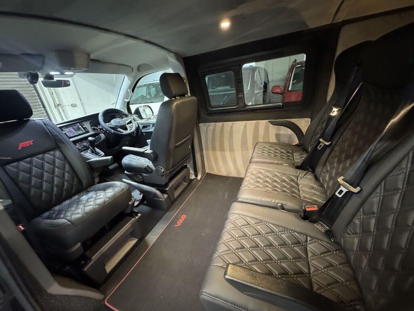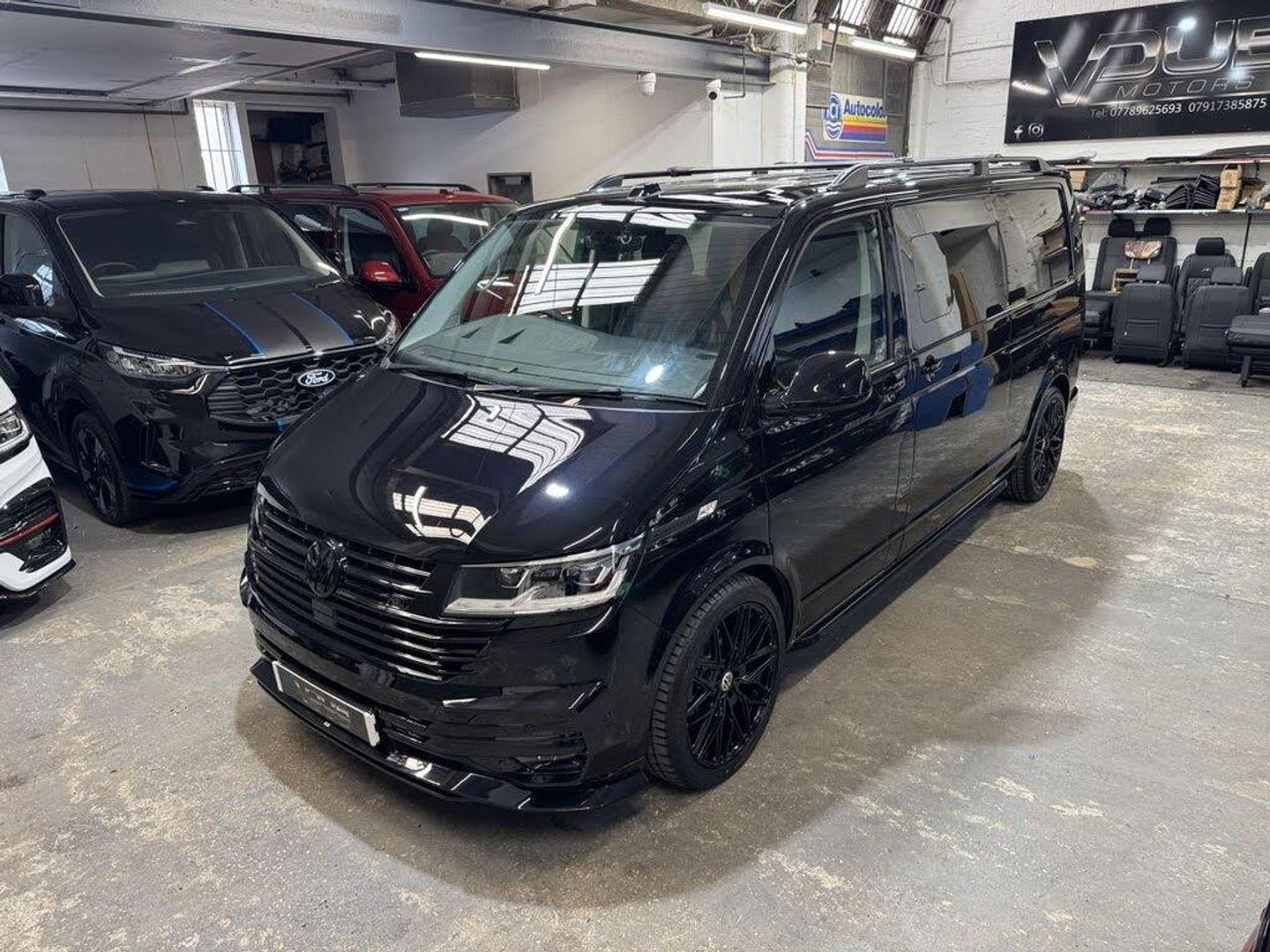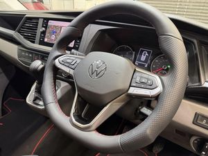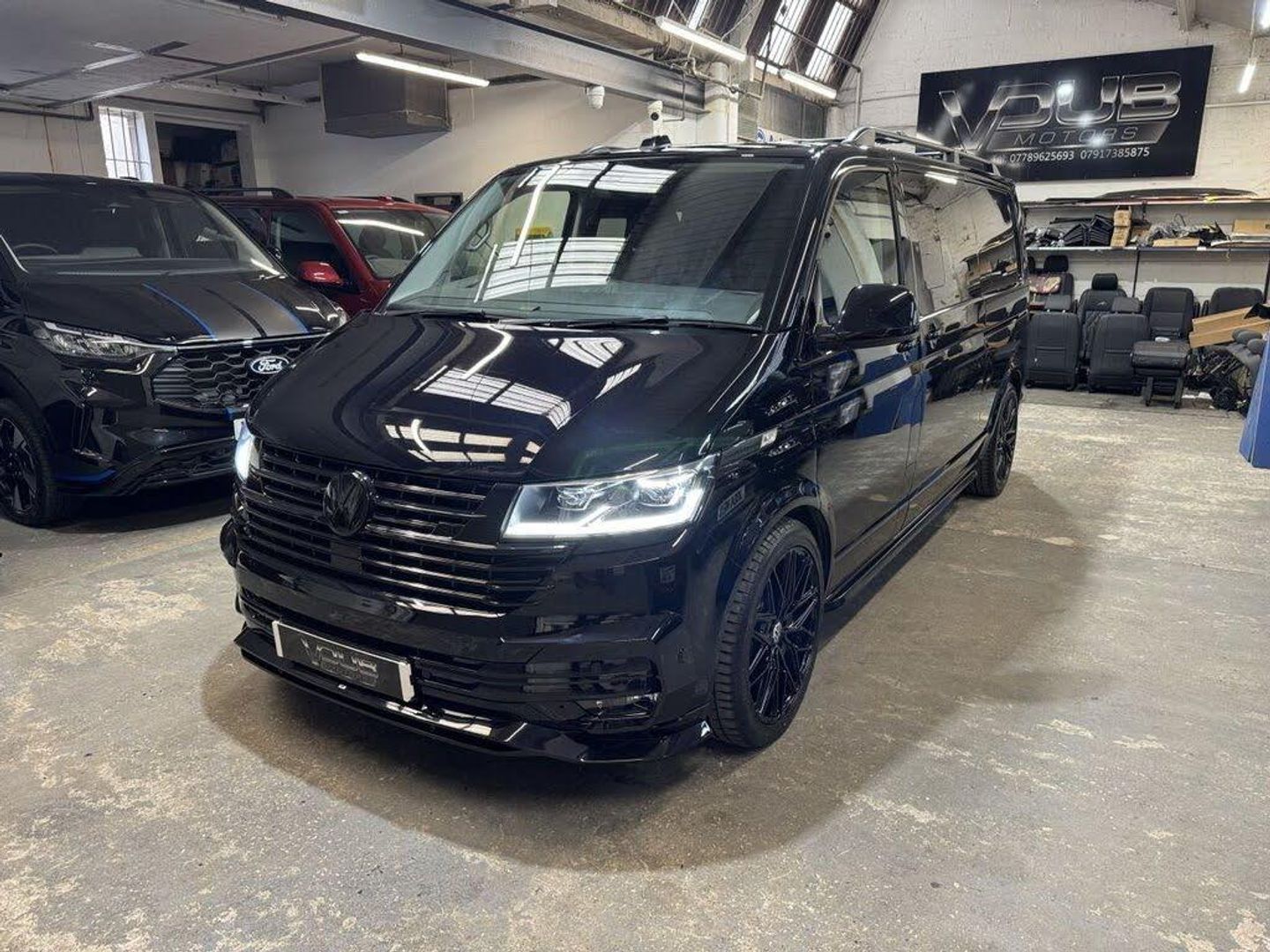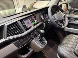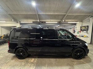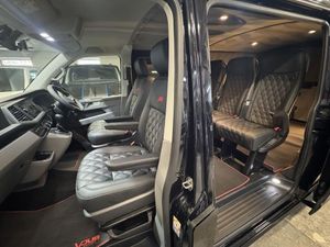 Volkswagen T6.1 LWB Transporter 150ps DSG automatic Custom Kombi Registered 29/12/23 and only 5200 miles. Finished in Deep Pearl Black. LWB Highline specification plus VW optioned LED lights, Discovery Media, heated swivel captain seats, tailgate with rear camera, park assist, and power latching side door. Vdub kombi conversion to include 2+1 rear seats that are position adjustable, fully removable and recline. Seating finished in black Diamond design with black stitch work and ABT logos. Lined out to the rear with LED lighting to the roof panel and tailgate. Additional 12v/USB power. Externally features include ABT front skirt and grill, rear spoiler, side bars and roof rails, 40mm lowered suspension sitting on 20" Wraith alloy wheels. All dealer finance and part exchange facilities available. Part exchange vehicles always considered. Viewing by arrangement, please message or ring to arrange. Evening and weekend viewings available. Vdub Motors home of the Custom Kombi