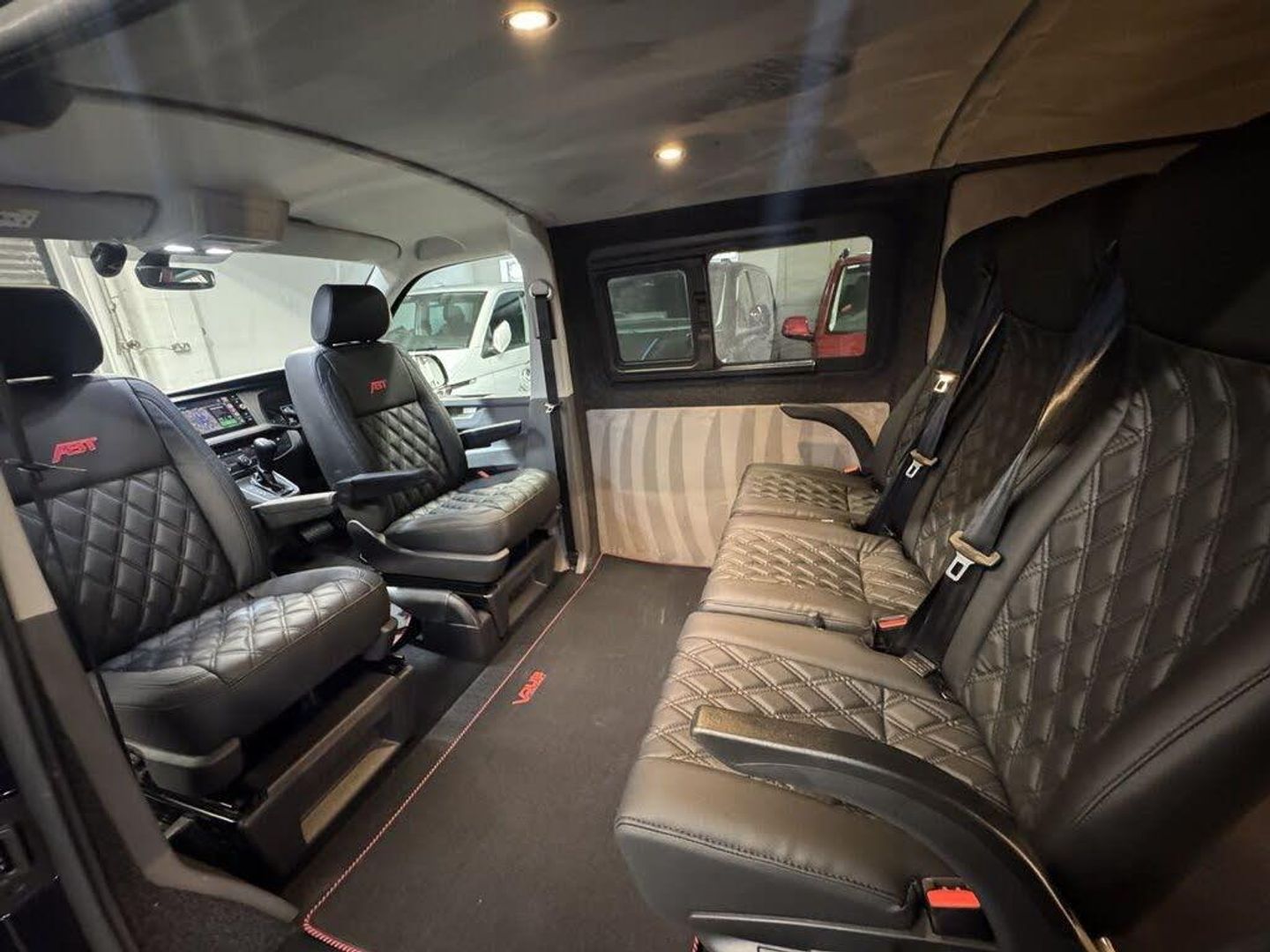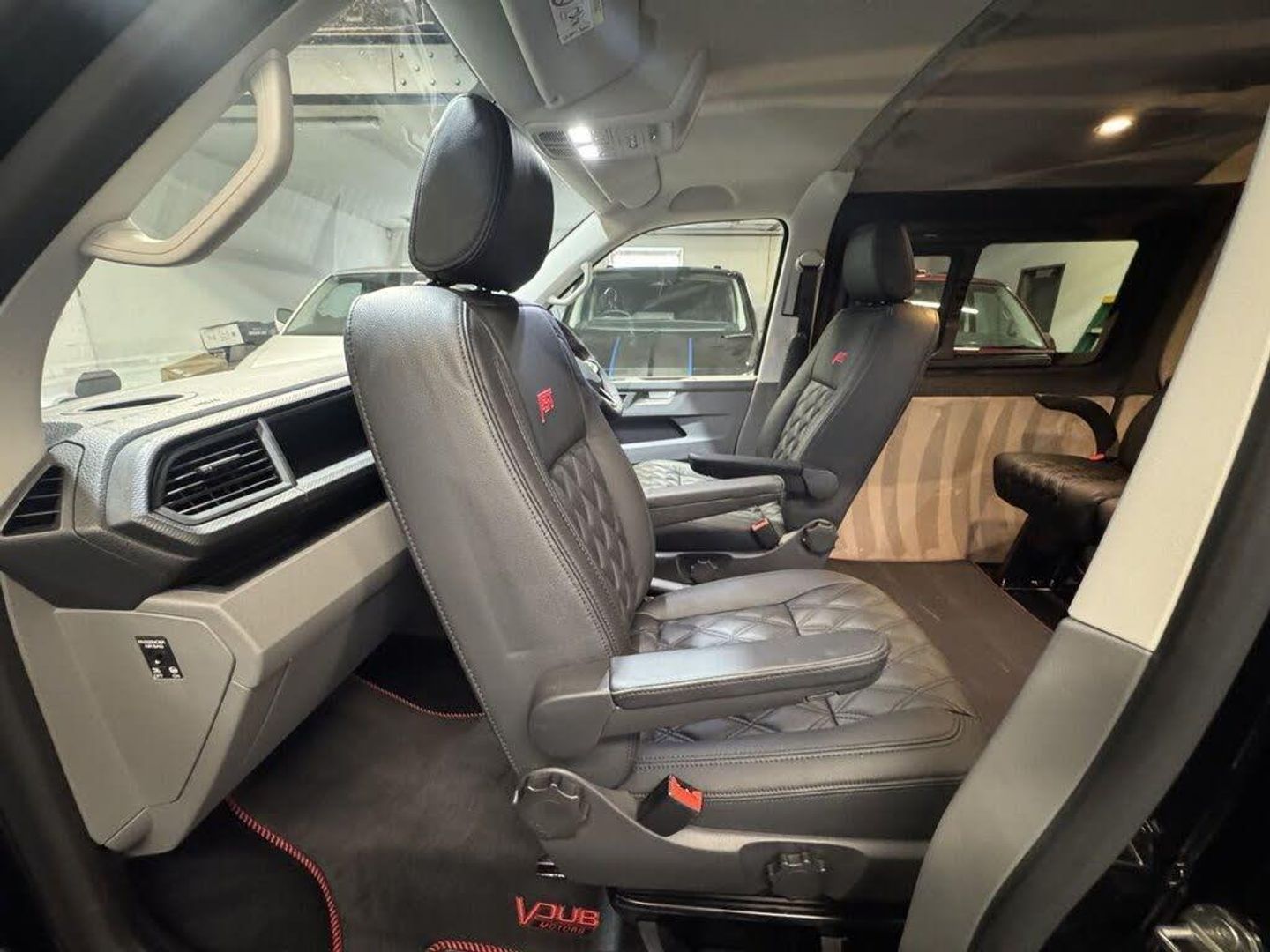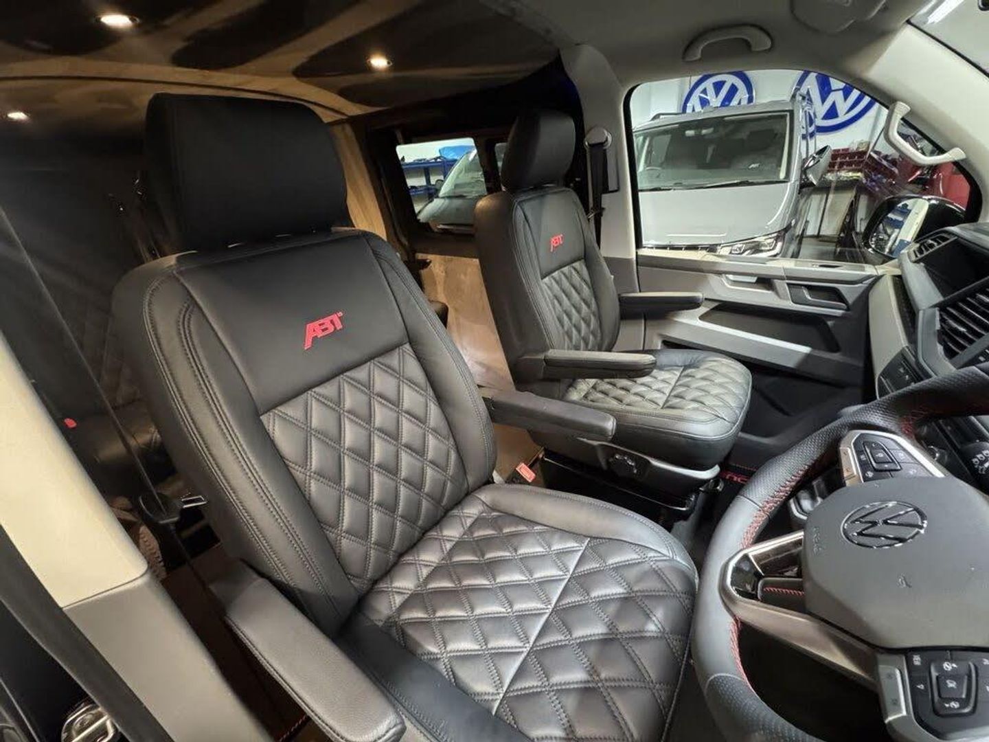 Volkswagen T6.1 LWB Transporter 150ps DSG automatic Custom Kombi Registered 29/12/23 and only 5200 miles. Finished in Deep Pearl Black. LWB Highline specification plus VW optioned LED lights, Discovery Media, heated swivel captain seats, tailgate with rear camera, park assist, and power latching side door. Vdub kombi conversion to include 2+1 rear seats that are position adjustable, fully removable and recline. Seating finished in black Diamond design with black stitch work and ABT logos. Lined out to the rear with LED lighting to the roof panel and tailgate. Additional 12v/USB power. Externally features include ABT front skirt and grill, rear spoiler, side bars and roof rails, 40mm lowered suspension sitting on 20" Wraith alloy wheels. All dealer finance and part exchange facilities available. Part exchange vehicles always considered. Viewing by arrangement, please message or ring to arrange. Evening and weekend viewings available. Vdub Motors home of the Custom Kombi