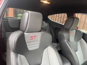 12V Power Socket - Front, 17in Alloy Wheels, 4.2in TFT Display, ABS - Anti-lock Braking System, Air Conditioning - Manual, Airbags - Curtain, Airbags - Front Passenger, Airbags - Head and Thorax, Body Colour Side Skirts, Centre Console with Trinket Tray 2 Cup Holders and Large Stowage Bin, Corner winglets, Courtesy Lights - Front, Door Handles - Body Colour, Door Mirrors - with Memory - Chrome Effect Housings - Heated Puddle Light and Indicator, Drivers Airbag, EBA - Emergency Brake Assist, EBD - Electronic Brakeforce Distribution, ECOmode, EPAS - Electric Power Assisted Steering, ESP - Electronic Stability Programme, Electric Windows - Front with One Touch Lowering Drivers, Emergency Brake Warning - Automatic Hazard Warning Lights, Ford AM-FM CD Audio System, Ford Easy Fuel Capless Refuelling System with Misfuel Inhibitor, Front Fog Lights, Gear Knob - Leather, Gearshift Indicator Light, Handbrake Release Knob - Chrome, Head Restraints - Rear 2-Way Adjustment, Headlights - Follow Me Home, Headlights - Halogen Projector with Chrome Bezel, Heated Driver and Passenger Seats, Heated Front Windscreen, High-Mounted Rear Brake Light, IPS - Intelligent Protection System, Keyless Start, LED Ambient Courtesy Lighting, LED Daytime Running Lights, Large black honeycomb trapezoidal grille, Loadspace Floor Carpet, Locking Wheel Nuts, Matrix Display, MyKey, Passengers seat manual 2-way adjustment, Pedal covers - Alloy cappings, Rake and Reach Steering Adjustable, Rear Privacy Glass, Rear Spoiler - Sports Style - Body Colour, Remote Central Locking, Removable Rear Parcel Shelf, ST Front Door Scuff Plates, ST Full Body Styling Kit, SYNC connectivity, Seats - 60-40 Split Folding Back and Fixed Cushion, Seats - Drivers 4-Way Adjustment, Seats - Drivers Lumbar Support, Seats - Front Recaro Sports, Seats - Front Sports, Seats - ISOFIX Mounting Brackets for Child Seats, Second Remote Ignition Key, Sony DAB Digital Radio, Sound Symposer, Speakers - x8, Steering Wheel - Leather with Red Stitching, Steering Wheel - Multifunction, Stowage Pockets - Drivers Seatback, Suspension - Sports, Tailgate Handle - Body Colour, Thatcham Category 1 Alarm, Trip Computer, Twin Exhaust Outlet, Tyre Inflator Kit, USB and AUX Connection for External Music Devices, Unique ST Floor Mats - Front and Rear, Unique ST Instrument Cluster Binnacle, Unique ST Rear Spoiler