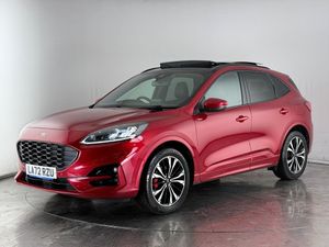 10-Way Power Adjustable Drivers Seat, 12V Power Point in Floor Console, 12v Power Point in Cargo Area, 12v Socket - Voltage Regulator, 19in Alloy Wheels - 5x2 Spoke - High Gloss - Machined, 2nd Row Sliding Seats, 8-Way Manual Passenger Seat including Lumbar Support and Height Adjust, ABS - Anti-Lock Braking System with Enhanced Electronic Stability Control - ESC with Traction Control - Emergency Brake Assist - EBA - Hill Start Assist - Trailer Sway Control, Air Conditioning - Electronic Automatic Temperature Control - EATC, Airbag - Driver and Front Passenger Side, Airbag - Front Passenger Deactivation Switch, Airbags - Driver and Front Passenger, Airbags - Front and Rear Side Curtain, Aluminium - Finish Front Scuff Plates with ST-Line Script, Aluminium Foot Pedals - ST-Line Design, Ambient Lighting, Auto Dimming Rear View Mirror, Auto Wipers, Automatic Door Relocking, Automatic Headlights with Auto High-Low Beam, Black Roof Rails, Centre Console with Electronic Parking Brake, Cruise Control with Intelligent Speed Limiter, Driver and Passengers Sun Visor with Illumination, Dual Exhaust Tailpipes with Unique Brushed Stainless Steel Finish, EPAS - Electric Power Assisted Steering, Electric Childproof Locks on Rear Doors, Electric Parking Brake with Auto Hold, Electrical Charging Point in Second Row, Engine Immobiliser - SecuriLock, Exterior Door Handles - Body Coloured, Ford Easy Fuel System, Ford Keyfree System - Keyless Entry with Ford Power Starter Button, Ford SYNC3 DAB Navigation System, Front Lower Grille - Ebony Black Mesh, Front Seats - 2-Way Manual Height Adjust Passive Head Restraints, Front Seats - Drivers and Passengers Seatback Map Pockets, Front Upper Grille - Carbon Black Honeycombe Mesh and High-Gloss Black Surround, Front Windows - Laminated Glass, Front and Rear Bumper - Sporty Body Colour with Rear Ebony High-Gloss Insert, Front and Rear Floor Mats with Red Stitching, Front and Rear Parking Sensors, Full Digital 12.3in Instrument Cluster, Full LED Headlamps, Gearshift - Automatic - Electronic Rotary Gearshift Dial, Glovebox Lights, Handsfree Power Tailgate, Headlights - Automatic Follow Me Home Lighting, Headlights - Levelling System - Manual, Headlights - Unique Bending, Headliner - Sports Dark, Heated Driver and Passenger Seats, Heated Rear Seats, Heated Steering Wheel, Heated and Power Folding Door Mirrors with Puddle Lights, High-Mounted Brake Light, Kuga Badge, LED Daytime Running Lights, LED Fog Lights - Front, Lane Keeping Aid with Lane Departure Warning, Large Rear Spoiler, Load Compartment - Lights, Load Compartment - Tie Down Hooks, Load Compartment Carpet, Locking Wheel Nuts, Lower Bodyside Moulding - Body Colour, Lower Door Frame Beltline - Black, Mini Overhead Console with Sunglasses Holder Bin, MyKey, Power Door Deadlocks - Double Locking, Power Door Locks, Power Opening Panoramic Roof, Pre-Collision Assist with Autonomous Emergency Braking - Camera Detection, Privacy Glass, Quickclear Heated Windscreen, Rear Duct on B-Pillar, Rear Lights - LED, Rear Seat - 60-40 Split Folding Seats, Rear Seat Centre Head Restraint, Rear Seats - 2-Way Head Restraint Up-Down, Rear Seats - Folding Centre Armrest with Integrated Cup Holder, Rear Seats - Sliding Seat Adjust Tracks - Fore-Aft, Rear View Camera, Red Brake Calipers, Remote Tailgate Release, Removable Package Tray, Rocker Panel Mouldings - Body Colour - ST-Line Design, ST-Line Badge on Left and Right Side Wings, ST-Line Bodystyling Kit, ST-Line Front and Rear Bumper Moulding - Body Colour, Seat Belt - Drivers - Front Passenger and Rear Seat Belt Reminder Alert, Seat Belts - Front 3-Point Seatbelts with Load Limiter, Seat Belts - Front Height Adjustable, Seat Belts - Rear Retractable Rear Belt - 3-Point All Positions, Seats - ISOFIX Mounting Provision for Child Seats - Outer Seats Only, Selectable Drive Modes, Single Rear Fog Light, Sports Seats, Steering Column - Locking Electric, Steering Column - Rake and Reach Adjustment, Steering Wheel - ST-Line Spor