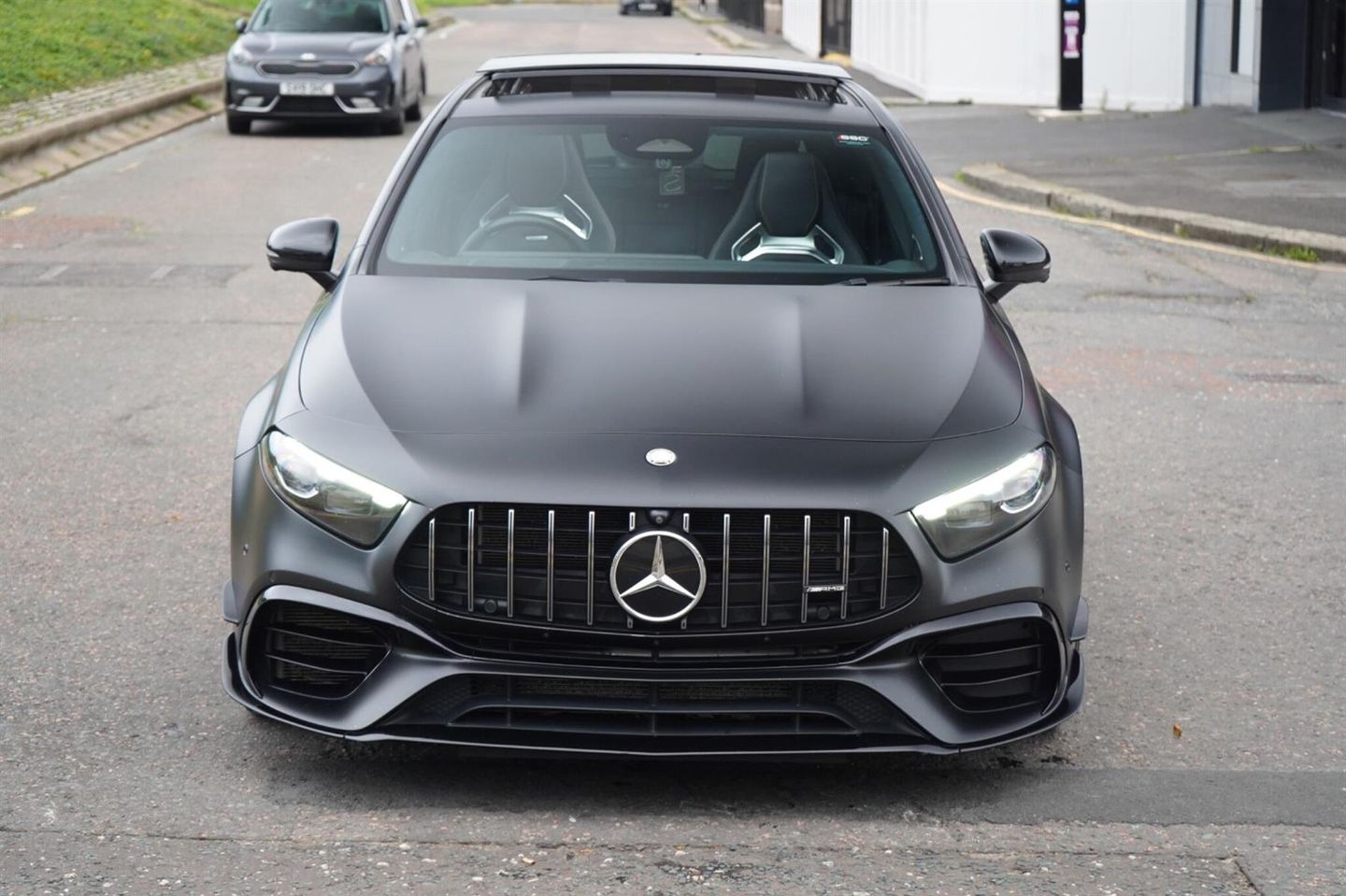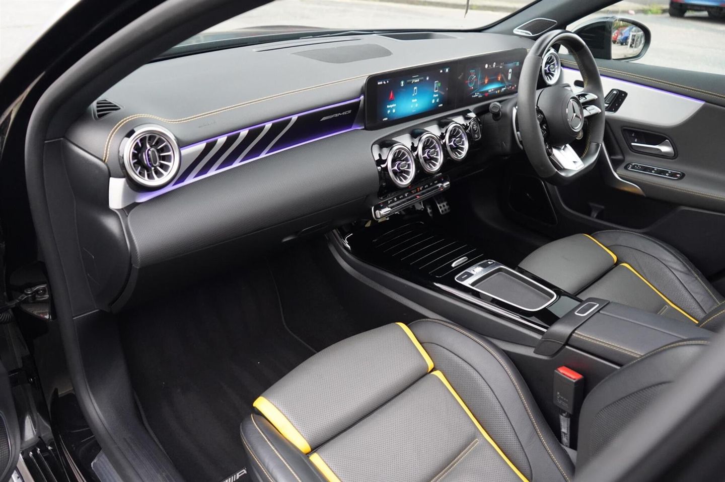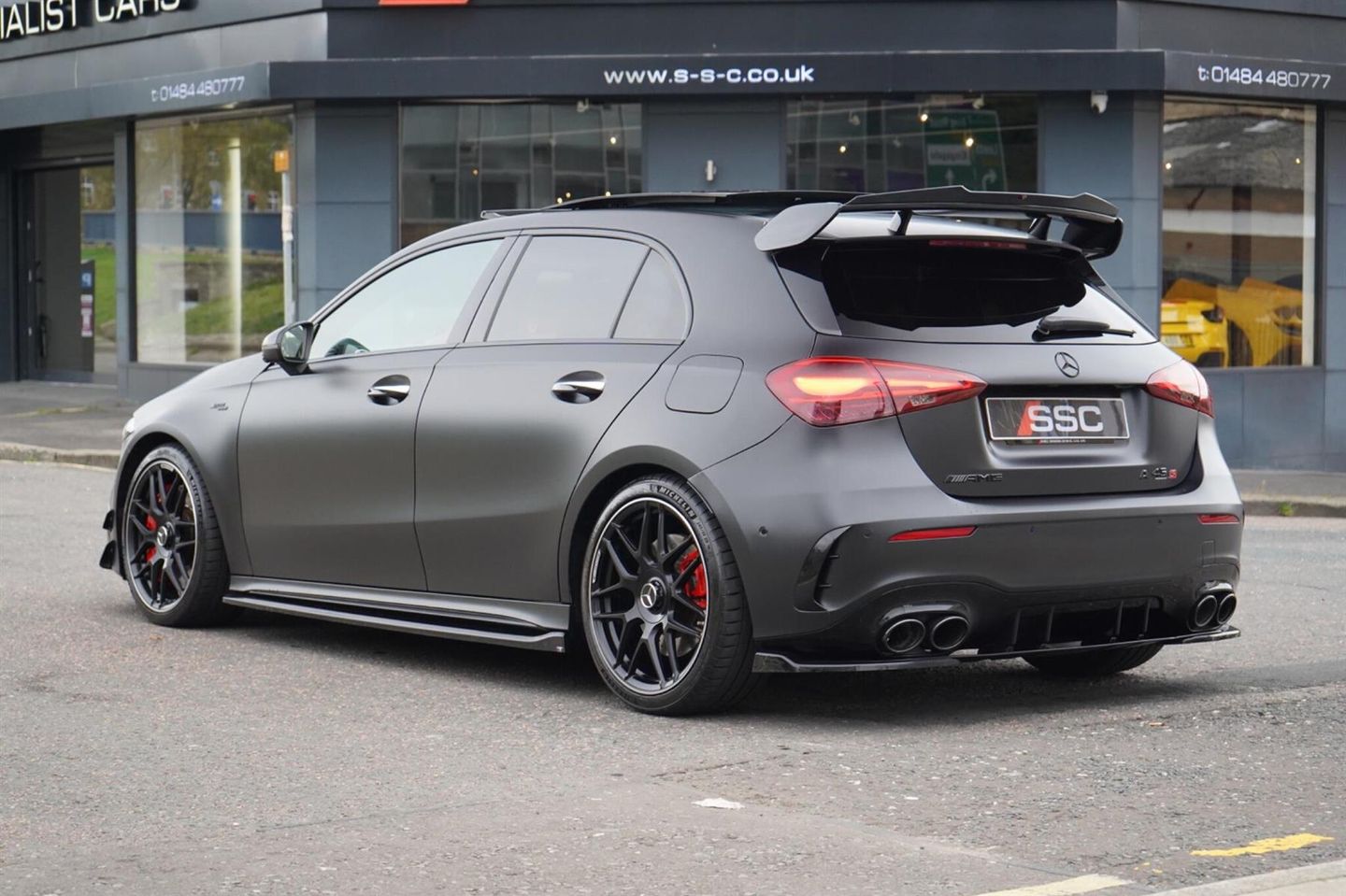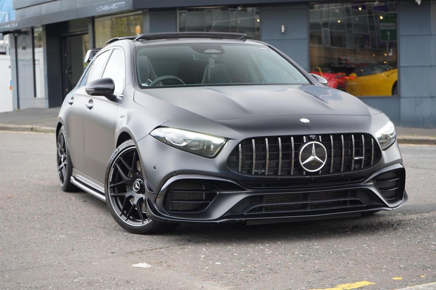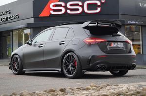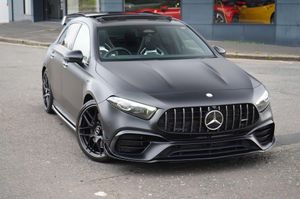 Stunning Facelift A45 AMG S PLUS Finished In Satin PPF. Cosmos Black Metallic With Black/Grey/Yellow AMG Leather Interior. Fantastic Spec Inc: Maxton Bodystyling, Facelift Multi Function AMG Performance Steering Wheel With AMG Buttons, Head-Up Display, AMG Aero Pack, 19'' AMG Cross Spoke Alloys In Matt Black, AMG Night Pack, Valvetronic AMG Exhaust, Panoramic Sunroof, Burmester Surround Sound, AMG Drivers Package, AMG Leather Package, AMG Track Pace, Widescreen Cockpit, COMAND Online, Quad AMG Exhaust Tips, Active Lane Keeping Assist, Blind Spot Assist, Exit Warning Assist, Red AMG Calipers, Cruise Control with Limiter, DAB, Thermotronic Luxury Climate, Dual Bluetooth Interfaces, Electric Heated AMG Performance Seats With Memory, Electric Folding Mirrors With Memory, Auto Dimming Mirrors, Keyless System, Illuminated Door Sill Trims, Multibeam LED Headlights, Adaptive Highbeam Assist Plus, Multi-Contour Seat Package, Light and Sight Package, Parking Pack, Privacy Glass, Speed Limit Assist, Traffic Sign Assist, Tyre Pressure Monitoring System, 64 Colour Ambient Lighting Programme. This A45 S Comes With Full Mercedes Service History and Remainder Of Manufacturers Warranty, This 2023 Mercedes-Benz A Class A45 AMG S Plus is a remarkable example of performance and luxury. Featuring a potent 2.0L Petrol Engine and a sophisticated Four Wheel Drive system, this Euro 6 compliant model offers exhilarating acceleration, reaching 0-62mph in a mere 3.9 seconds. The AMG S Plus trim level ensures a premium experience, enhanced by the immersive 590W Burmester Surround Sound System and the intelligent MULTIBEAM LED Headlamps with Adaptive Highbeam Assist. Convenience is paramount with KEYLESS-GO for effortless entry and THERMOTRONIC Automatic Climate Control for personalised comfort, while the Memory Package for the driver's seat ensures your preferred seating position is always ready.