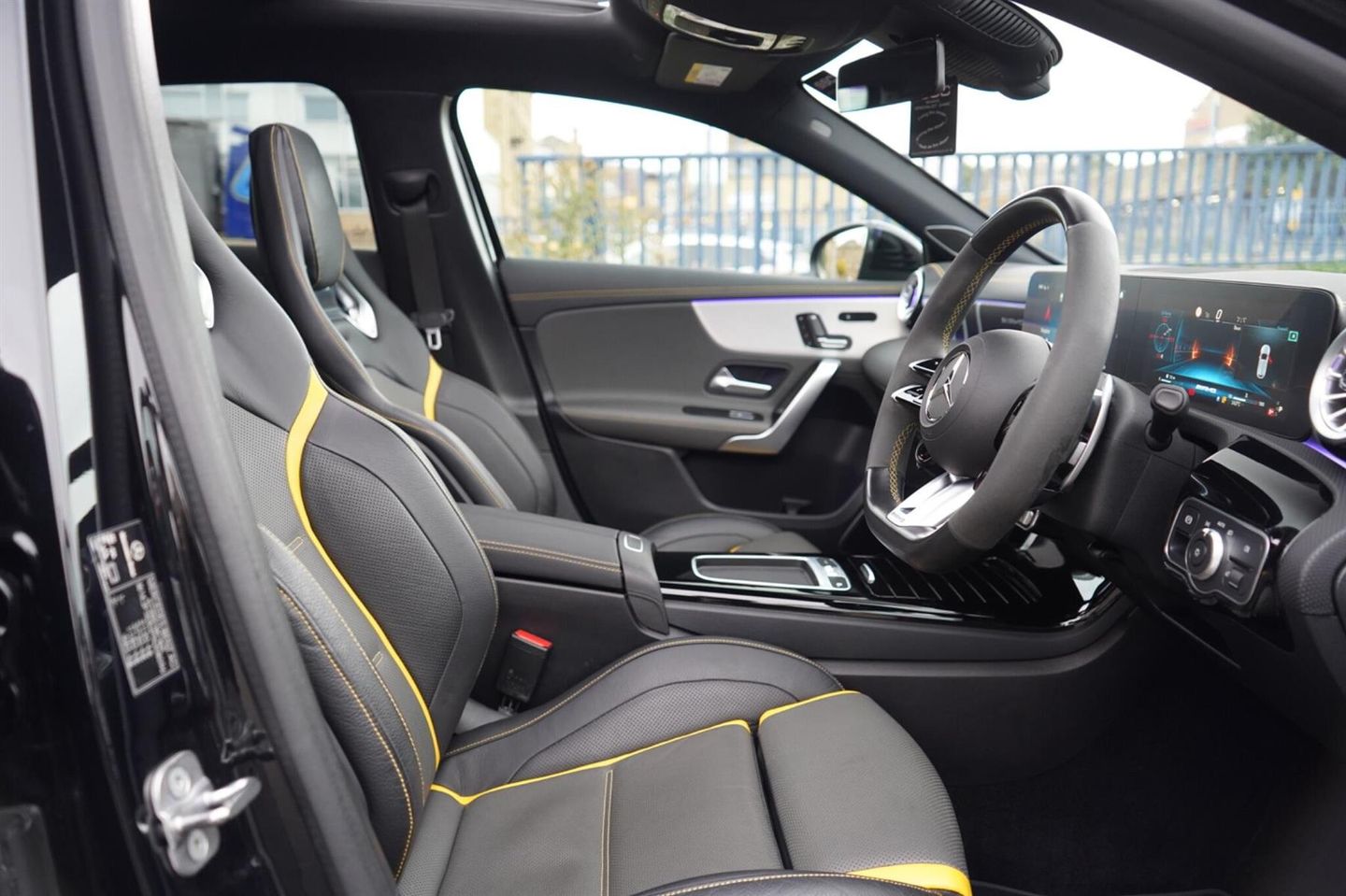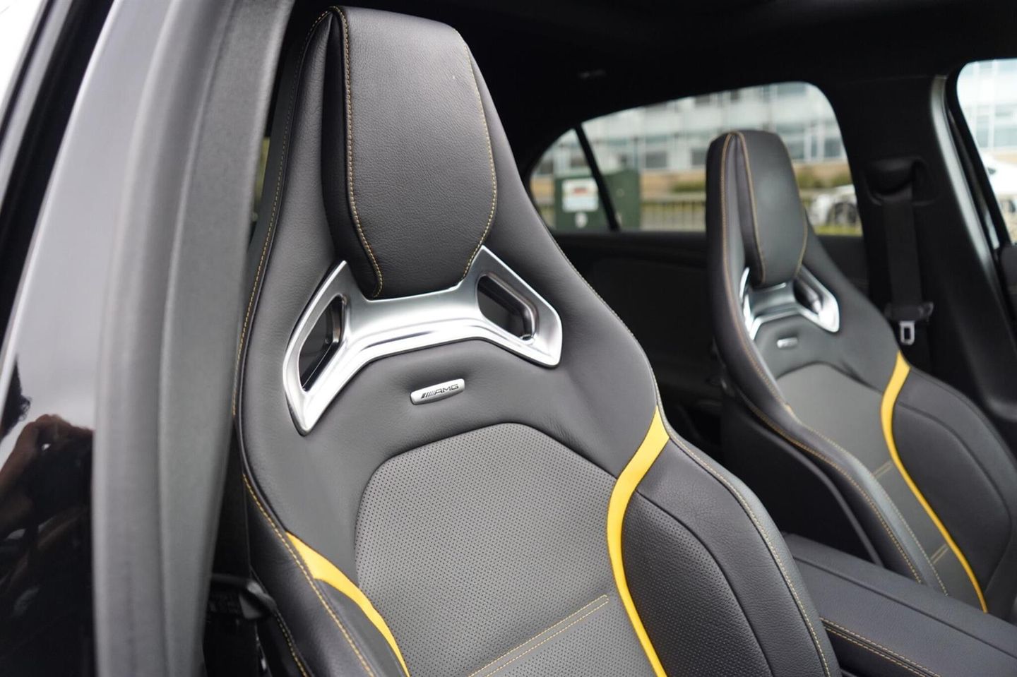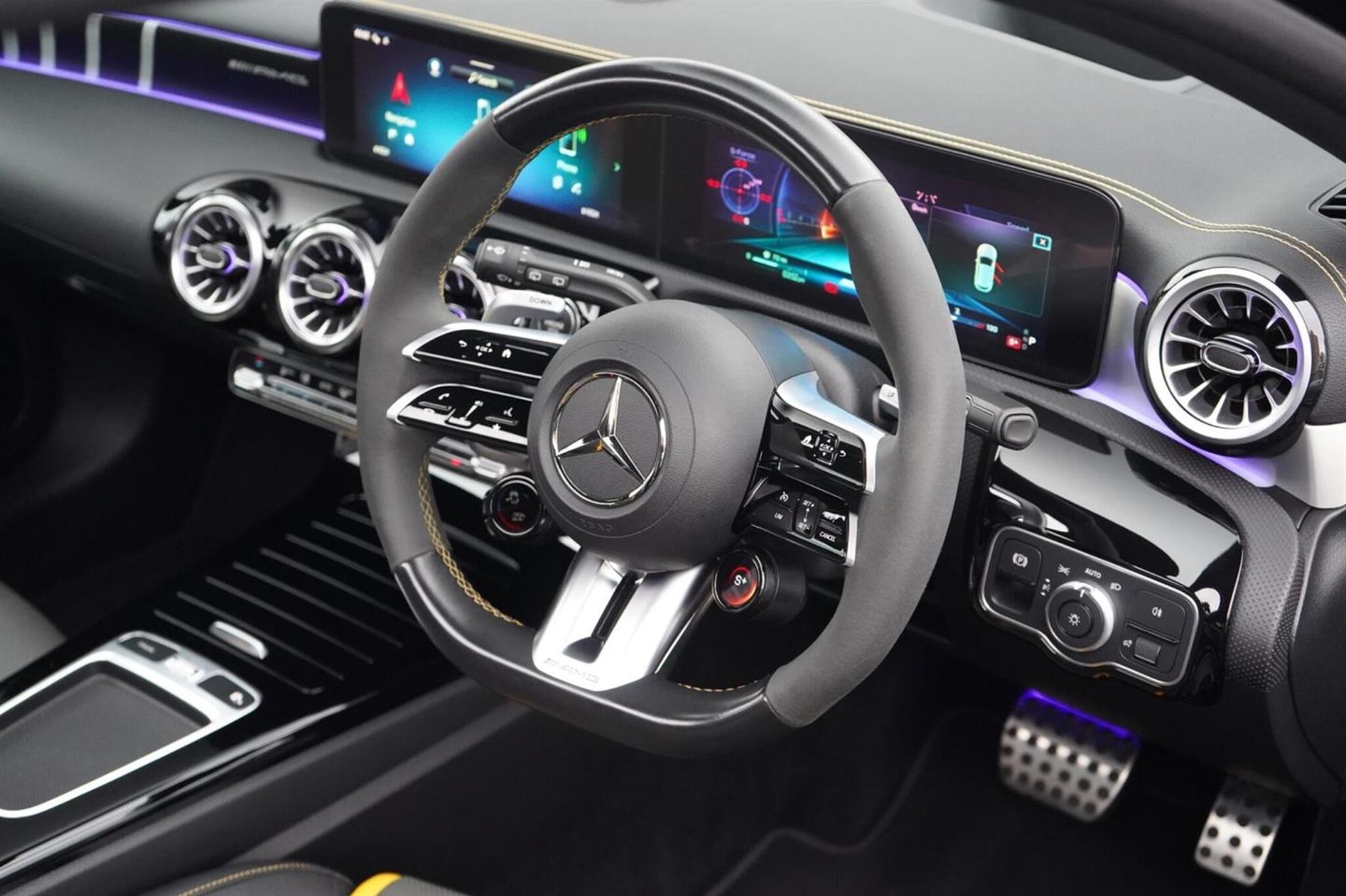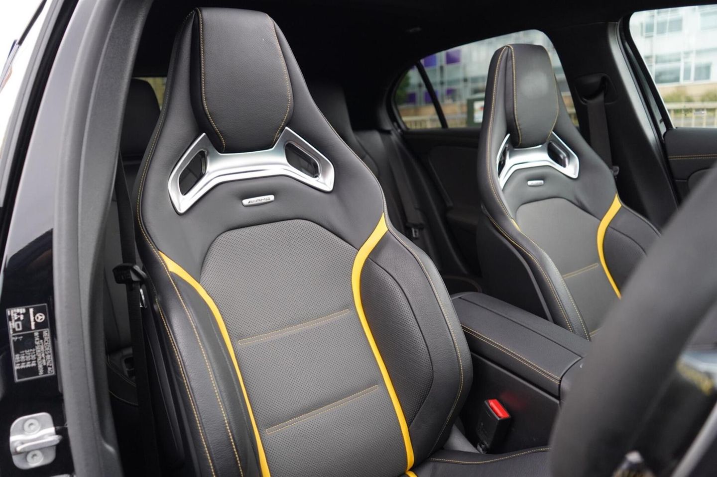 Stunning Facelift A45 AMG S PLUS Finished In Satin PPF. Cosmos Black Metallic With Black/Grey/Yellow AMG Leather Interior. Fantastic Spec Inc: Maxton Bodystyling, Facelift Multi Function AMG Performance Steering Wheel With AMG Buttons, Head-Up Display, AMG Aero Pack, 19'' AMG Cross Spoke Alloys In Matt Black, AMG Night Pack, Valvetronic AMG Exhaust, Panoramic Sunroof, Burmester Surround Sound, AMG Drivers Package, AMG Leather Package, AMG Track Pace, Widescreen Cockpit, COMAND Online, Quad AMG Exhaust Tips, Active Lane Keeping Assist, Blind Spot Assist, Exit Warning Assist, Red AMG Calipers, Cruise Control with Limiter, DAB, Thermotronic Luxury Climate, Dual Bluetooth Interfaces, Electric Heated AMG Performance Seats With Memory, Electric Folding Mirrors With Memory, Auto Dimming Mirrors, Keyless System, Illuminated Door Sill Trims, Multibeam LED Headlights, Adaptive Highbeam Assist Plus, Multi-Contour Seat Package, Light and Sight Package, Parking Pack, Privacy Glass, Speed Limit Assist, Traffic Sign Assist, Tyre Pressure Monitoring System, 64 Colour Ambient Lighting Programme. This A45 S Comes With Full Mercedes Service History and Remainder Of Manufacturers Warranty, This 2023 Mercedes-Benz A Class A45 AMG S Plus is a remarkable example of performance and luxury. Featuring a potent 2.0L Petrol Engine and a sophisticated Four Wheel Drive system, this Euro 6 compliant model offers exhilarating acceleration, reaching 0-62mph in a mere 3.9 seconds. The AMG S Plus trim level ensures a premium experience, enhanced by the immersive 590W Burmester Surround Sound System and the intelligent MULTIBEAM LED Headlamps with Adaptive Highbeam Assist. Convenience is paramount with KEYLESS-GO for effortless entry and THERMOTRONIC Automatic Climate Control for personalised comfort, while the Memory Package for the driver's seat ensures your preferred seating position is always ready.