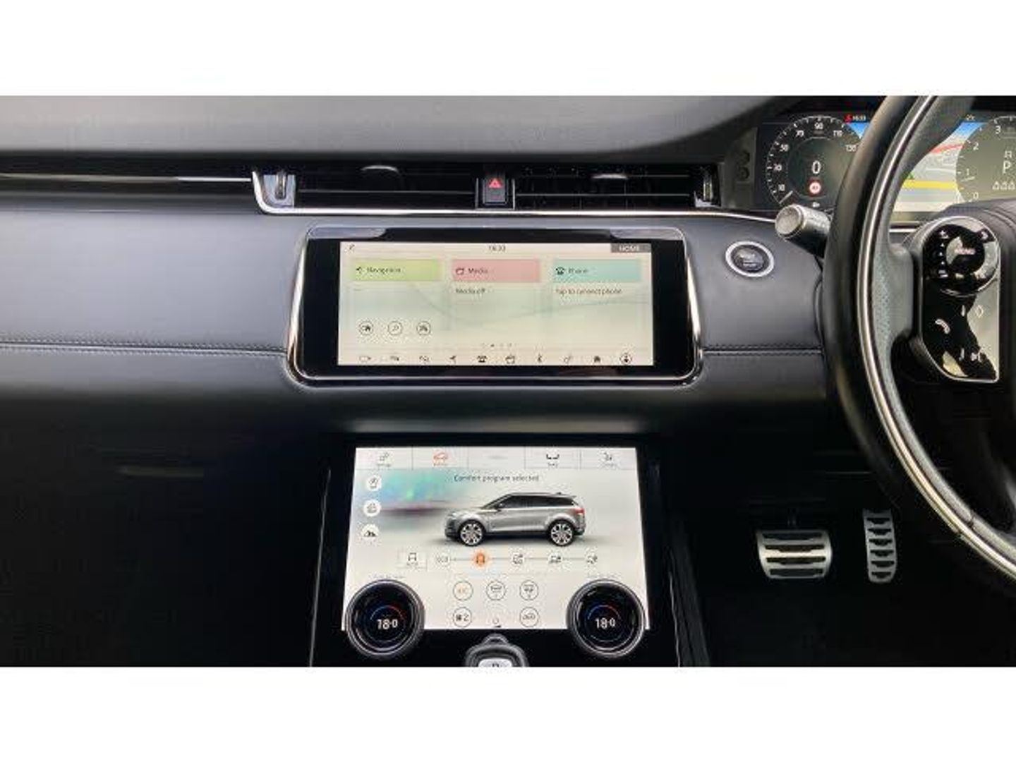 Heated windscreen, Heated washer jets, Heated rear window with timer, Rain sensing windscreen wipers, Electric windows with one touch open/close and anti trap, Rear wiper, Electronic brake force distribution, Hill descent control, DSC - Dynamic Stability Control, Electronic parking brake, Roll stability control, Torque vectoring brake, Hill Launch assist, Efficient Driveline, Anti-lock Braking System (ABS), Electronic traction control, Terrain Response 2 Auto, All terrain progress control, Passive suspension, Voice control system, Land rover incontrol apps, InControl remote, Apple car play, Bluetooth connectivity, Lane keep assist, Low traction launch, Traffic sign recognition with adaptive speed limiter, Rear traffic monitor, Electronic power assisted steering (EPAS), Blind spot assist, Rear Collision Monitor, Front and rear parking aid, Push button starter, eCall emergency system, Brake pad wear indicator warning light, Driver condition monitor