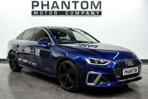 STRICT APPOINTMENT ONLY, 2025 AUTOTRADER HIGHLY RATED AWARD WINNER, LOW RATE FINANCE. Nationwide delivery available. Finished in Navarra Blue we have a stylish Audi A4 S Line 35 TFSI. This vehicle has just two previous owners. 5 years guarantee with lifetime MOTs available. Our A4 cruises the streets on sleek 19inch alloy wheels and comes kitted with a plethora of premium features such as; Privacy glass, Sport Suspension, S line Front and Rear Bumpers and Side Skirts, S Line Rear Diffuser, S Line Badges on Front Wings, Rear-View Camera, Radiator Grille with Honeycomb Structure in Grained Matt Black, Parking System Plus - Front and Rear Sensors, Audi Smartphone Interface, Door Mirrors - Folding with Auto-Dimming, Deluxe 3-Zone Electronic Climate Control, DAB Digital Radio Reception, Cruise Control System with Speed Limiter, Automatic Start-Stop with Coasting Functionality and Efficiency Programme, Auto-Dimming Rear-View Mirror, Audi Virtual Cockpit, Audi Drive Select, 4-Way Electric Lumbar Support, 3-spoke Leather High Multi-function Sport Steering Wheel with Grips in Perforated Leather with S Badging, Lane Departure Warning, LED Interior Lighting Pack, LED Headlights with LED Rear Lights and Dynamic Rear Indicators, Keyless Go, Illuminated Door Sill Trims with S Logo, Front Sports Seats. With its sharp performance and refined styling, the Audi A4 is a truly versatile machine that effortlessly combines sports-car agility with luxury. Its bold design and opulent interior ensure a commanding presence on any road, making it the perfect choice for those who seek both adventure and elegance. Call or email us to book a viewing at our indoor heated showroom.