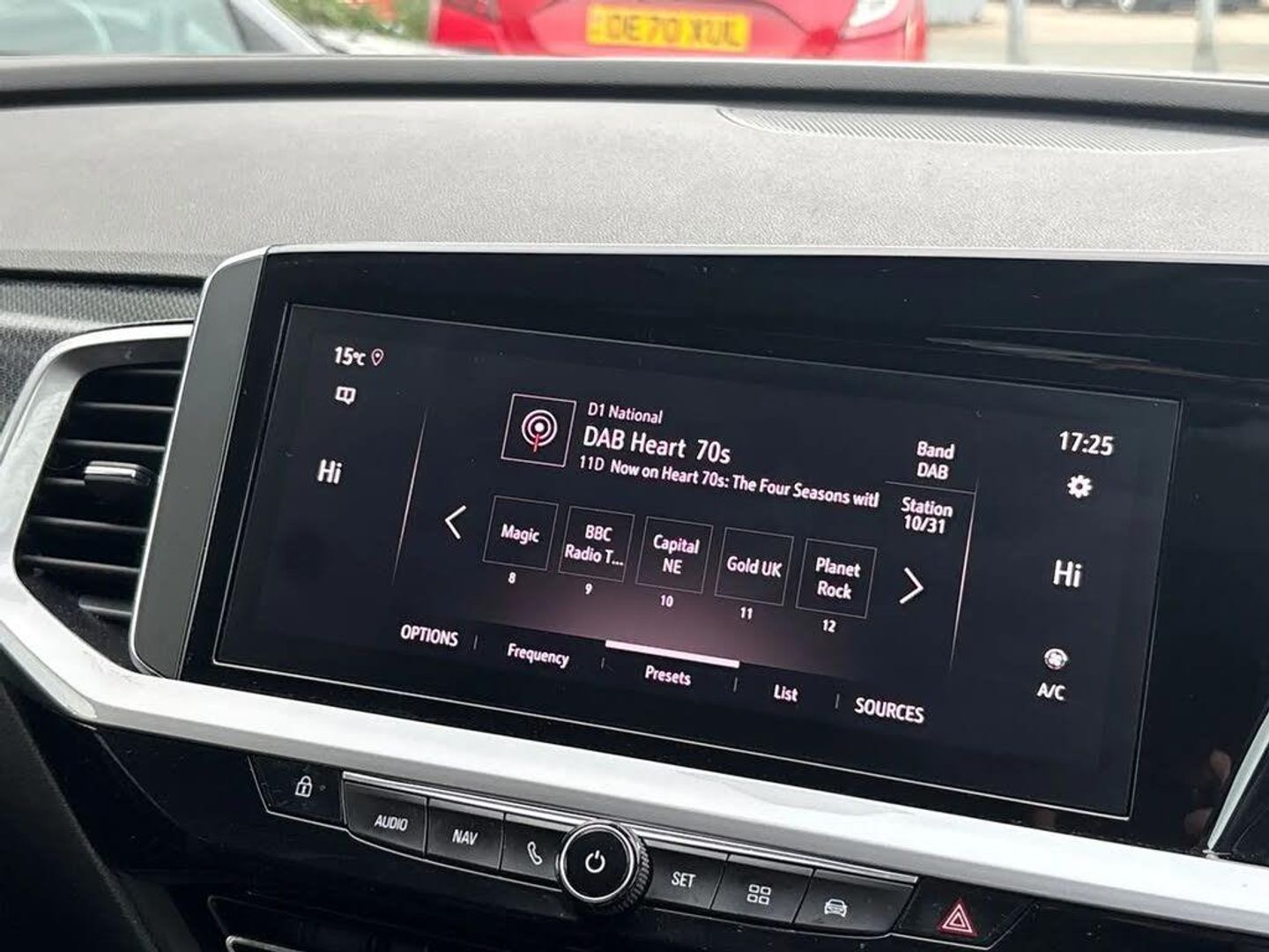 12" colour digital cluster,180 degree rear view camera,Central facia display with digital clock, outside air temperature and audio information,Cruise control with speed limiter,Digital fuel gauge with low fuel level warning light,Digital rev counter,Digital speedometer,Digital water temperature gauge with warning light,Driver drowsiness alert system,Driver information - Total mileage, service indicator, oil life,Front and rear parking distance sensors,Gearshift up/down indication light,Lane departure warning system,Lane keep assist,Lights on audible warning,Multi function trip computer - Trip odometer, vehicle range, average speed and fuel economy, instantaneous fuel economy and driving time,Multimedia navi pro with 10" colour touch+ sat nav+AM/FM/DAB radio, bluetooth audio streaming/mobile phone portal, Apple carplay/Android auto, USB,Speed sensitive electric power assisted steering,Speed sign recognition,Vauxhall connect including Emergency call (SOS e-call) and Breakdown call (b-call),Anti-roll bars,Compound crank rear suspension with coil springs and gas pressure dampers,Independent decoupled MacPherson strut front suspension with gas pressure dampers and coil springs,Six speaker - four front + two rear,Steering wheel mounted audio/phone/cruise controls,Automatic lighting control,Automatically dimming anti dazzle rear view mirror,Black door mirrors,Black roof,Black side window trim,Body colour door handles,Body colour upper front bumper,Carbon black lower front and rear bumpers, protective wheel arches and lower door cladding,Collapsible windscreen wipers,Dark tinted rear side and tailgate windows,Door to door illumination,Electrically operated front and rear windows with safety auto reverse and one touch up/down facility,Front wiper system spraying directly from wipers,Hazard warning lights,Heated rear screen with timed cut off,High beam assist,High gloss black Griffin for Vizor and tailgate with high gloss black Grandland tailgate lettering,High gloss black protective front and rear skid plates and C-shape bumper inserts,High gloss black roof rails,High level centre rear brake light,Intermittent rear window wash/wipe,LED daytime running lights,LED Headlights,LED tail lights,Magic wash,Manual headlight beam levelling,Rain sensor windscreen wipers,Rear side wing doors,Rear spoiler,Reversing light,Shark fin aerial,Soundproof insulated windscreen,Tinted windows,Twin electrically adjustable and heated power door mirrors (wide-angle on drivers side) with automatic timed cut-off,Two speed windscreen wipers with variable intermittent wipe,Upper and lower bumper design,Vizor front grille,Welcome lighting,12V electrical accessory socket in front,3 bench rear seats in 2nd row,3 spoke flat bottom leather steering wheel with satin chrome effect bezel,4 way electric driver lumbar support,60/40 split folding rear seat,Advanced predictive logic control system using a sun sensor,Ambient centre console downlighter,Automatic air direction and fan speed with manual override,Charcoal filter,Chrome effect interior door handles,Covered storage compartment in centre console and in driver armrest,Driver's centre armrest,Drivers seat with height, reach, backrest adjustment and seat cushion extension,Dual zone electronic climate control,Ergonomic active drivers sports style seat,Focus cloth upholstery,Front door pockets with 2.6 litre capacity,Front passenger seat,Front passenger seat with reach and backrest adjustment,Front passengers sports style seat,Fully carpeted luggage area,Height adjustable headrests,Illuminated driver/passenger sunvisors with vanity mirror,Illuminated luggage area,ISOFIX on front passenger and rear outer seats,Luggage compartment cover,Reach + rake adjustable steering column,Rear centre seat head restraint,Rear door pockets with 1.8 litre capacity,Rear passenger compartment heating ducts,Rear reading lights,Two drinks holders in centre console,Anti-lock braking system (ABS),Automatic emergency braking with pedestrian detection,Child proof locks on rear doors,CSC - Cornering stability control,Deactivation switch for front passenger front and side impact airbags,Deflation detection system,Driver airbag,Dual seatbelt pretensioners on front seats,EBD - Electronic brakeforce distribution,Electronic parking brake,Electronic stability program (ESP) including traction control,Front brake ventilated disc 304mm diameter,Front passenger airbag,Front seat side impact airbags,Full size curtain airbags for driver, front seat passenger and outer rear seat passengers,Hill start assist,Hydraulic Brake Assist (HBA),Inertia reel lap and diagonal seatbelts for all seats,Load limiters on outer rear seatbelt retractors,Pretensioners on outer rear seatbelt retractors,Rear brake ventilated disc 268mm diameter,Smart seatbelt reminder for front and rear seats,Tyre pressure monitoring system,Deadlocking system,Electronically protected audio equipment,Engine deadlock immobiliser,Locking wheel nuts