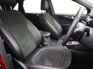 10-Way Power Adjustable Drivers Seat,12V Power Point in Floor Console,12v Power Point in Cargo Area,12v Socket - Voltage Regulator,18in Alloy Wheels - 10 Spoke - Rock Metallic,2nd Row Sliding Seats,8-Way Manual Passenger Seat including Lumbar Support and Height Adjust,ABS - Anti-Lock Braking System with Enhanced Electronic Stability Control - ESC with Traction Control - Emergency Brake Assist - EBA - Hill Start Assist - Trailer Sway Control,Air Conditioning - Electronic Automatic Temperature Control - EATC,Airbag - Driver and Front Passenger Side,Airbag - Front Passenger Deactivation Switch,Airbags - Driver and Front Passenger,Airbags - Front and Rear Side Curtain,Aluminium - Finish Front Scuff Plates with ST-Line Script,Aluminium Foot Pedals - ST-Line Design,Ambient Lighting,Auto Dimming Rear View Mirror,Auto Wipers,Automatic Door Relocking,Black Roof Rails,Centre Console with Electronic Parking Brake,Child Locks - Manual on Rear Doors,Cruise Control with Speed Limiter,Digital Colour 12.3in Instrument Cluster,Driver and Passengers Sun Visor with Illumination,Dual Exhaust Tailpipes with Unique Brushed Stainless Steel Finish,EPAS - Electric Power Assisted Steering,Electric Parking Brake with Auto Hold,Electrical Charging Point in Second Row,Engine Immobiliser - SecuriLock,Exterior Door Handles - Body Coloured,Ford Easy Fuel System,Ford Keyfree System - Keyless Entry with Ford Power Starter Button,Ford SYNC3 DAB Navigation System,Front Lower Grille - Ebony Black Mesh,Front Seats - 2-Way Manual Height Adjust Passive Head Restraints,Front Seats - Drivers and Passengers Seatback Map Pockets,Front Seats - Sports Style V-shape with High Bolster,Front Upper Grille - Carbon Black Honeycombe Mesh and High-Gloss Black Surround,Front Windows - Laminated Glass,Front and Rear Bumper - Sporty Body Colour with Rear Ebony High-Gloss Insert,Front and Rear Floor Mats with Red Stitching,Front and Rear Parking Sensors,Full LED Headlamps,Gearshift - Automatic - Electronic Rotary Gearshift Dial,Glovebox Lights,Handsfree Power Tailgate,Headlights - Automatic Follow Me Home Lighting,Headlights - Automatic High Beam Assist,Headlights - Levelling System - Manual,Headlights - Unique Bending,Headliner - Sports Dark,Heated and Power Folding Door Mirrors with Puddle Lights,High-Mounted Brake Light,Kuga Badge,LED Daytime Running Lights,LED Fog Lights - Front,Lane Keeping Aid with Lane Departure Warning,Large Rear Spoiler,Load Compartment - Lights,Load Compartment - Tie Down Hooks,Load Compartment Carpet,Locking Wheel Nuts,Lower Bodyside Moulding - Body Colour,Lower Door Frame Beltline - Black,Mini Overhead Console with Sunglasses Holder Bin,MyKey,Power Door Deadlocks - Double Locking,Power Door Locks,Pre-Collision Assist with Autonomous Emergency Braking,Quickclear Heated Windscreen,Rear Duct on B-Pillar,Rear Lights - LED,Rear Privacy Glass,Rear Seat - 60-40 Split Folding Seats,Rear Seat Centre Head Restraint,Rear Seats - 2-Way Head Restraint Up-Down,Rear Seats - Folding Centre Armrest with Integrated Cup Holder,Rear Seats - Sliding Seat Adjust Tracks - Fore-Aft,Rear View Camera,Red Brake Calipers,Remote Tailgate Release,Removable Package Tray,Rocker Panel Mouldings - Body Colour - ST-Line Design,ST-Line Badge on Left and Right Side Wings,ST-Line Bodystyling Kit,ST-Line Front and Rear Bumper Moulding - Body Colour,Seat Belt - Drivers - Front Passenger and Rear Seat Belt Reminder Alert,Seat Belts - Front 3-Point Seatbelts with Load Limiter,Seat Belts - Front Height Adjustable,Seat Belts - Rear Retractable Rear Belt - 3-Point All Positions,Seats - ISOFIX Mounting Provision for Child Seats - Outer Seats Only,Selectable Drive Modes,Single Rear Fog Light,Steering Column - Locking Electric,Steering Column - Rake and Reach Adjustment,Steering Wheel - ST-Line Sports-Style Perforated Sensico-Trimmed with Red Stitching,Suspension - Sports,Tailgate Handle - Body Colour,Tether Anchorage - Two Rear Seat Top Tether Anchorage Restraints,Thatcham Category 1 Perimeter and Volume Sensing Alarm,Tow Hooks - Front and Rear,Trip Computer,Tyre Inflation Kit,Tyre Pressure Monitoring System,Upper Door Frame Beltline - Black,Windows - Power Front and Rear with Global Closing,Wiper - Intermittent Rear Window Wiper,Wrong Way Alert,eCall